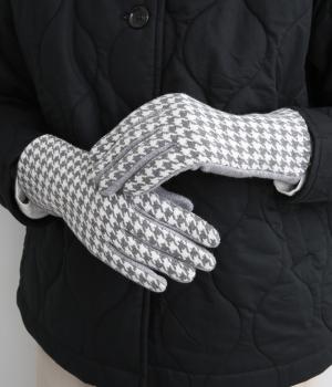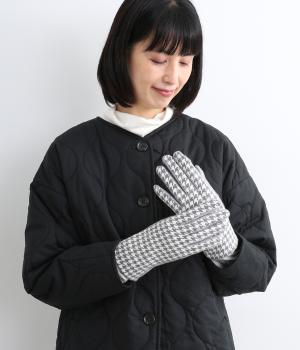 手の甲の部分はクラシカルなチェック柄で大人顔に。手のひら部分はレーヨン混素材&ストレッチ性で使い勝手の良さを高めました。肉厚すぎずスマートな手元を演出。