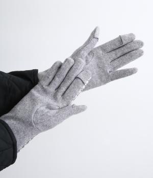 落ち着いたモノトーン配色にすっきりとしたフォルムで、大人の手先をスマートに見せてくれるグローブ。親指と人さし指は指先にホールがついているので、身につけたままスマートフォンなどの操作も◎。