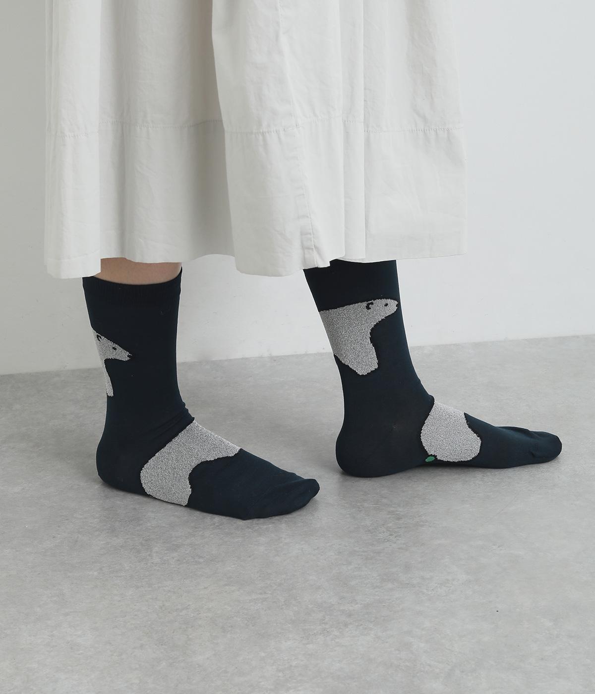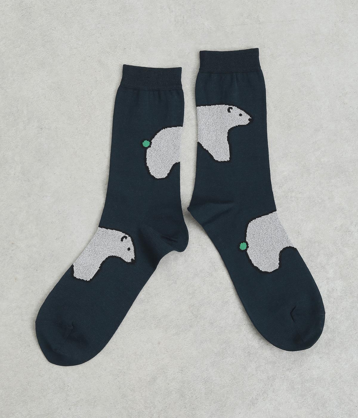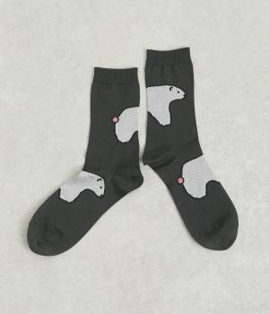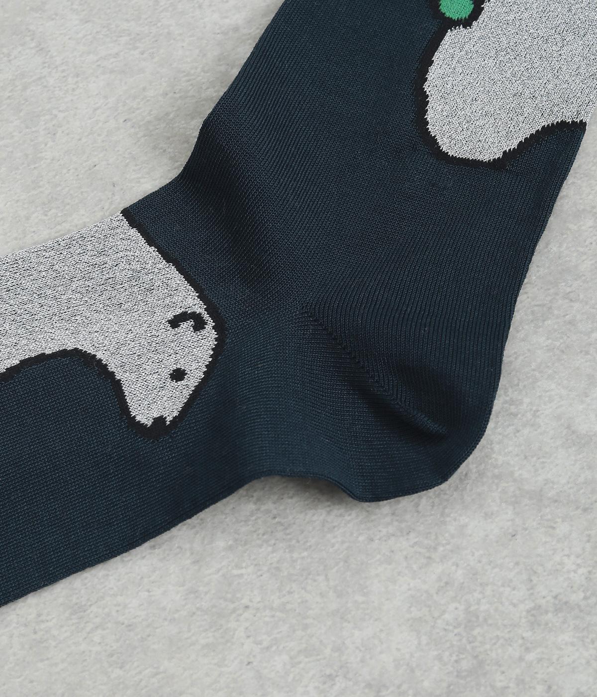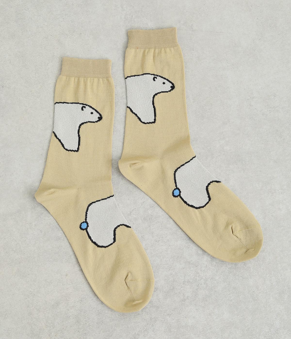 目に入るたびに癒されるような、ゆるく描かれたしろくまが愛らしいソックスです。ポップなしっぽのカラーリングにも注目を。薄手なのでサンダル合わせにもおすすめです。
