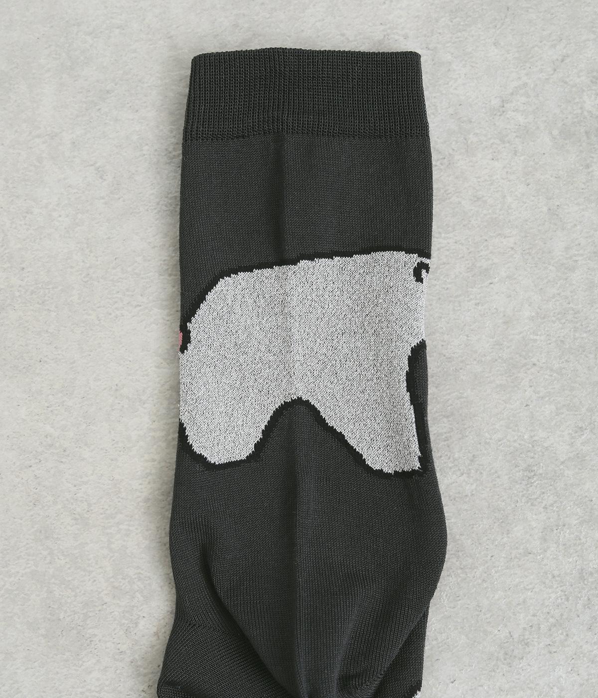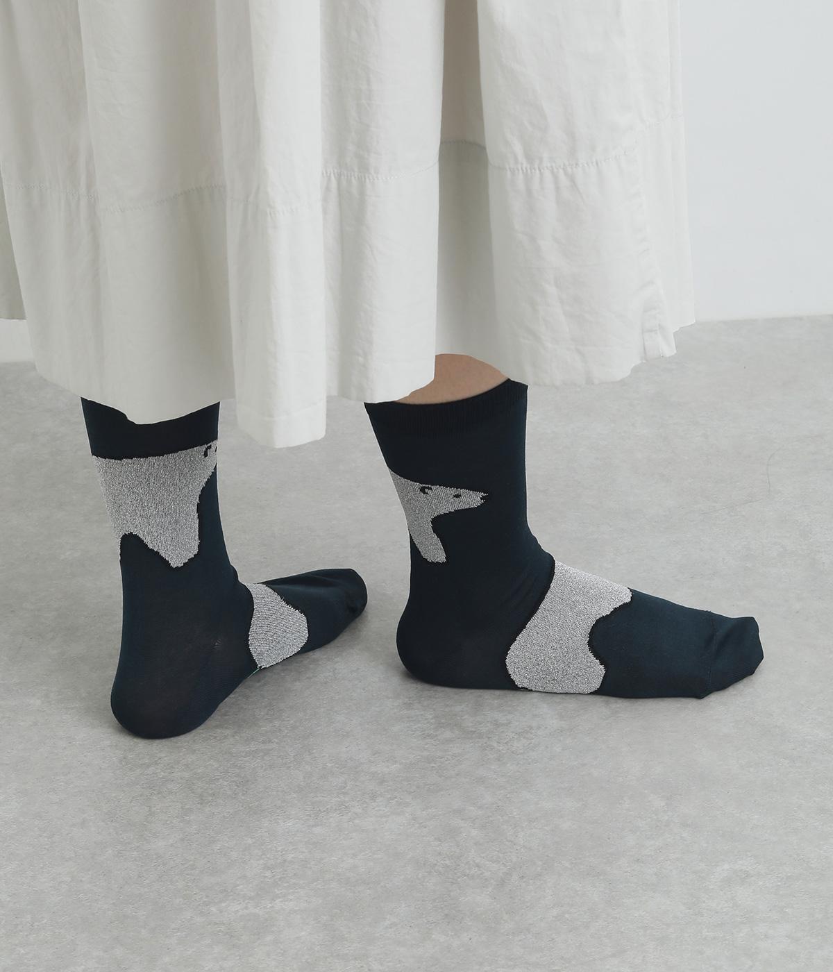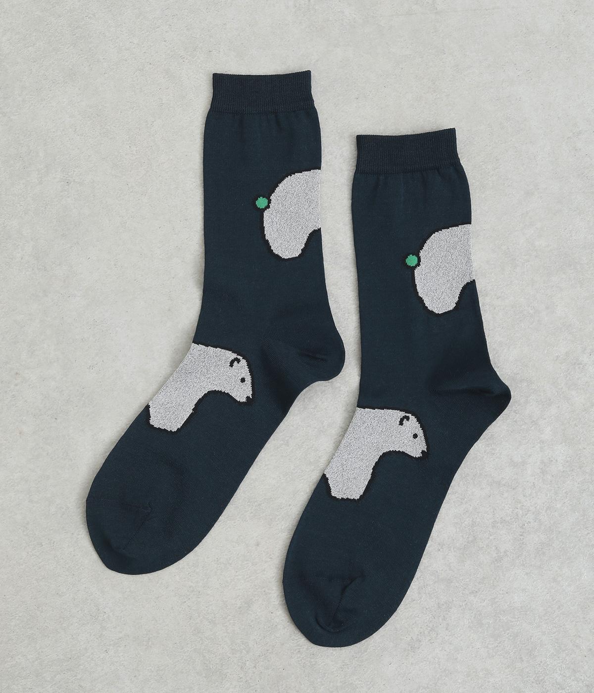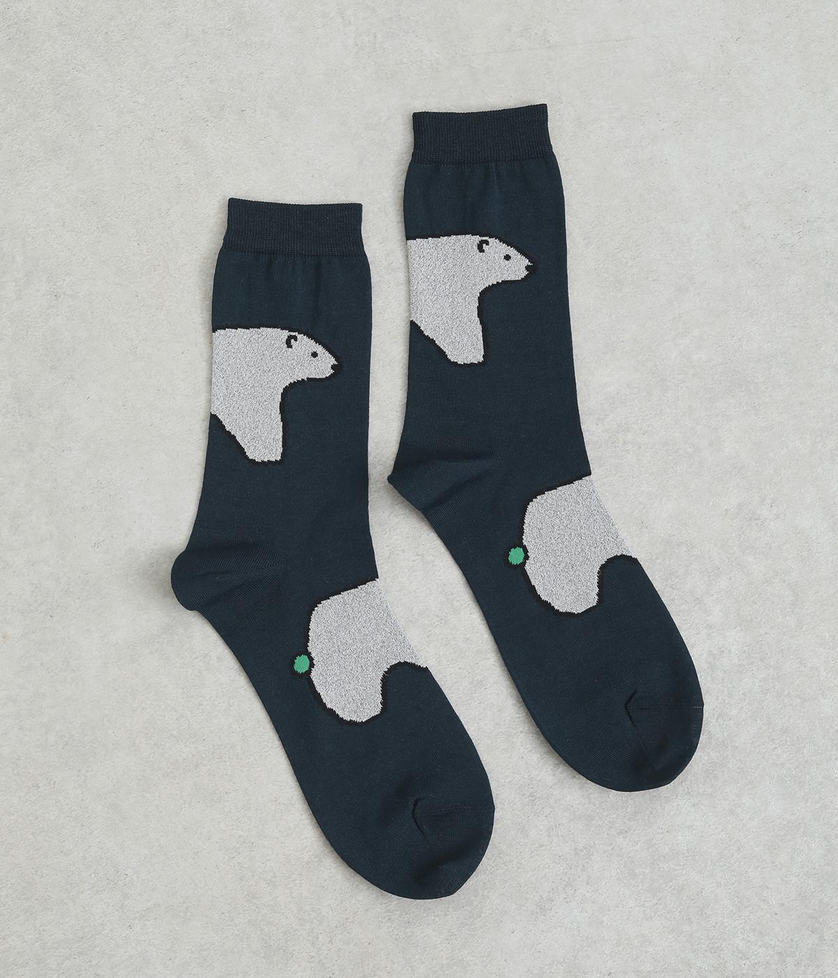 目に入るたびに癒されるような、ゆるく描かれたしろくまが愛らしいソックスです。ポップなしっぽのカラーリングにも注目を。薄手なのでサンダル合わせにもおすすめです。