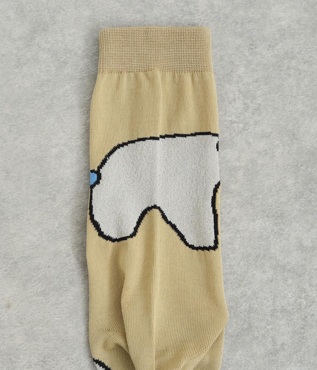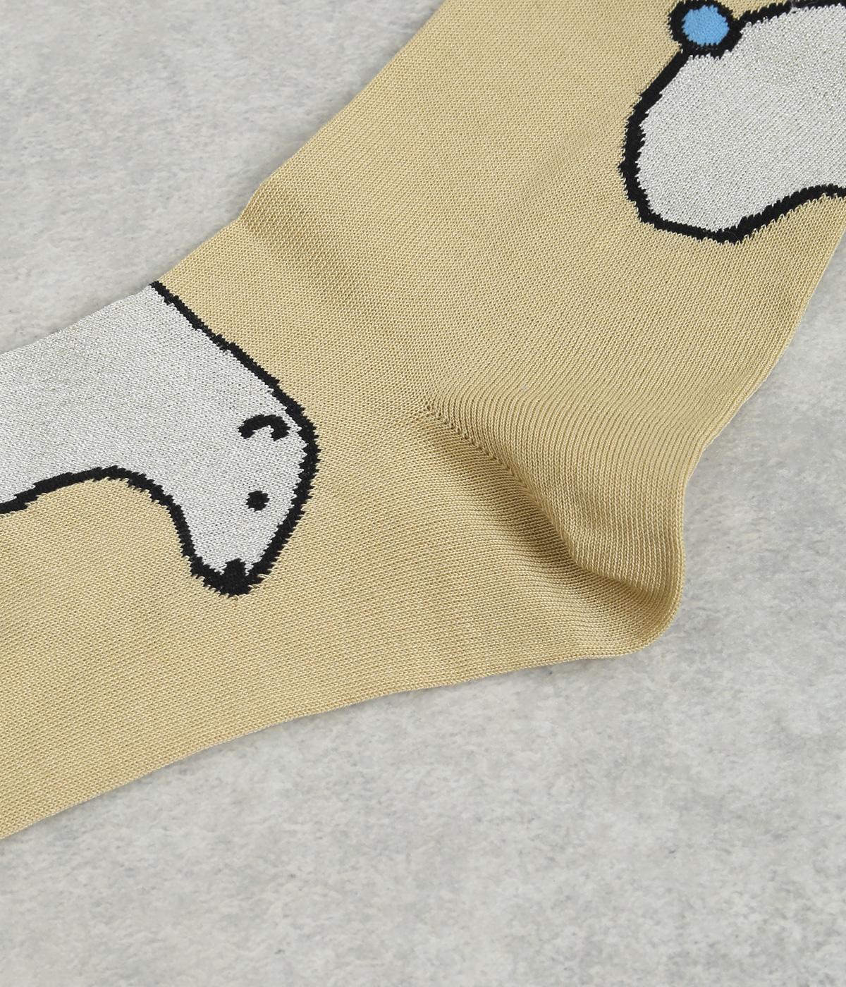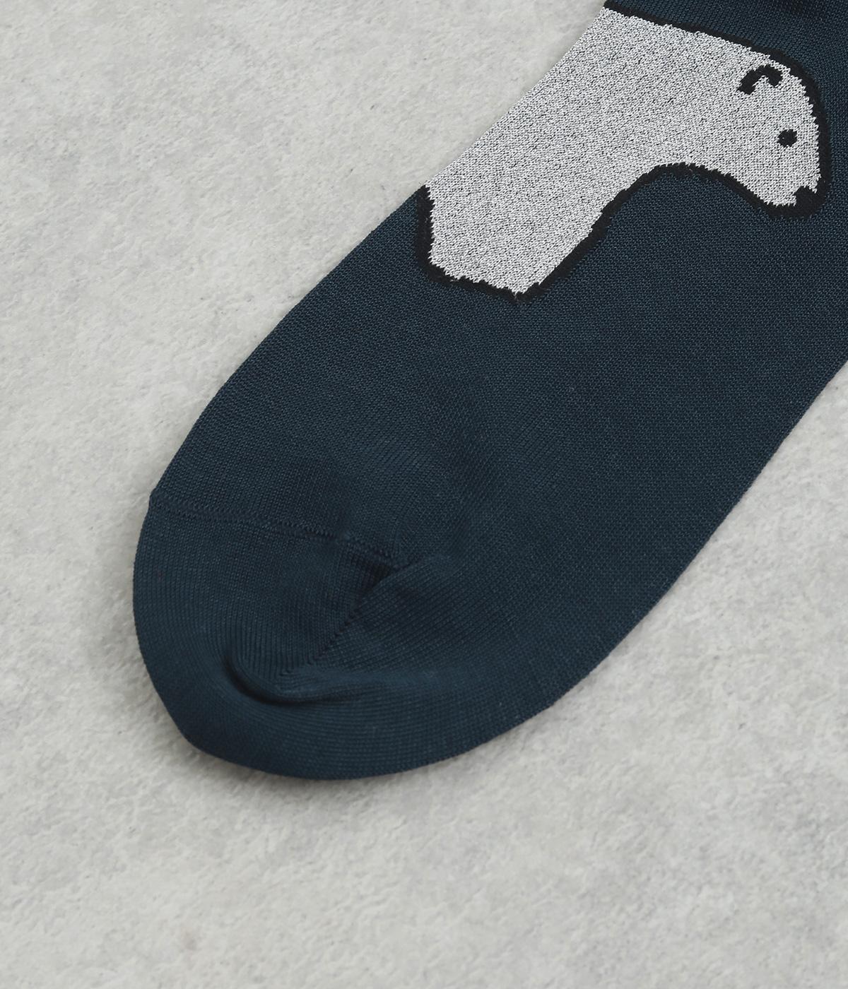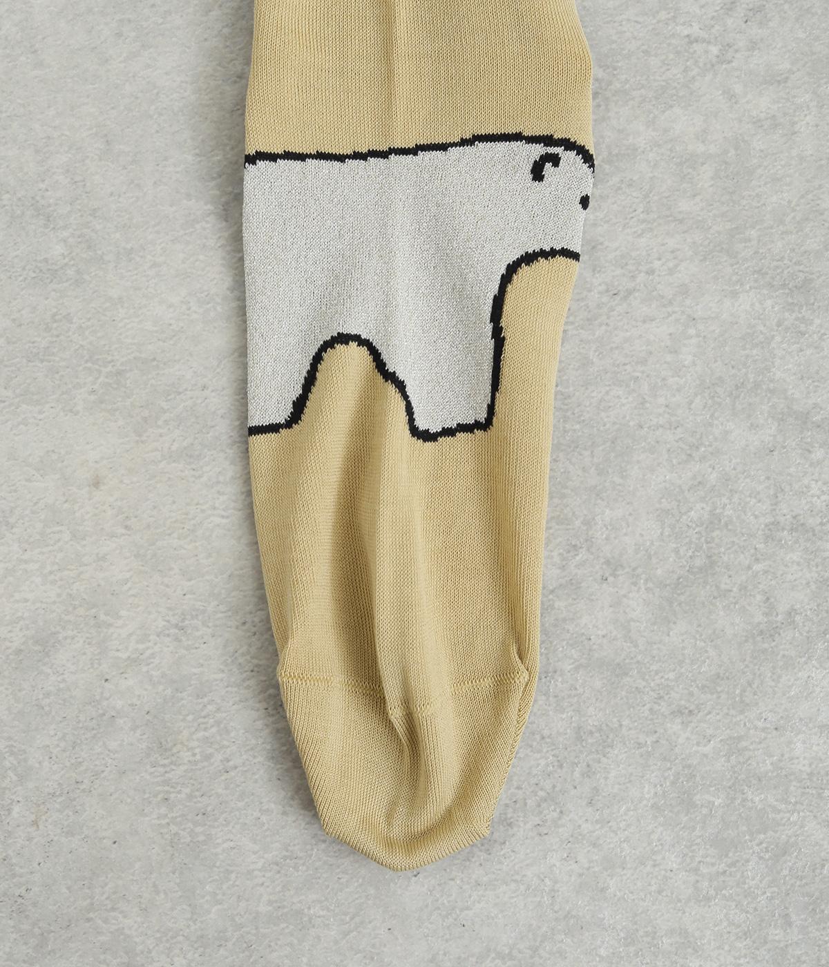 目に入るたびに癒されるような、ゆるく描かれたしろくまが愛らしいソックスです。ポップなしっぽのカラーリングにも注目を。薄手なのでサンダル合わせにもおすすめです。