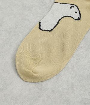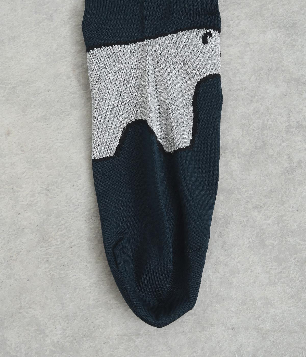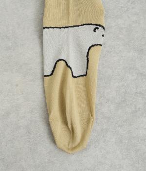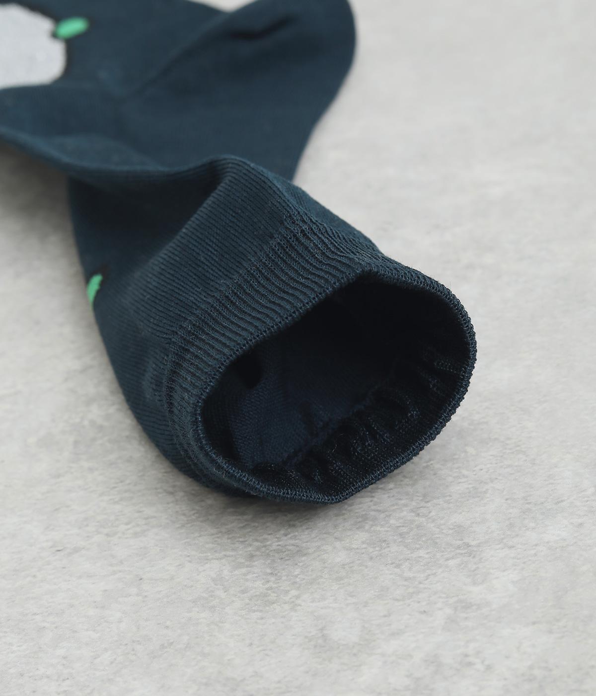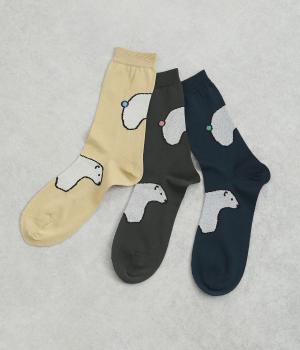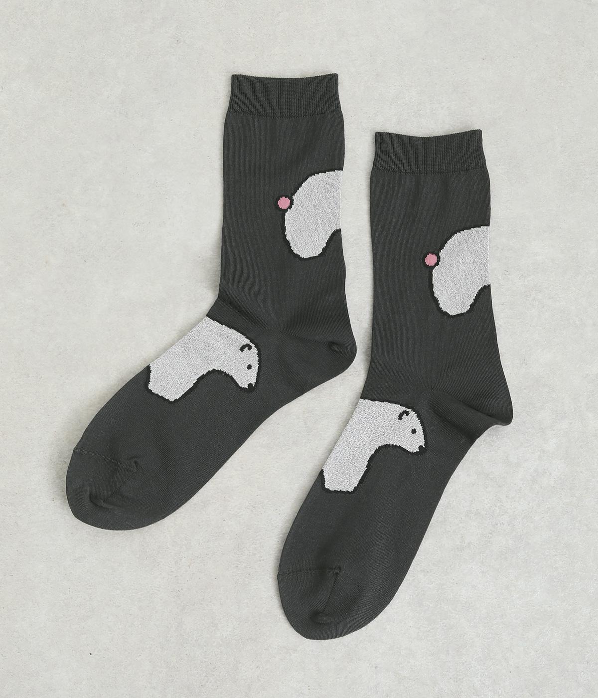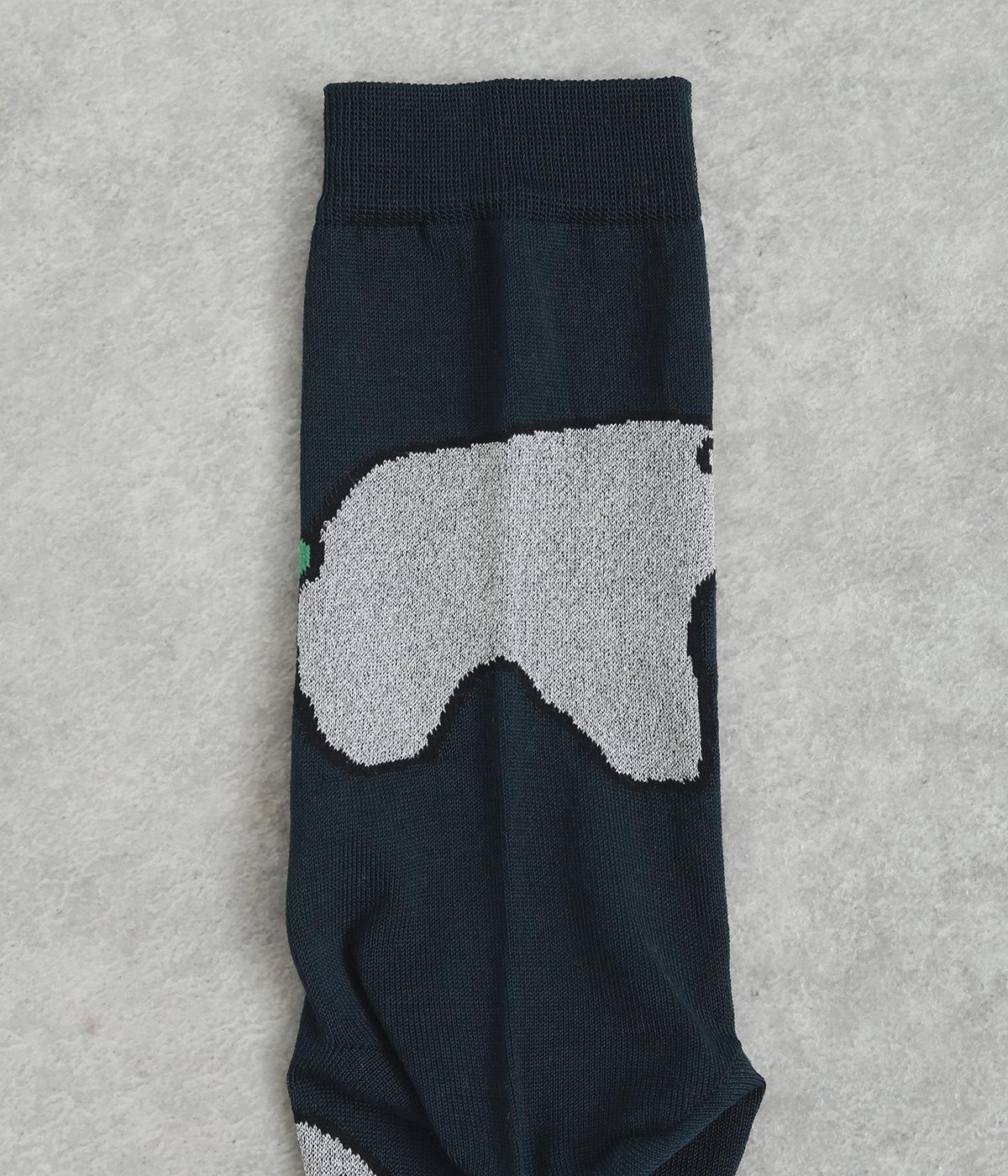 目に入るたびに癒されるような、ゆるく描かれたしろくまが愛らしいソックスです。ポップなしっぽのカラーリングにも注目を。薄手なのでサンダル合わせにもおすすめです。
