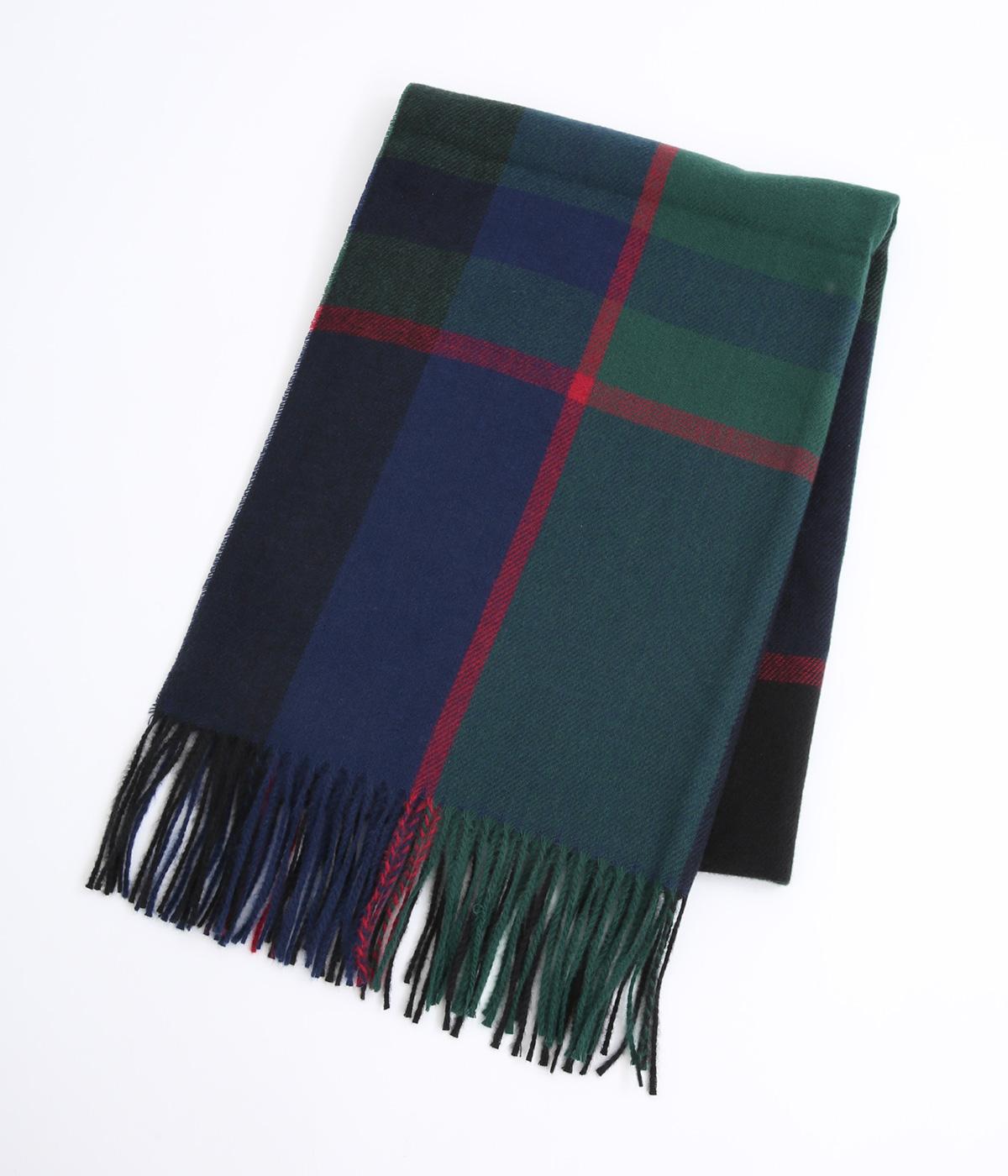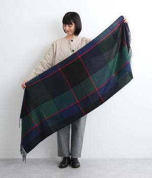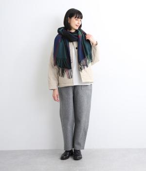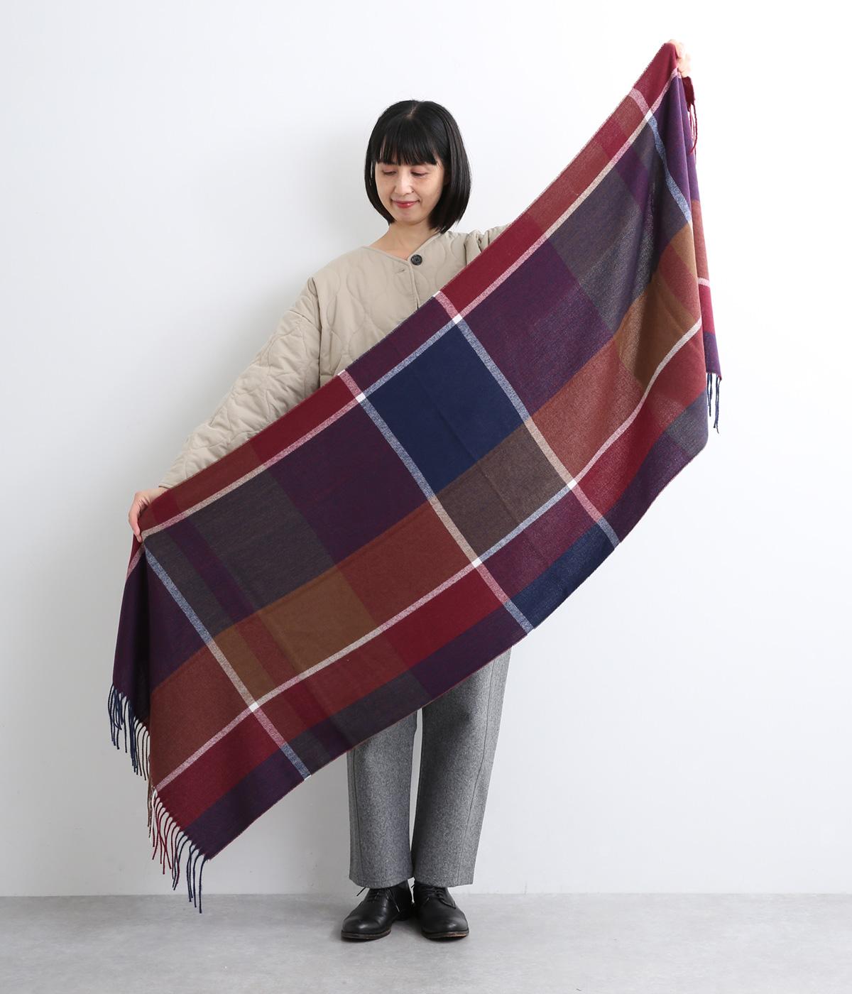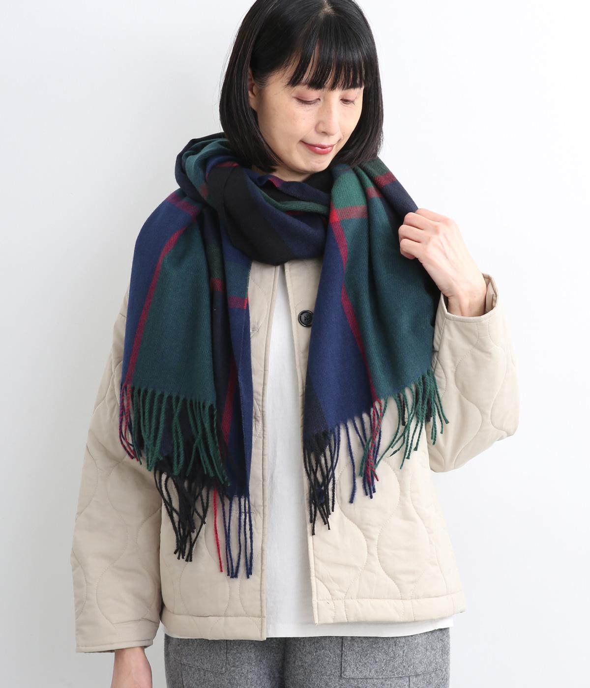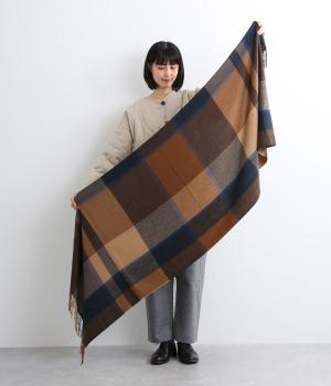 ビターな配色が大人スタイルにしっくりなじむ、チェック柄ストール。大判の長方形タイプに両端のフリンジがきいたデザインで、首に巻くとほどよいボリューム感が出ます。肩やひざに掛けたり、冷え対策にも重宝する一枚。