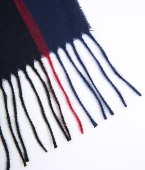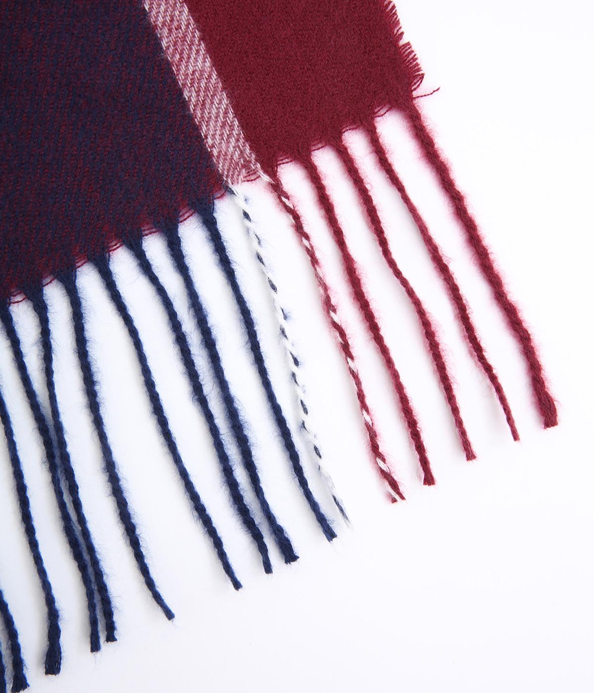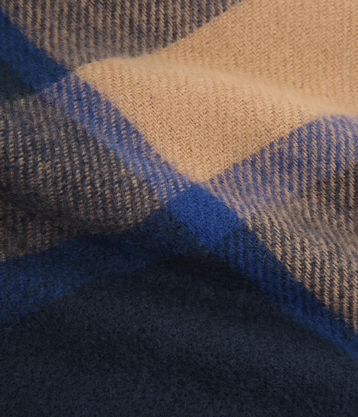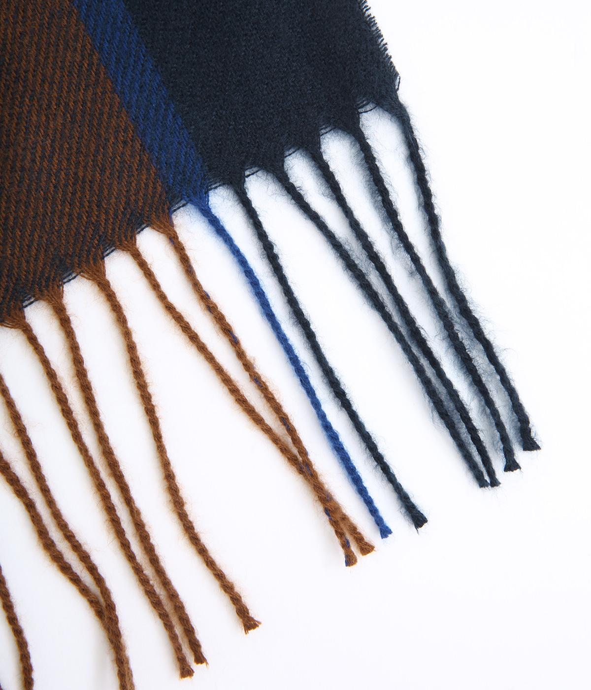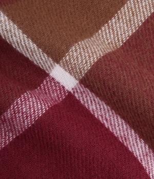 ビターな配色が大人スタイルにしっくりなじむ、チェック柄ストール。大判の長方形タイプに両端のフリンジがきいたデザインで、首に巻くとほどよいボリューム感が出ます。肩やひざに掛けたり、冷え対策にも重宝する一枚。