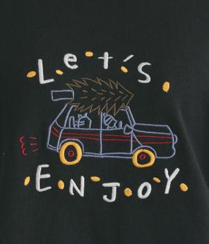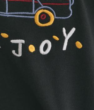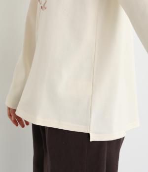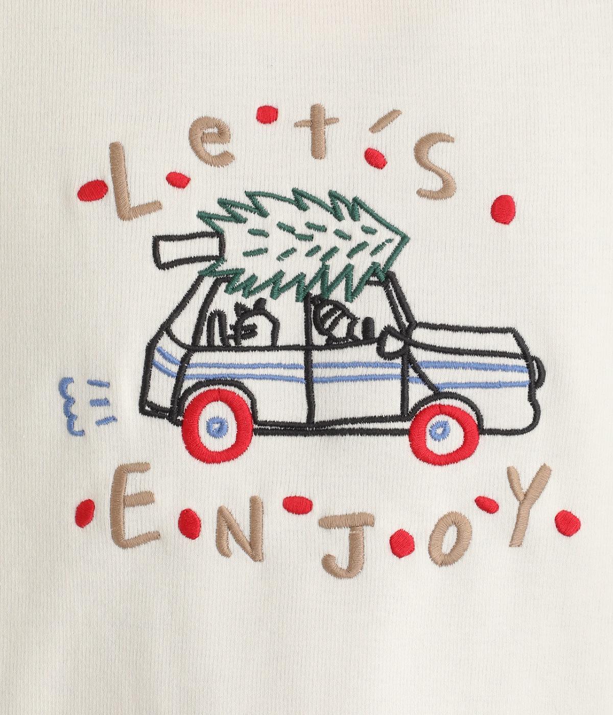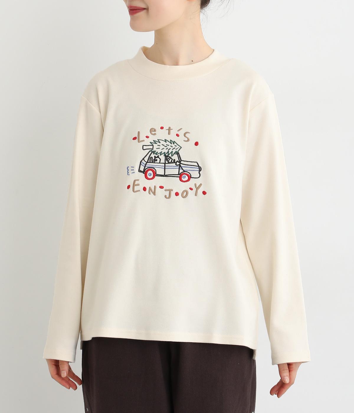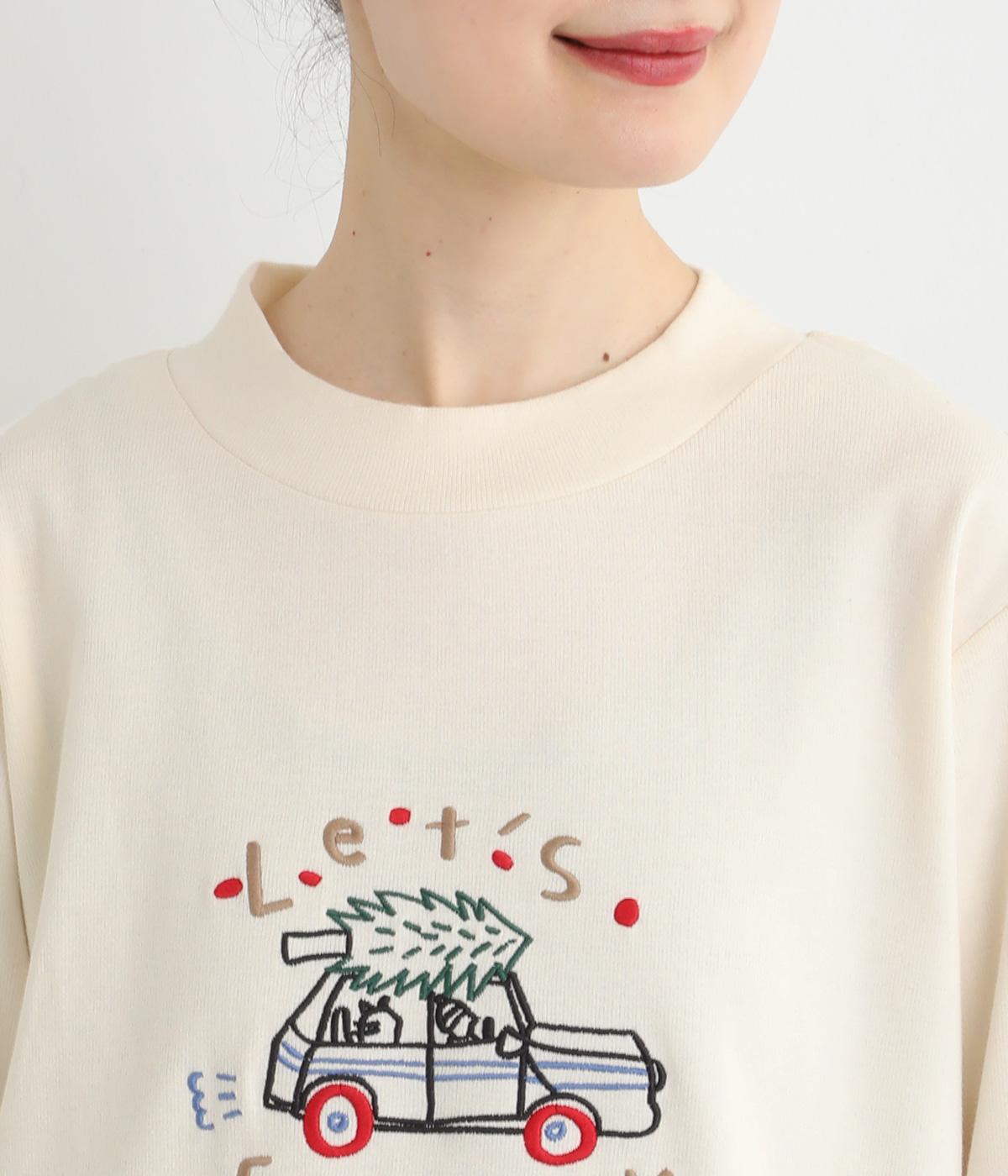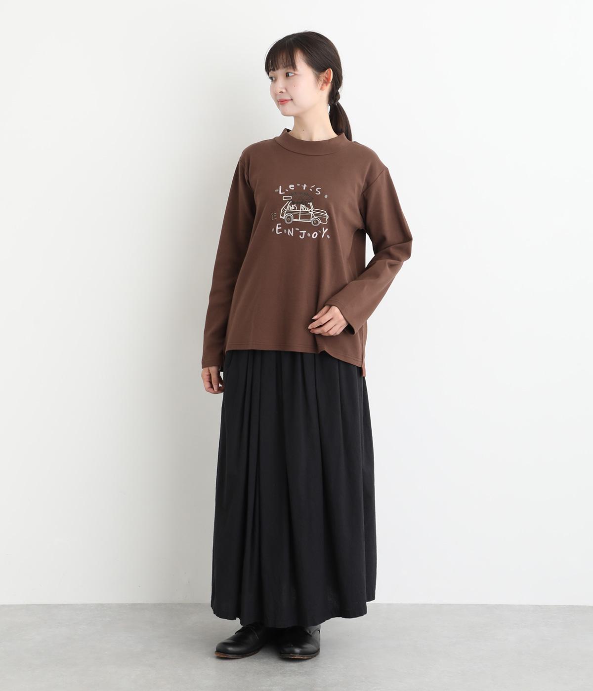レトロ感があるポップな刺しゅうが目をひくデザインです。シンプルなシルエットながら個性のある一枚に仕上がりました。前後差をつけた裾がぬけ感を出し、コーディネートに遊び心をプラスします。