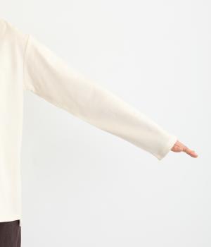 吸水性や保湿性に優れてお手入れも簡単なコットン生地を使用しました。肌ざわりもよく、デイリーに取り入れやすい素材感で、スタイリングになじみます。