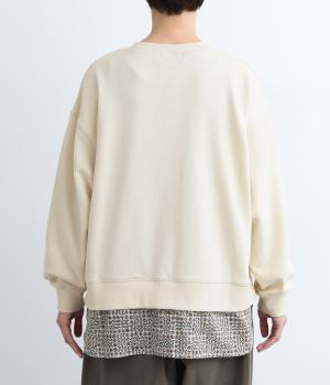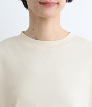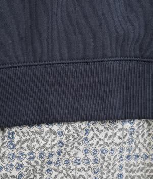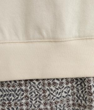 季節の変わり目にも着こなしやすい、さらりと肌触りが良くやわらかなコットンの裏毛生地を使用。裾には薄手のリバティプリント生地をあてて変化をつけています。