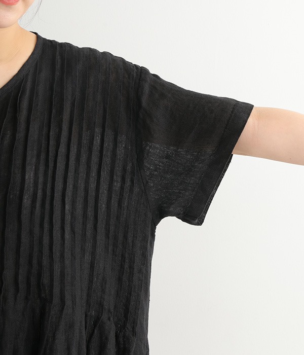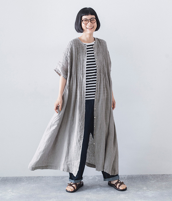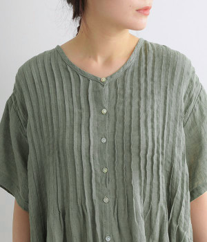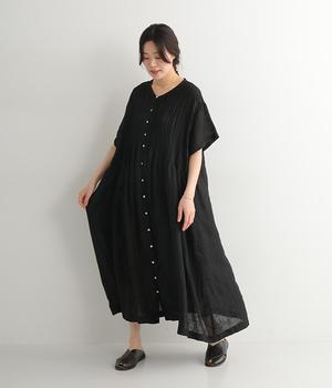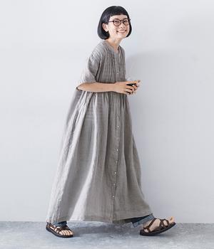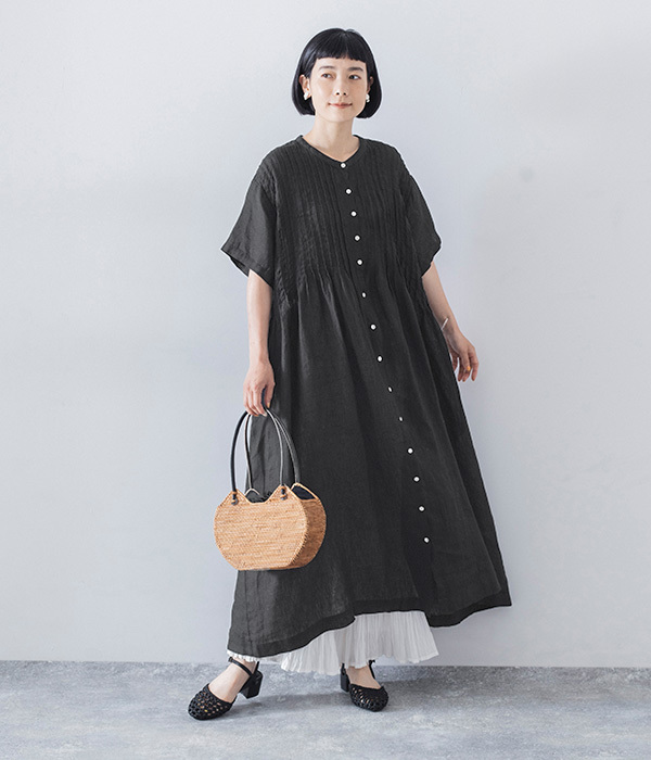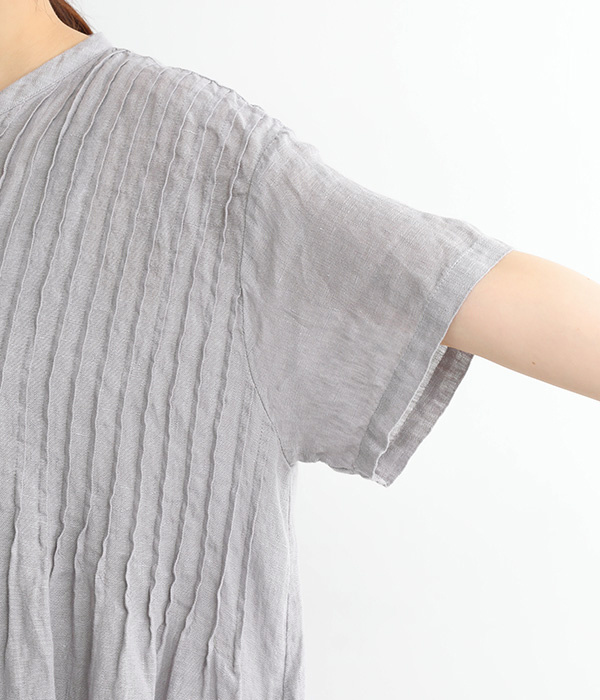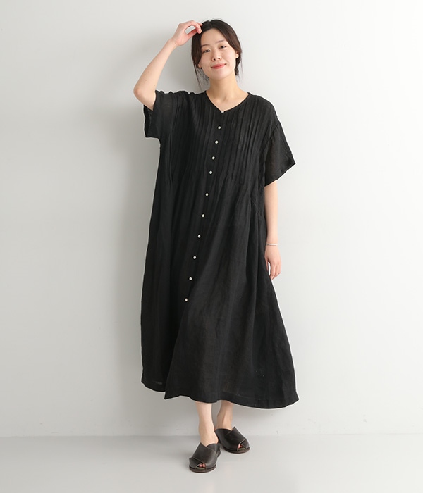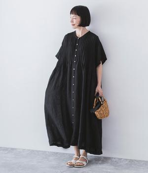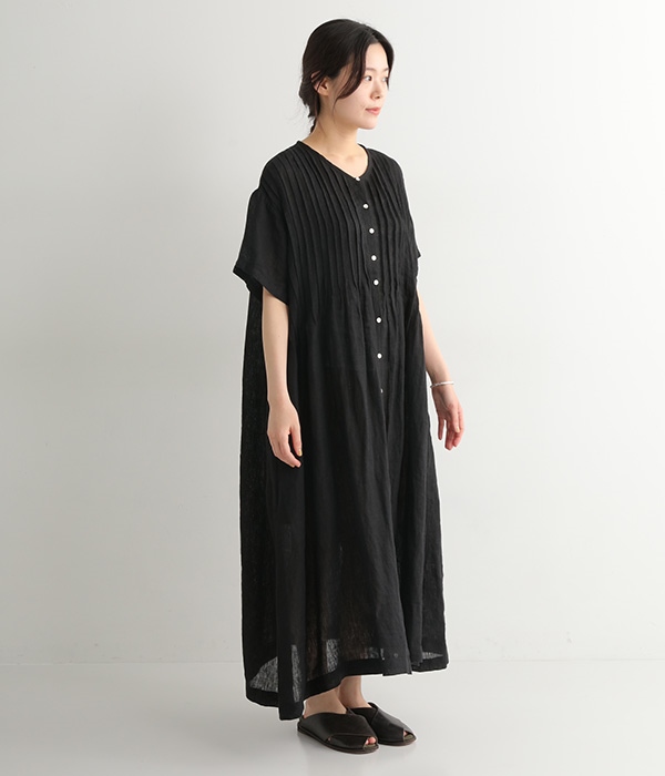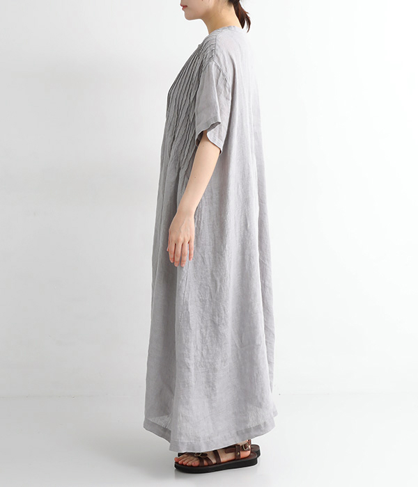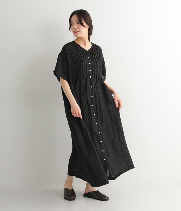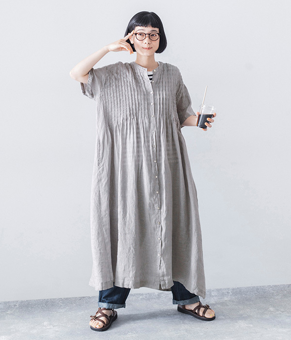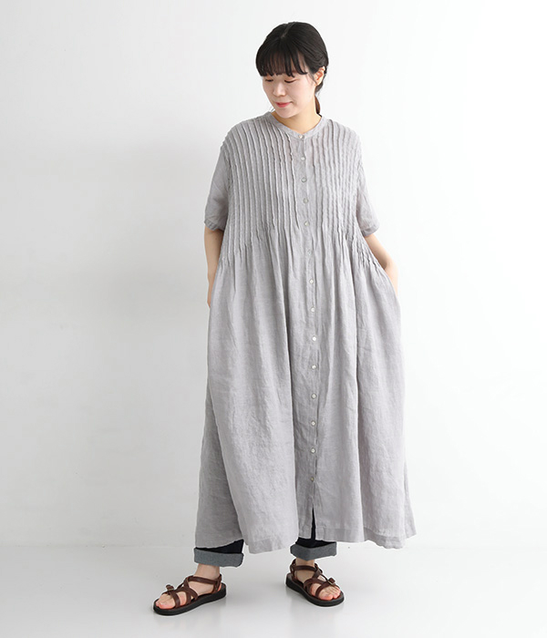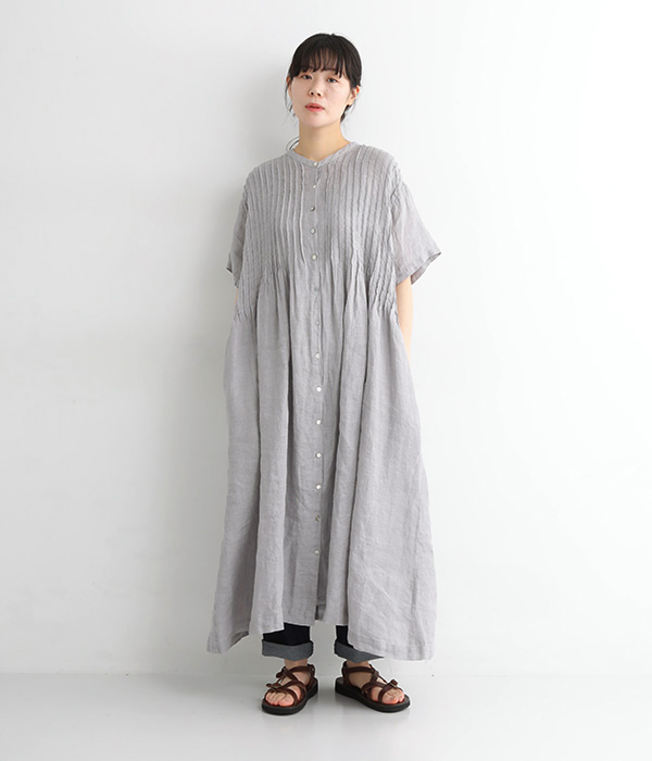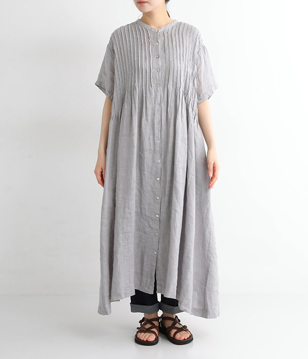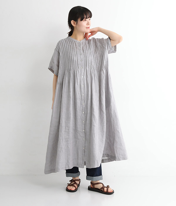 リネンシャンブレー 前ピンタックワンピース