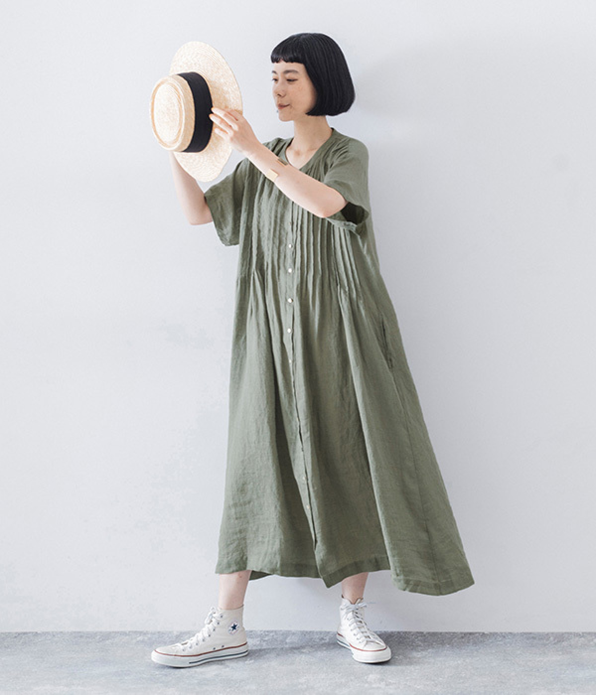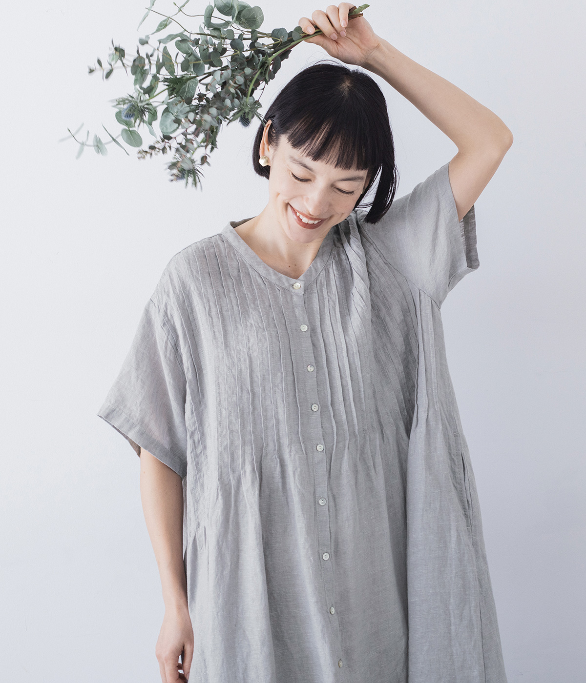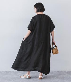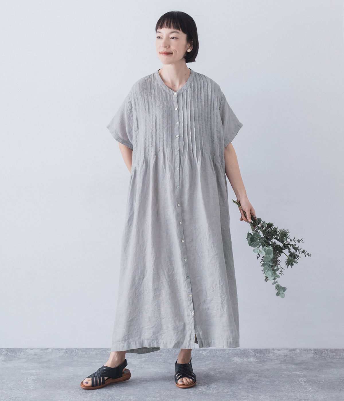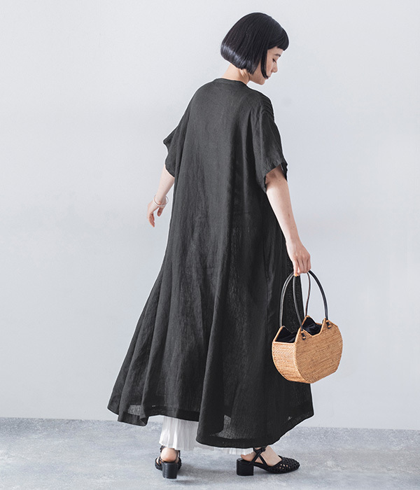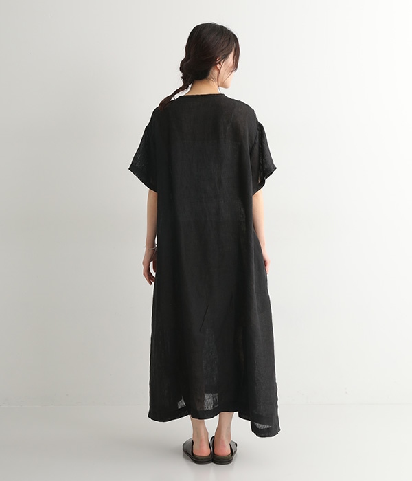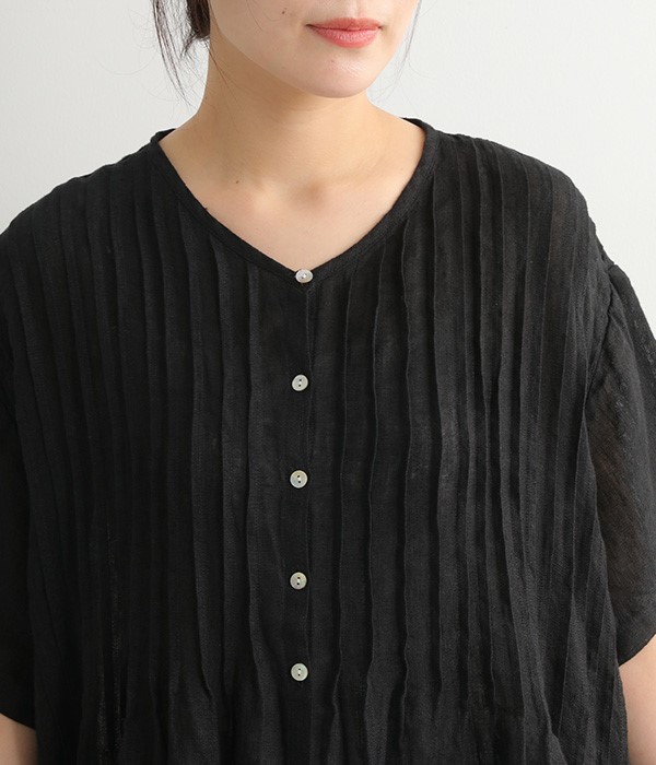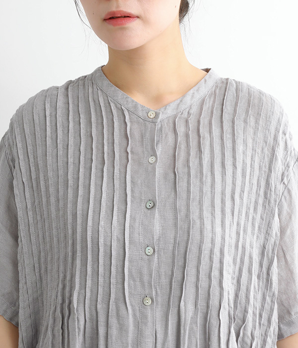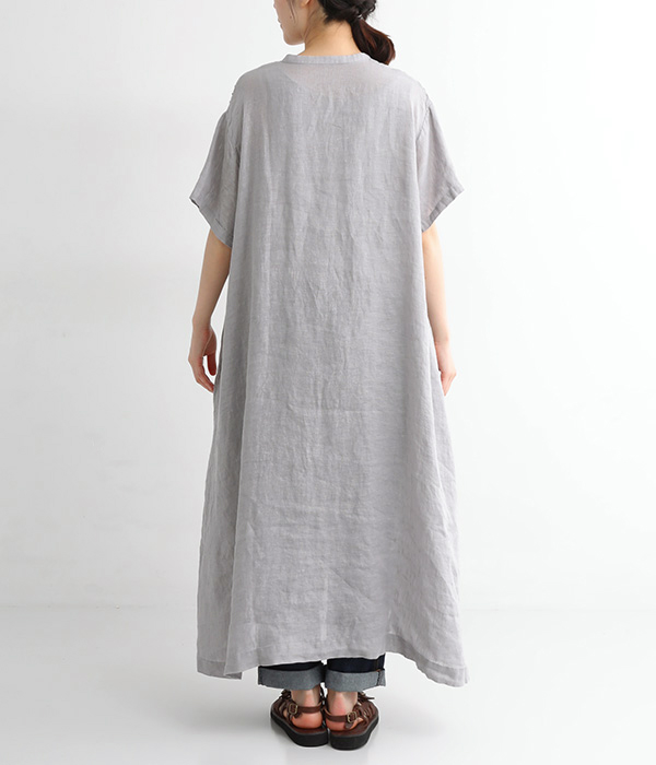 リネンシャンブレー 前ピンタックワンピース