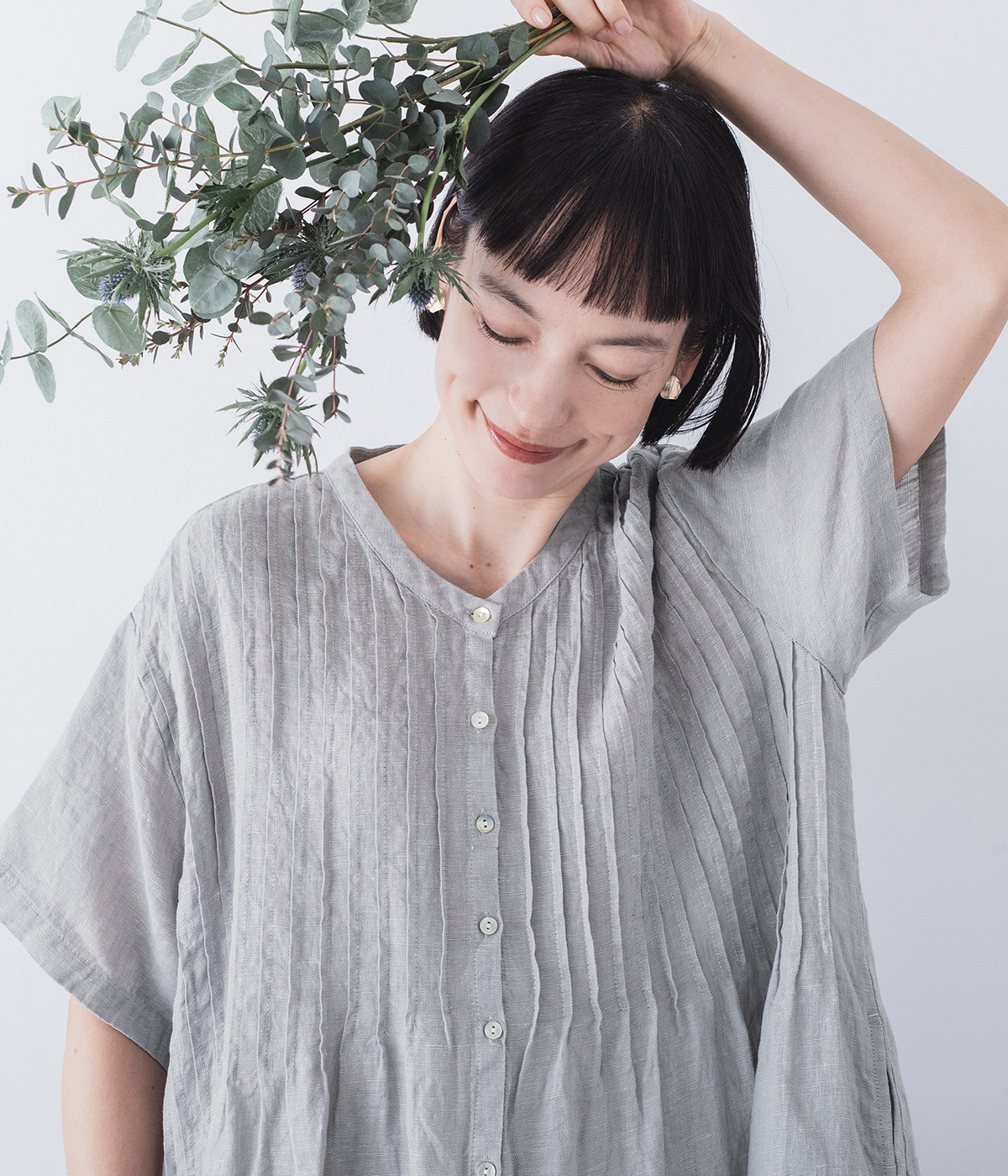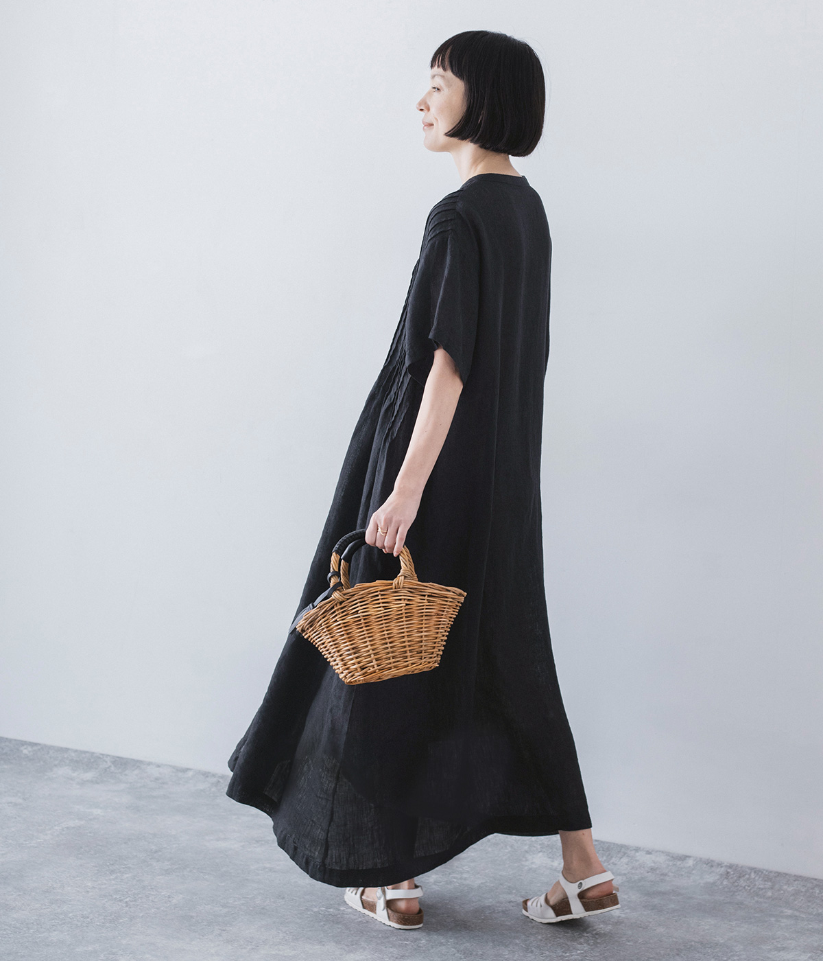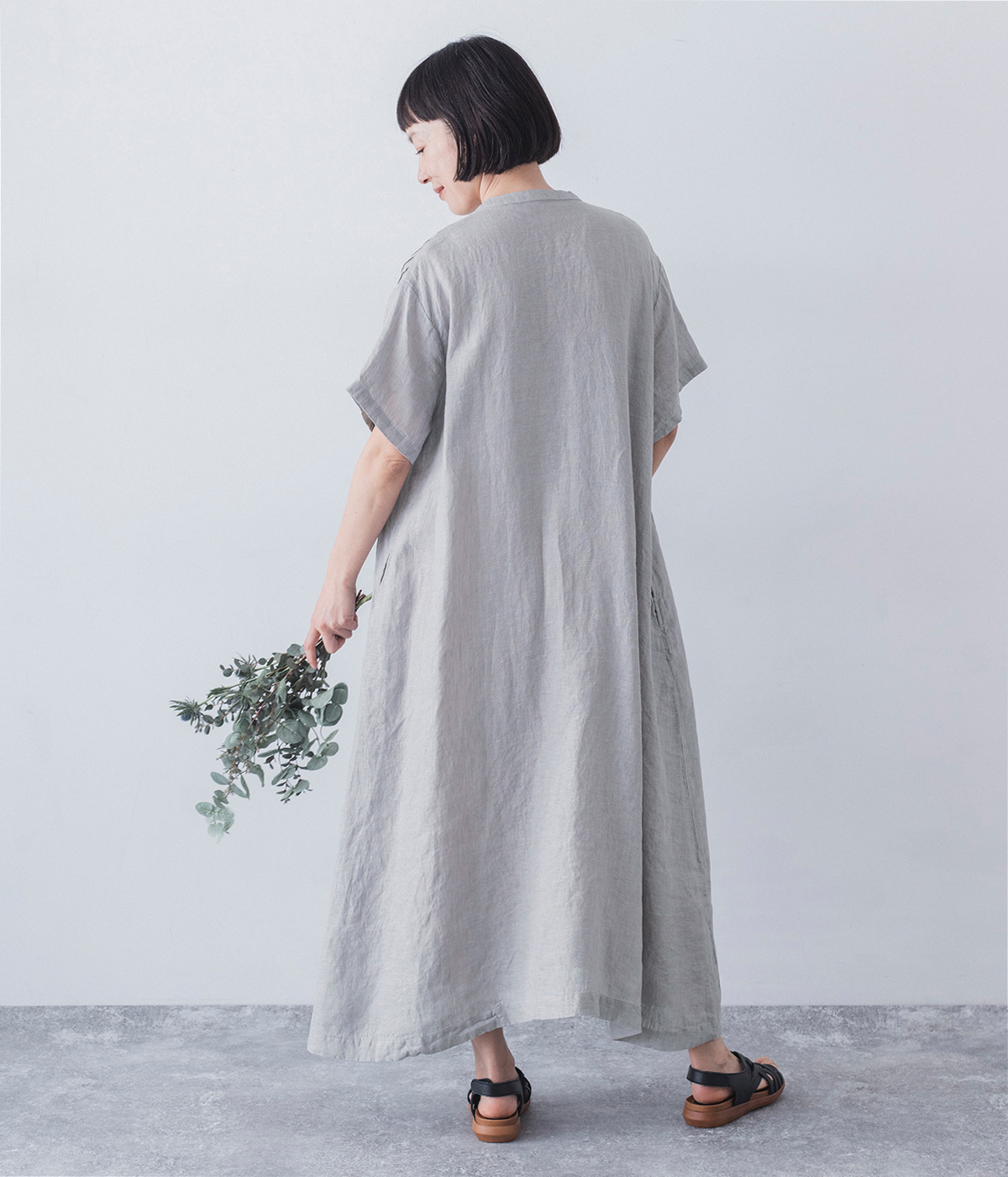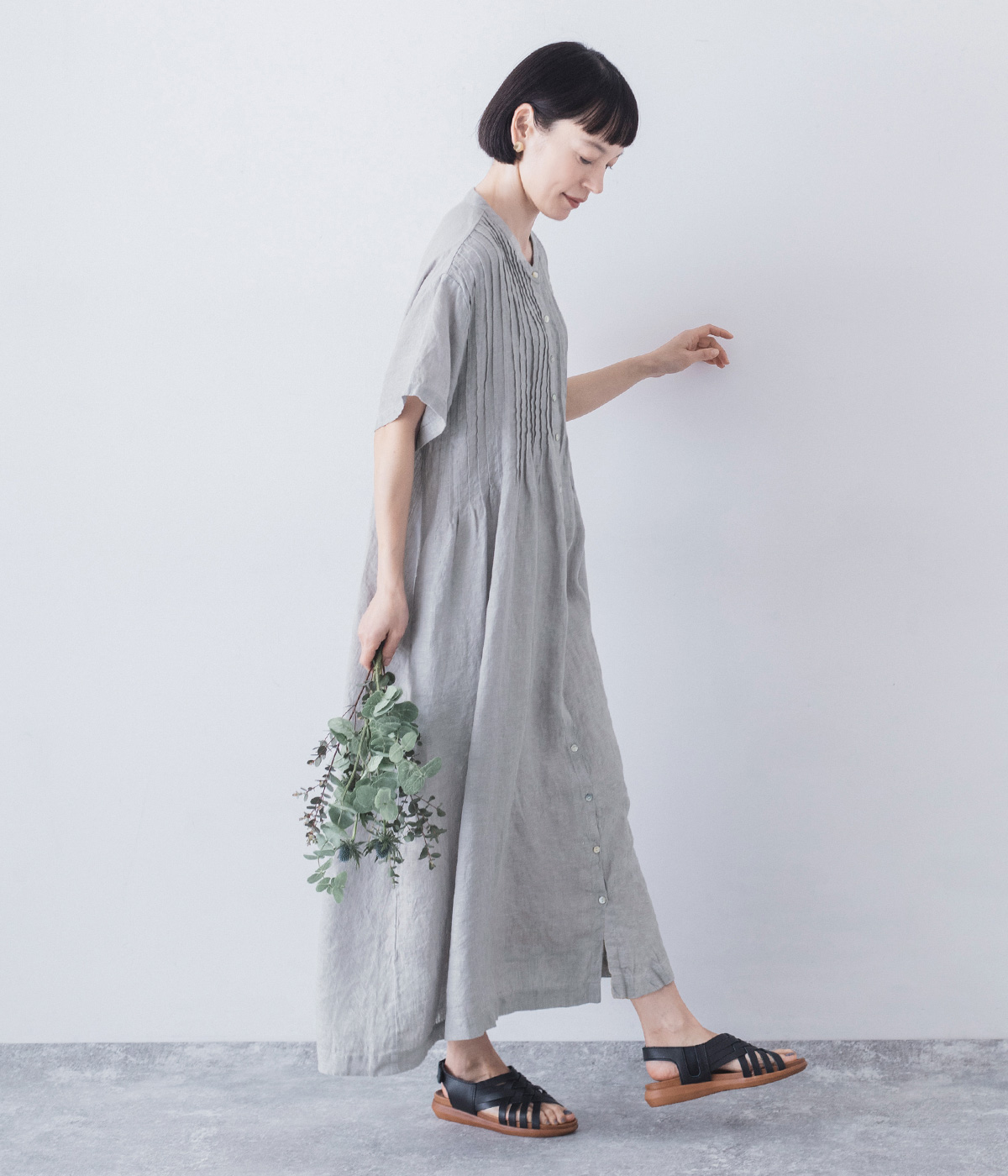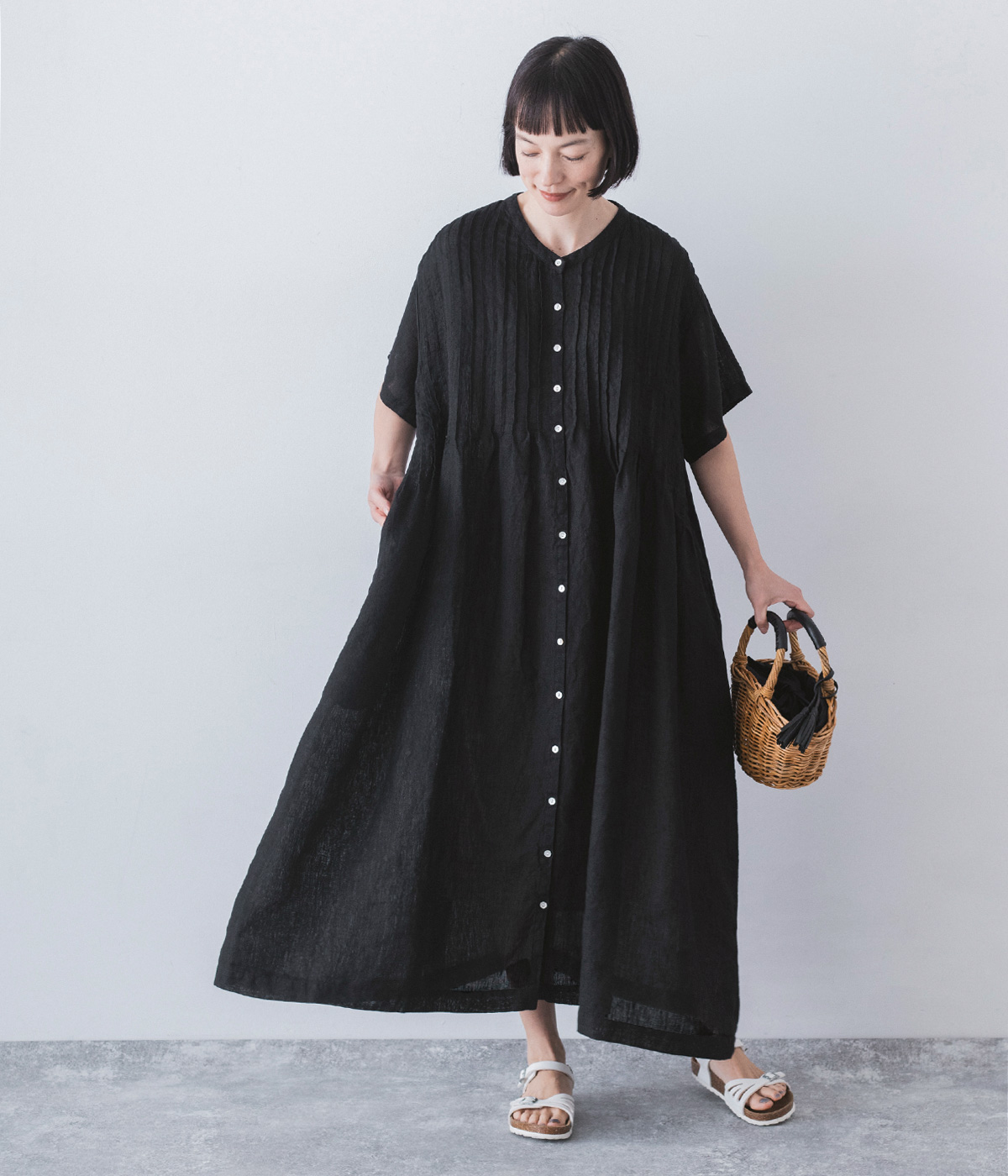 リネンシャンブレー 前ピンタックワンピース