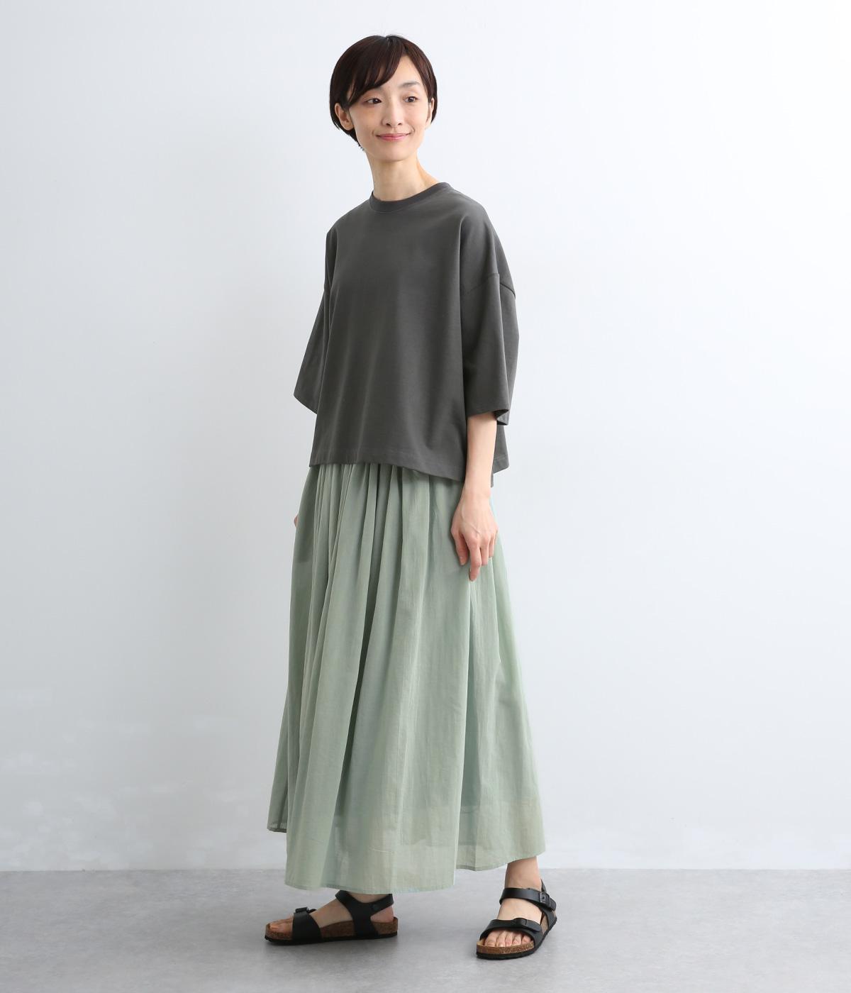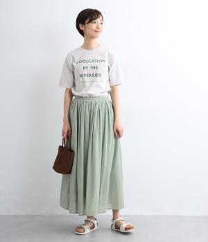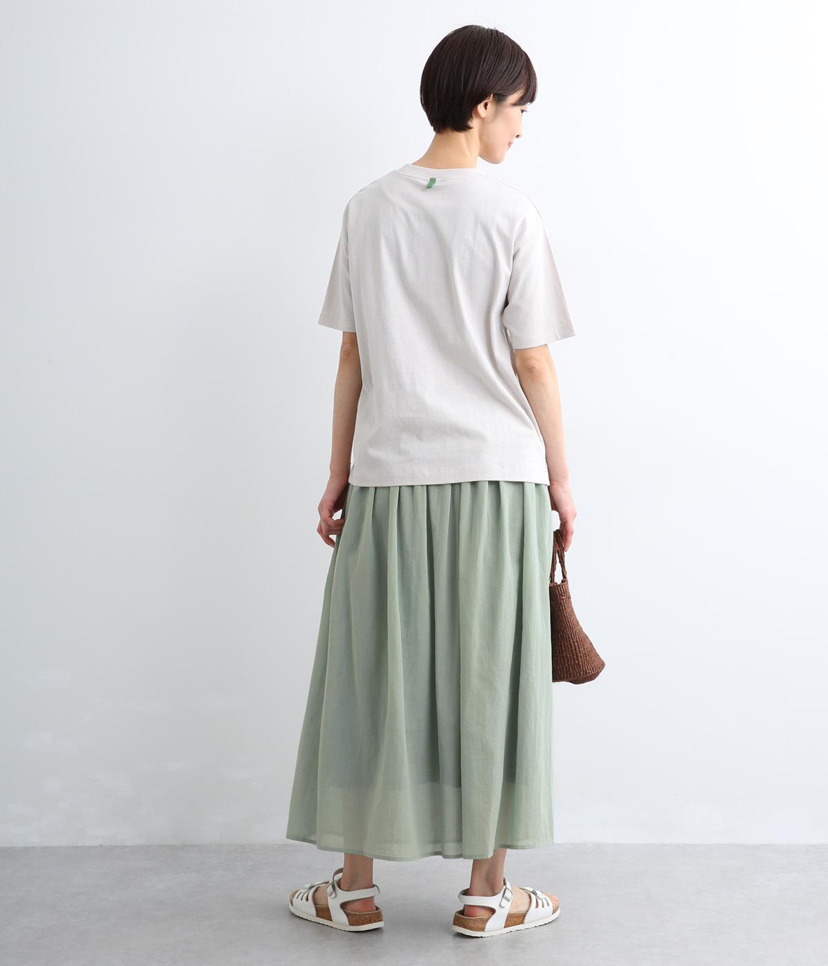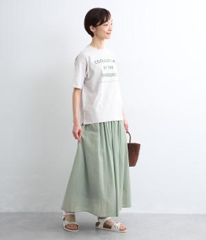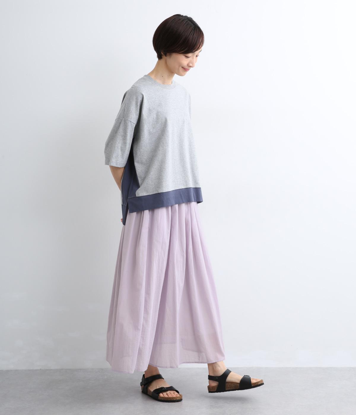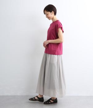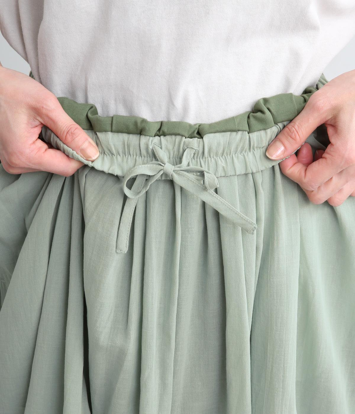 透け感のあるガーゼ素材と、ほどよい厚みの天竺素材を重ねた、二層仕立てのスカートです。異素材のコントラストで奥行きのある表情に。ほどよいボリュームのAラインシルエットが動くたびにゆれ、女性らしさを引き立てます。シンプルなトップスと合わせるだけで、華やかなコーディネートに仕上がる一枚です。