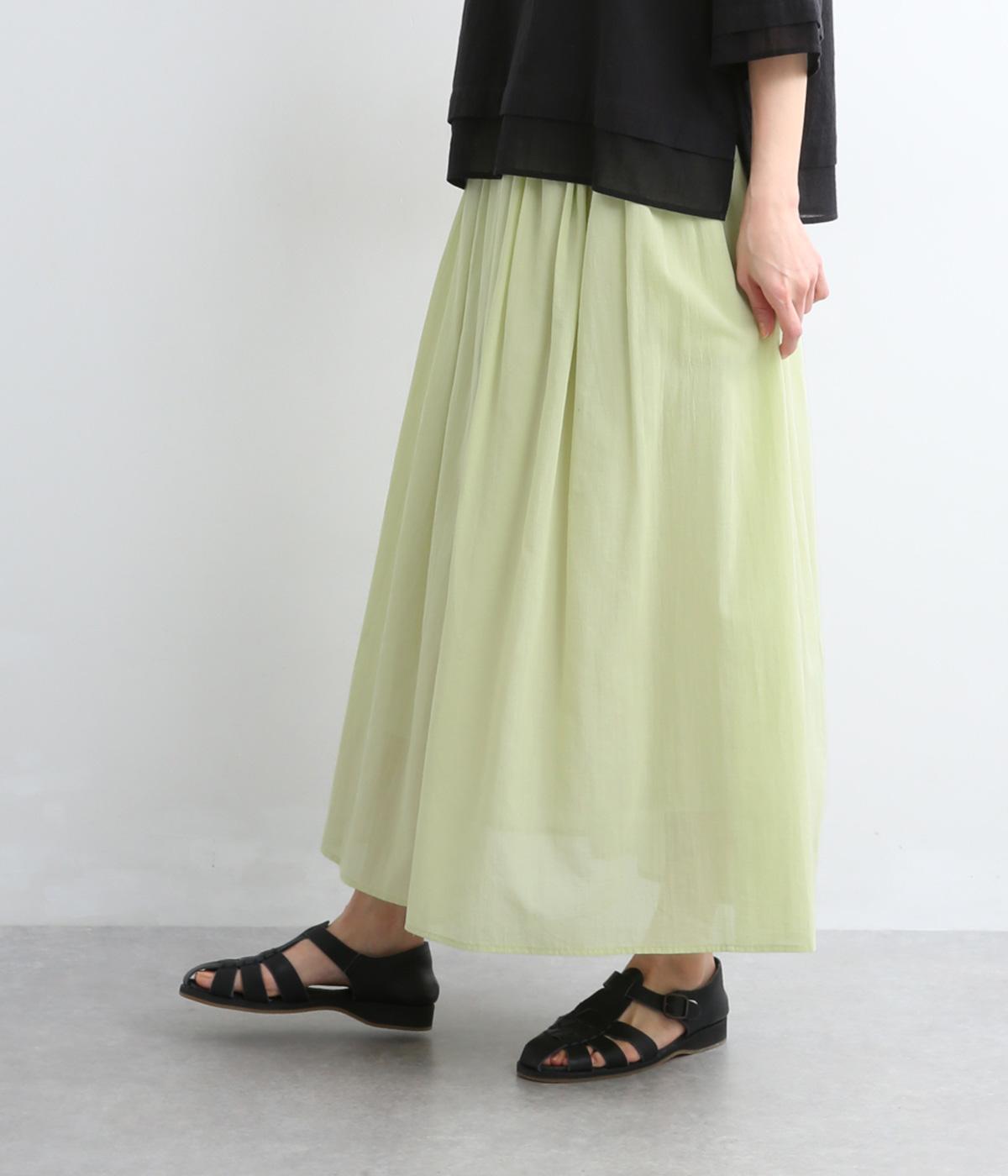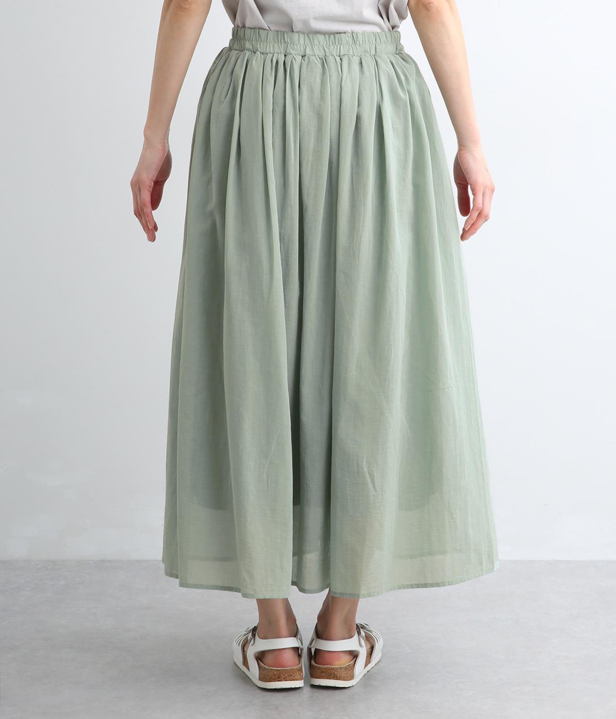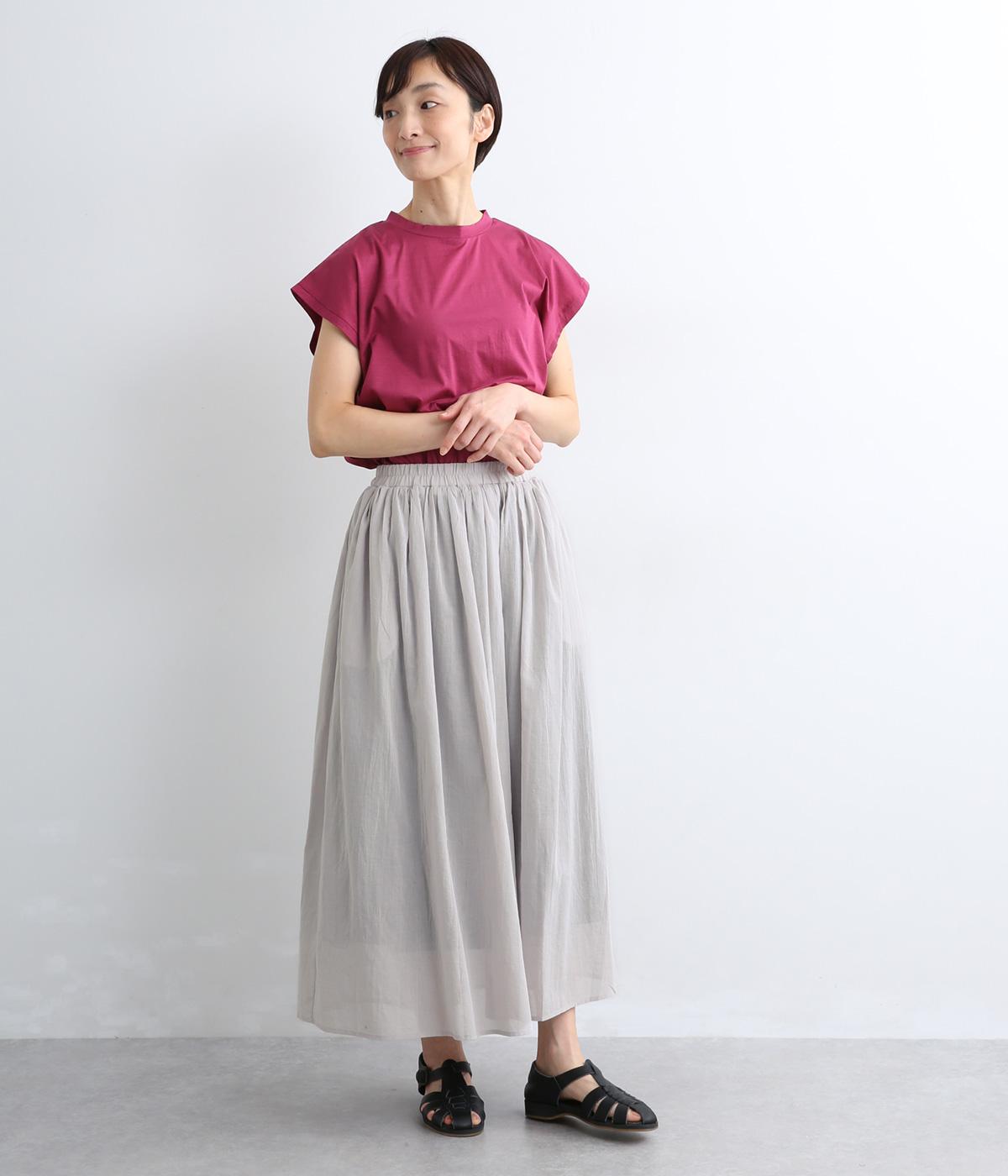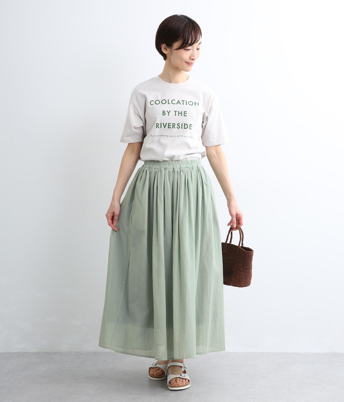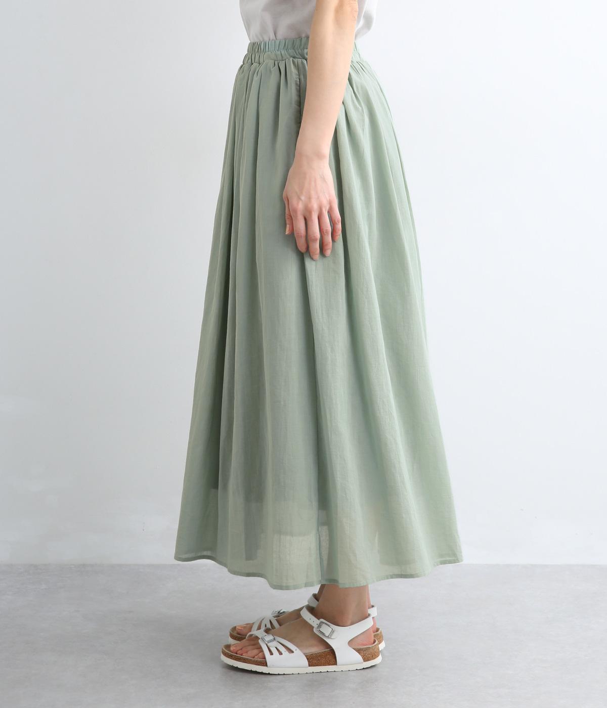 透け感のあるガーゼ素材と、ほどよい厚みの天竺素材を重ねた、二層仕立てのスカートです。異素材のコントラストで奥行きのある表情に。ほどよいボリュームのAラインシルエットが動くたびにゆれ、女性らしさを引き立てます。シンプルなトップスと合わせるだけで、華やかなコーディネートに仕上がる一枚です。