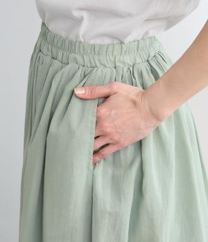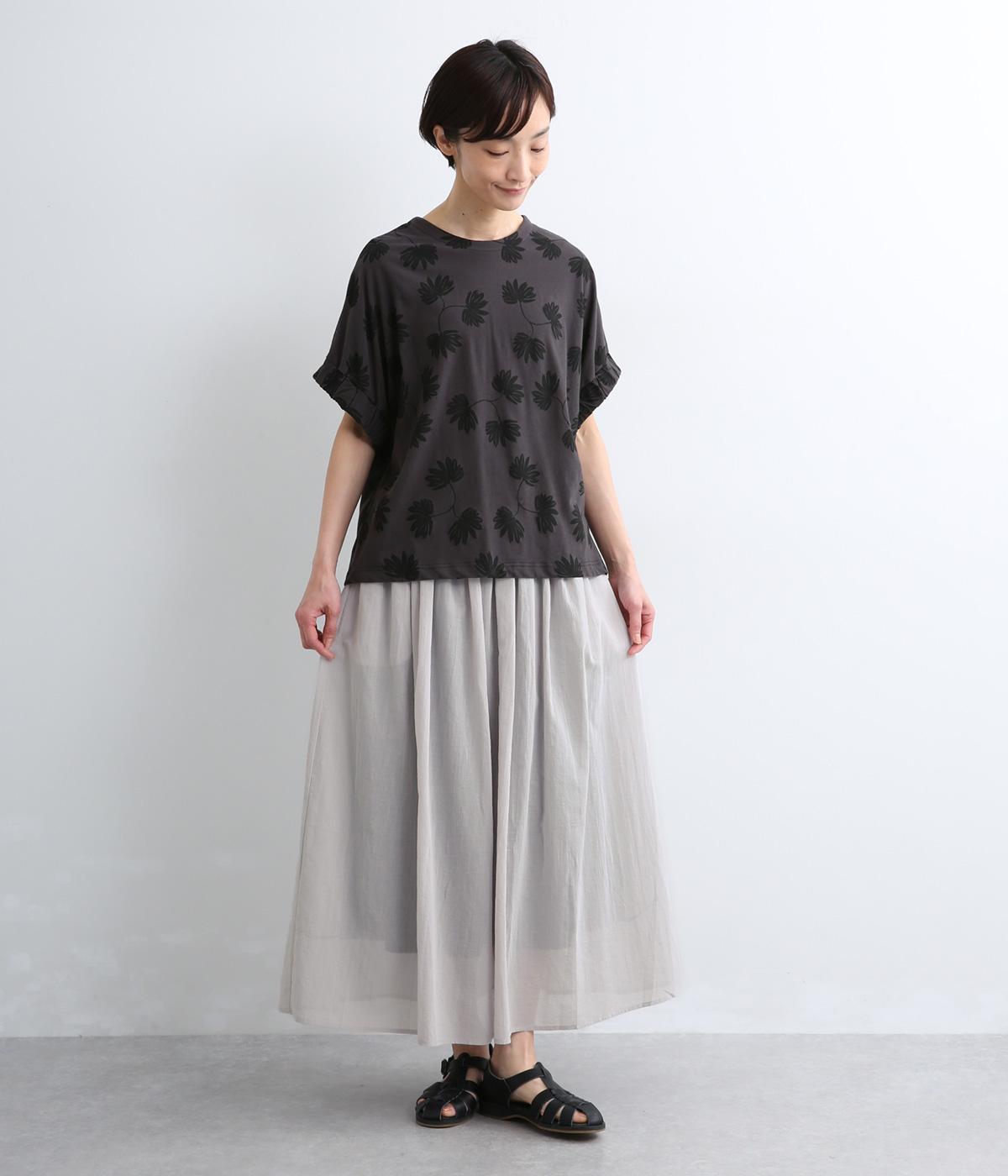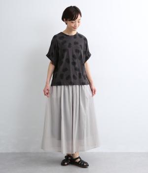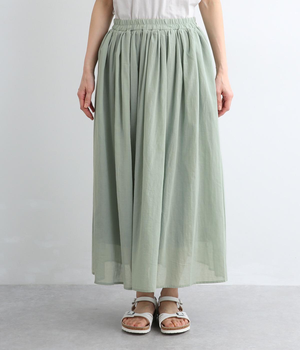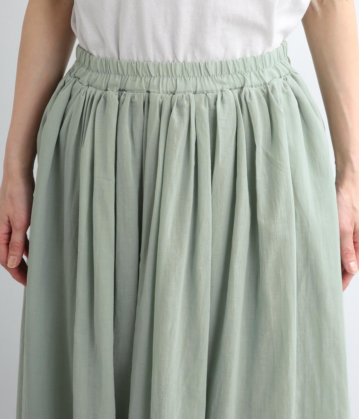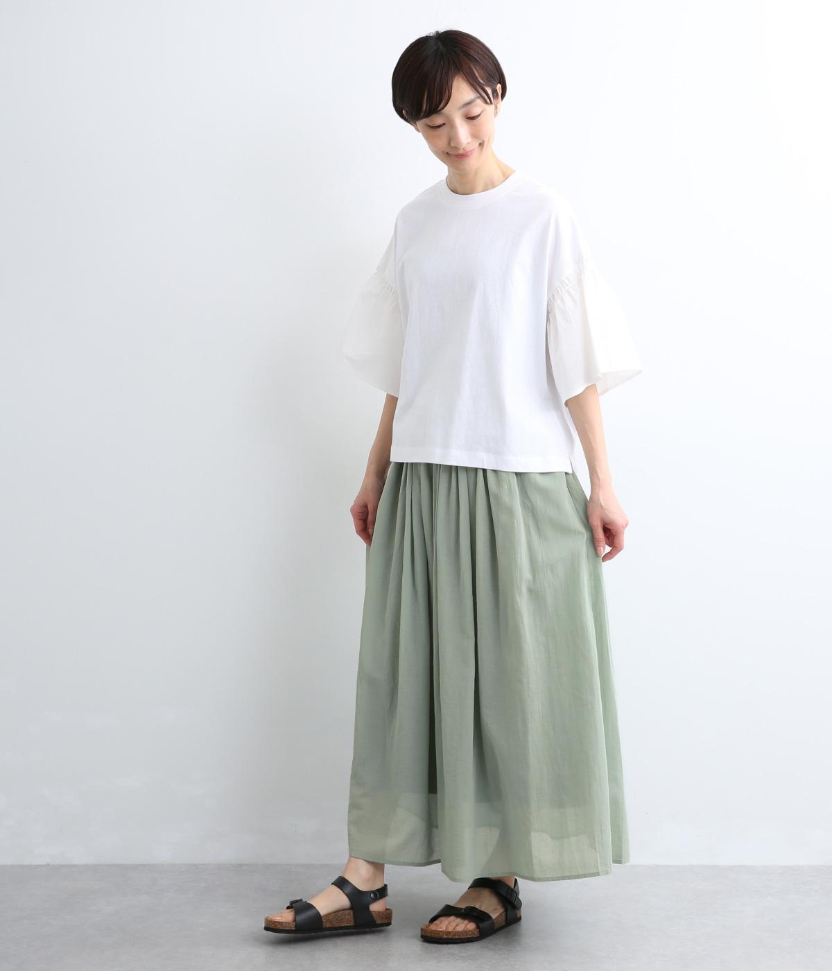 透け感のあるガーゼ素材と、ほどよい厚みの天竺素材を重ねた、二層仕立てのスカートです。異素材のコントラストで奥行きのある表情に。ほどよいボリュームのAラインシルエットが動くたびにゆれ、女性らしさを引き立てます。シンプルなトップスと合わせるだけで、華やかなコーディネートに仕上がる一枚です。