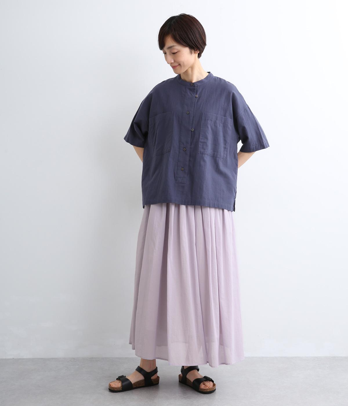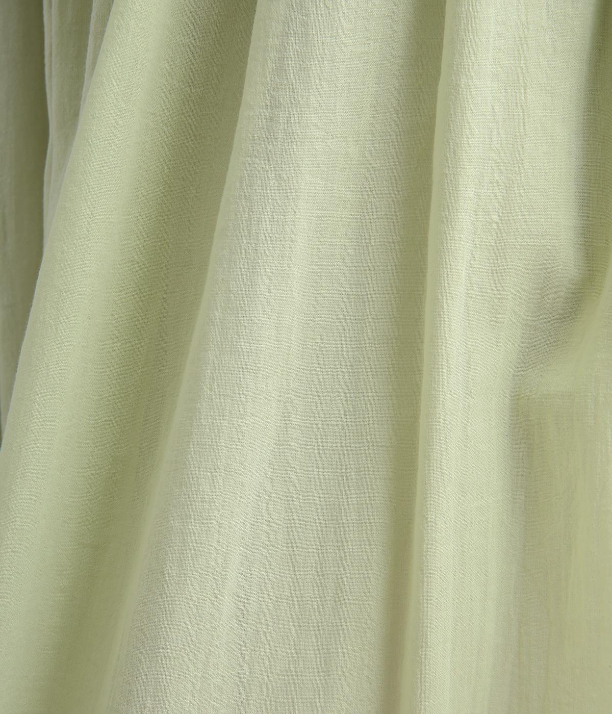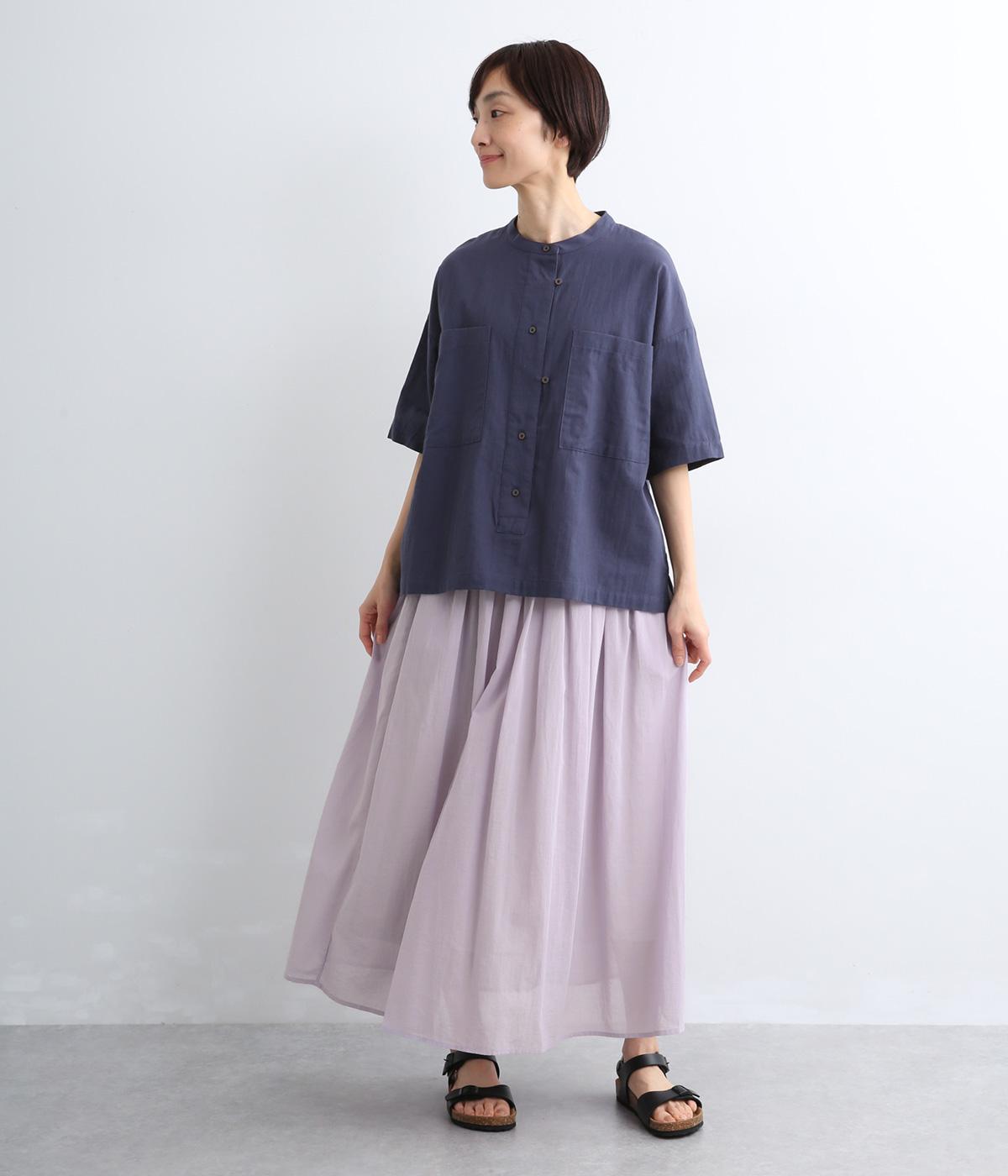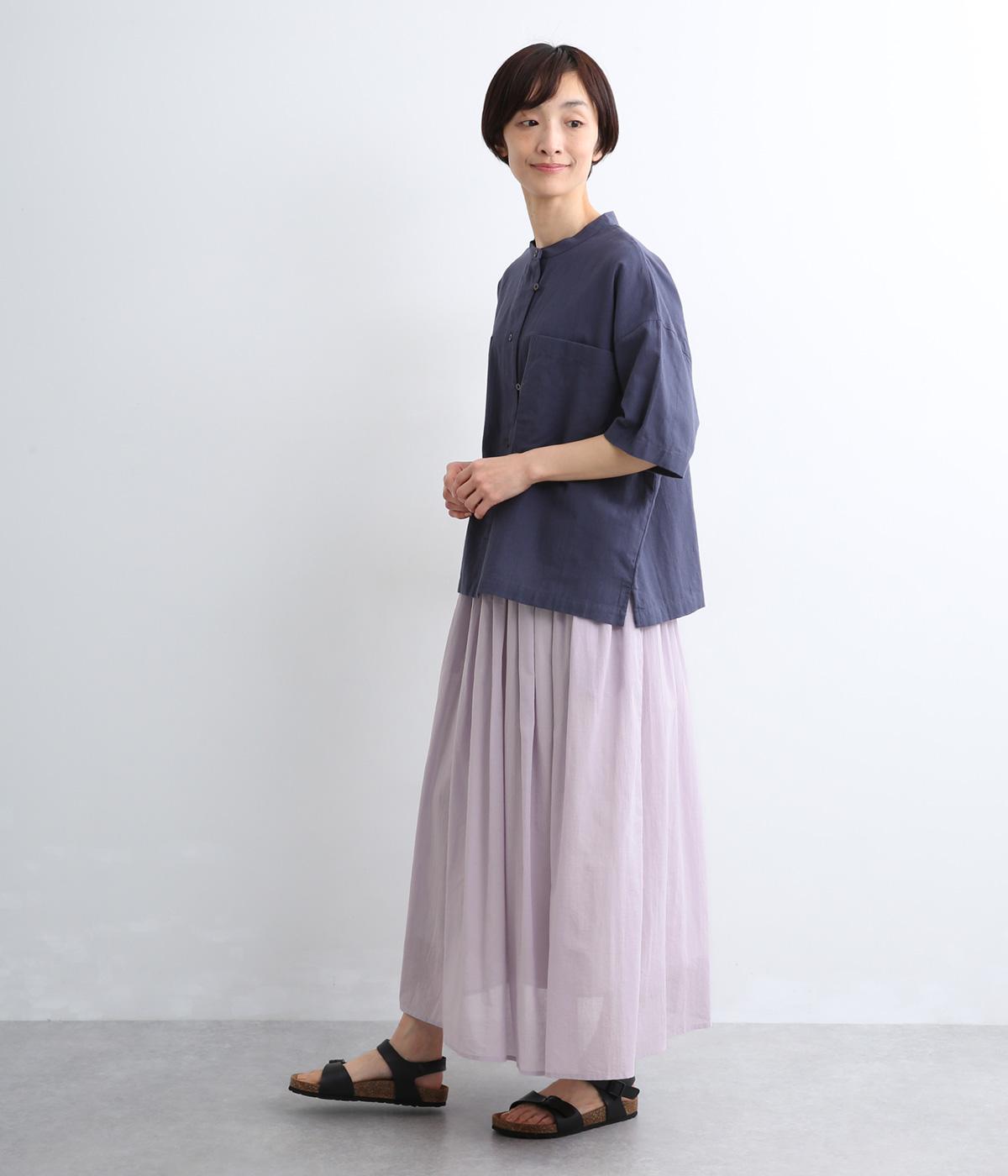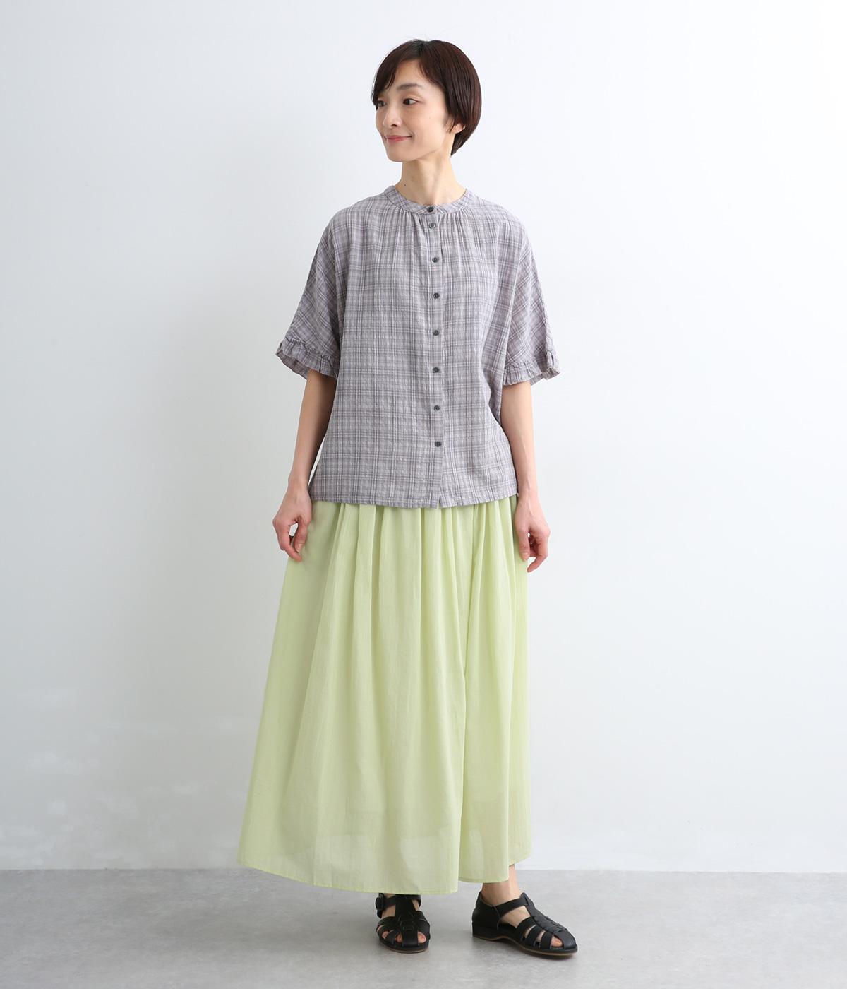 外側にはやわらかなガーゼ素材を重ね、ほんのり透ける軽やかな表情に仕上げました。裏地は、シルケット加工を施したのびのよいコットン天竺を合わせ、するりとしたなめらかな肌ざわりに。さらりとした質感と通気性のよさで、心地よく着用できます。