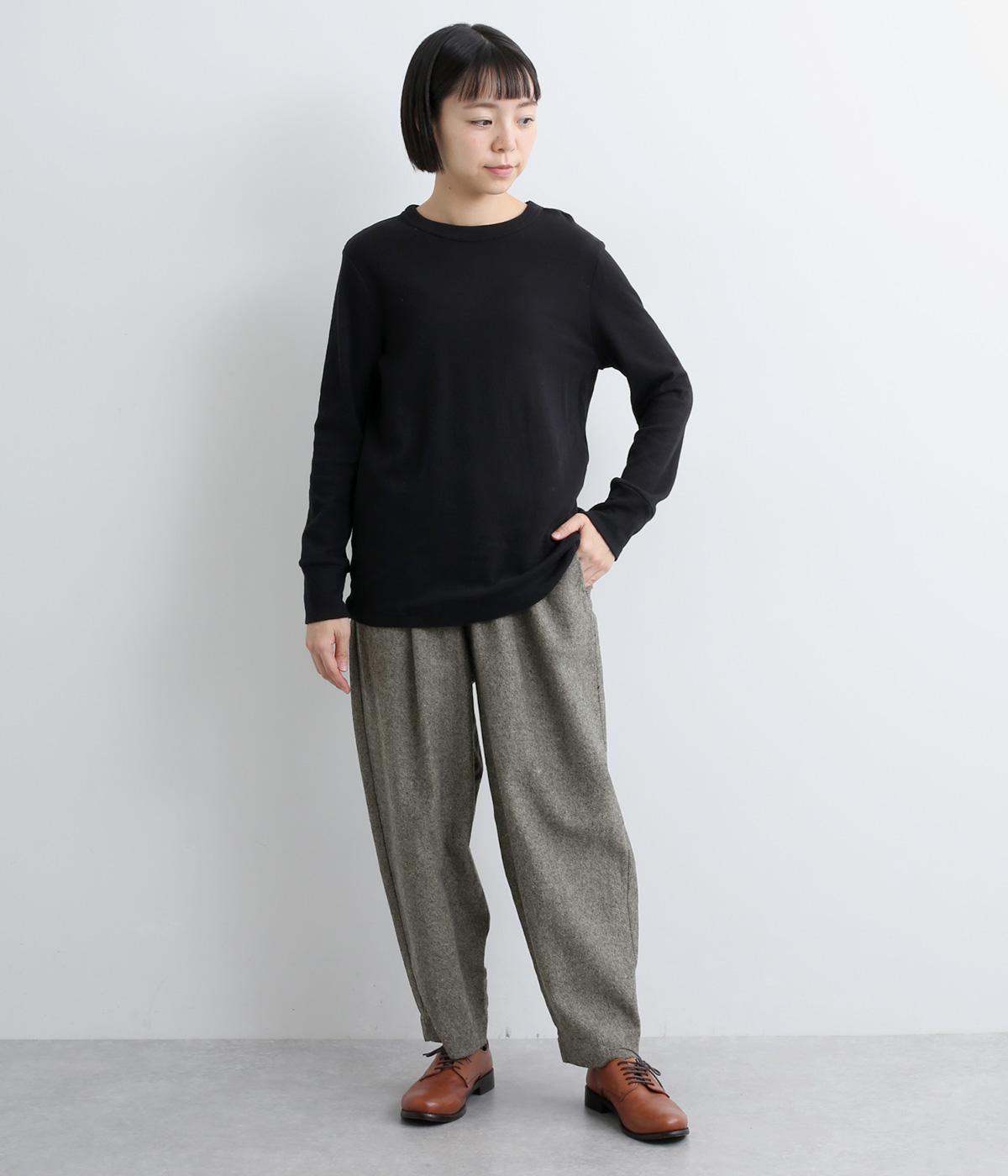 ふっくらとした起毛感とハリの少ないやわらかな風合いで、あたたかくストレスフリーな着用感を叶えるコットン生地。見た目にも上品さと季節感を添えてくれます。