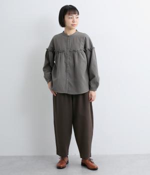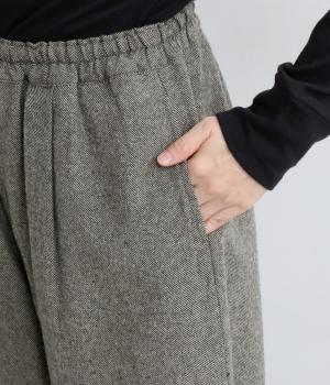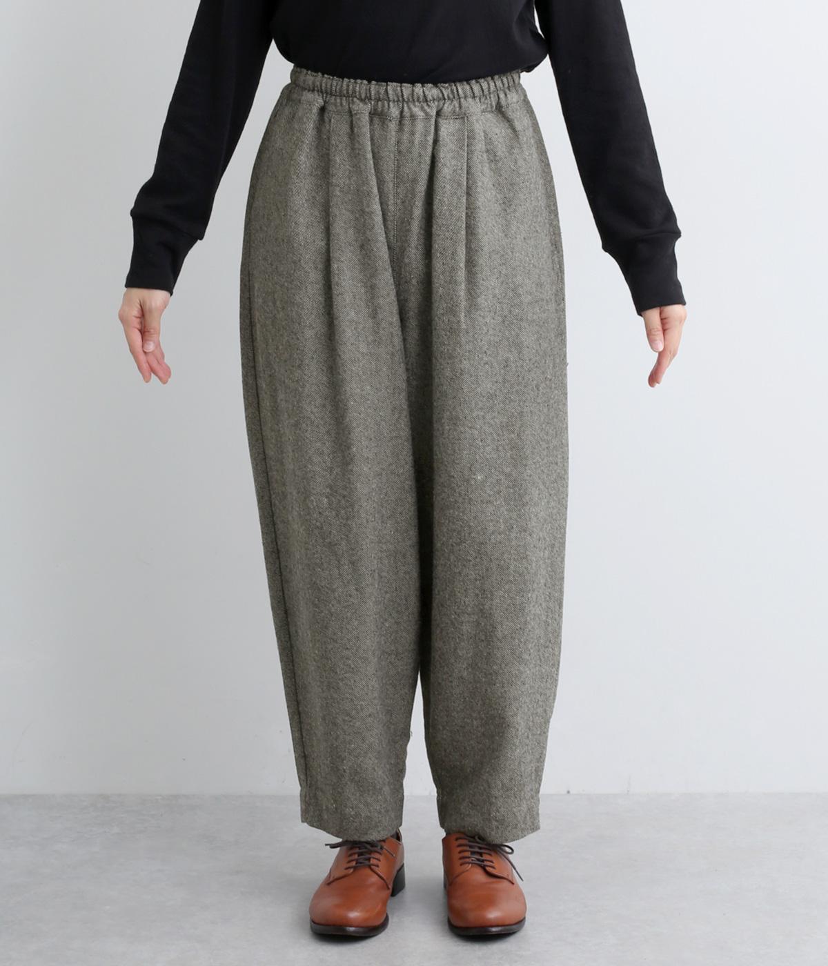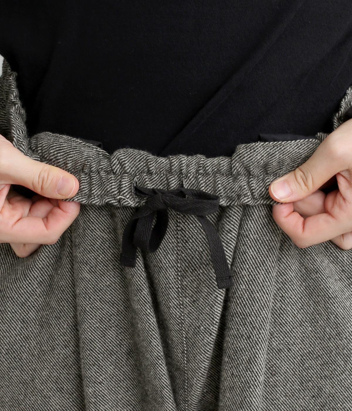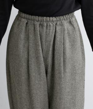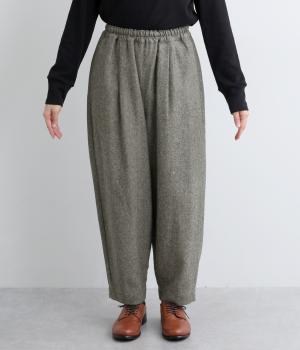 丸みのあるシルエットが魅力のバレルパンツ。脚のラインを拾いにくく、足首にすっきりとした抜け感を添えてくれます。装いにこなれ感を与えるので、シンプルなトップス合わせでもサマ見え。ウエストはゴムと内紐を通してイージーなはき心地に仕上げました。