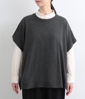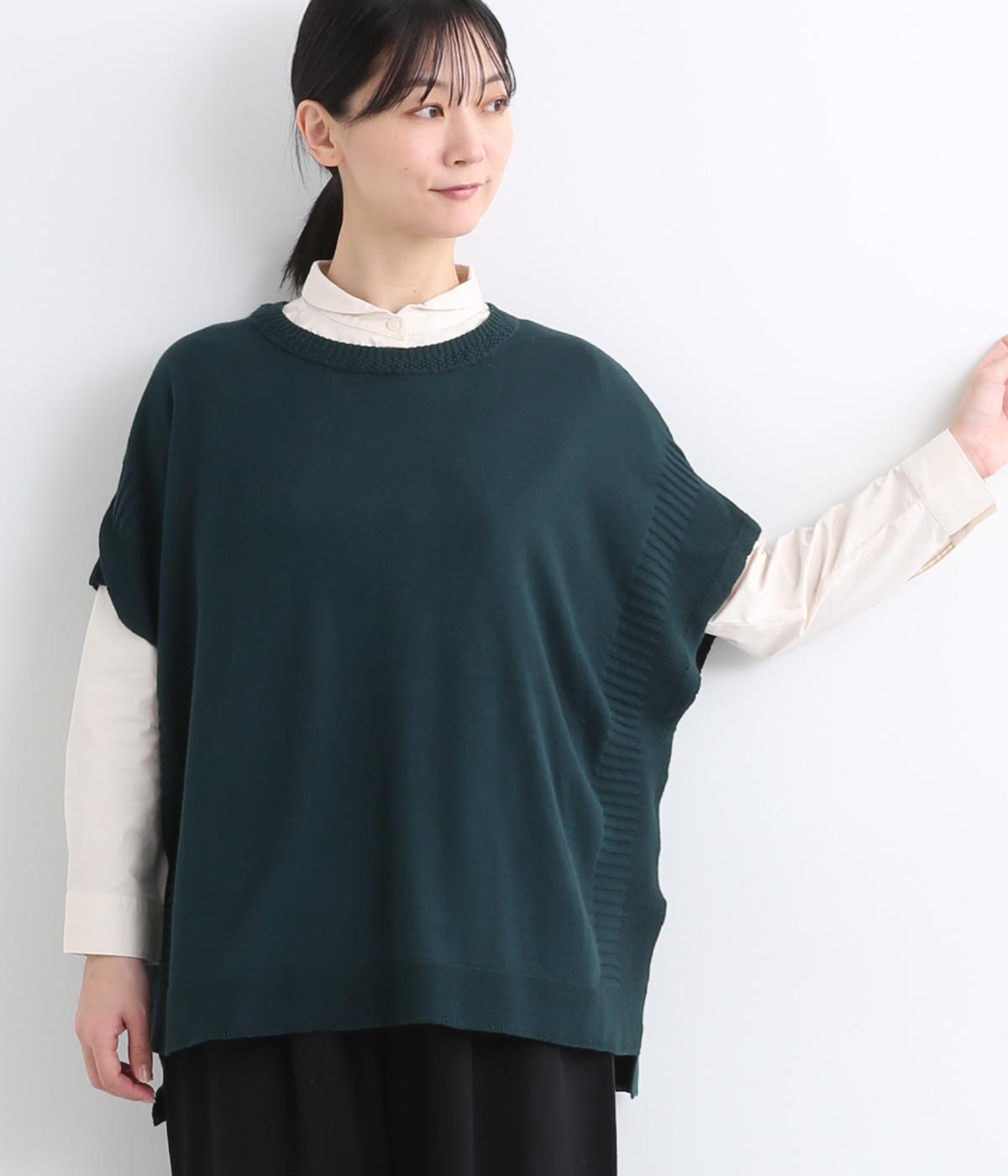 やわらかな風合いのコットンニットは、レイヤードでもごわつかず快適。吸湿性と通気性にすぐれ、ロングシーズン着られます。透かし編みで涼しげに仕上げました。