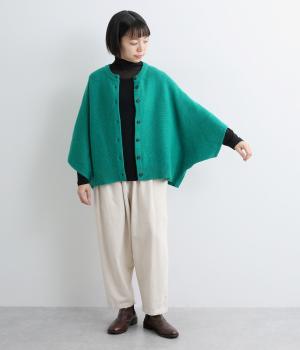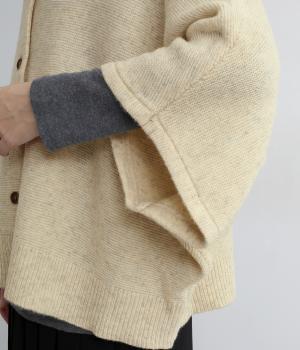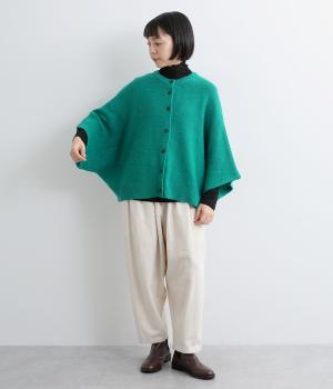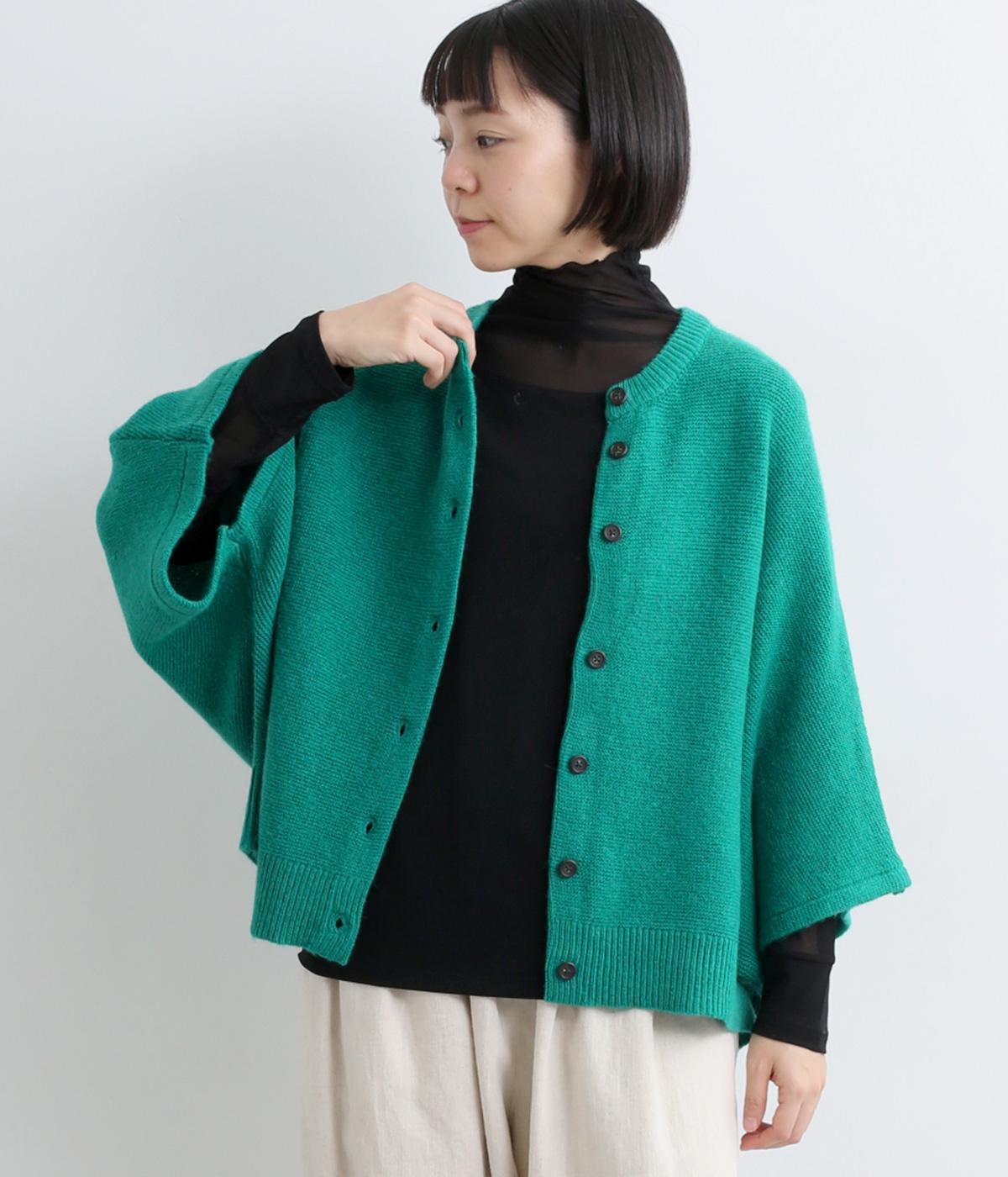 見た目も着心地もリラクシーなドルマンスリーブのカーディガン。動くたびに生地もふんわりと揺れ、女性らしさを惹きたてます。ガーター編みのシンプルな編地が、肩ひじ張らないナチュラルな印象を演出。手首の覗く短めの袖丈で抜け感をプラスしました。