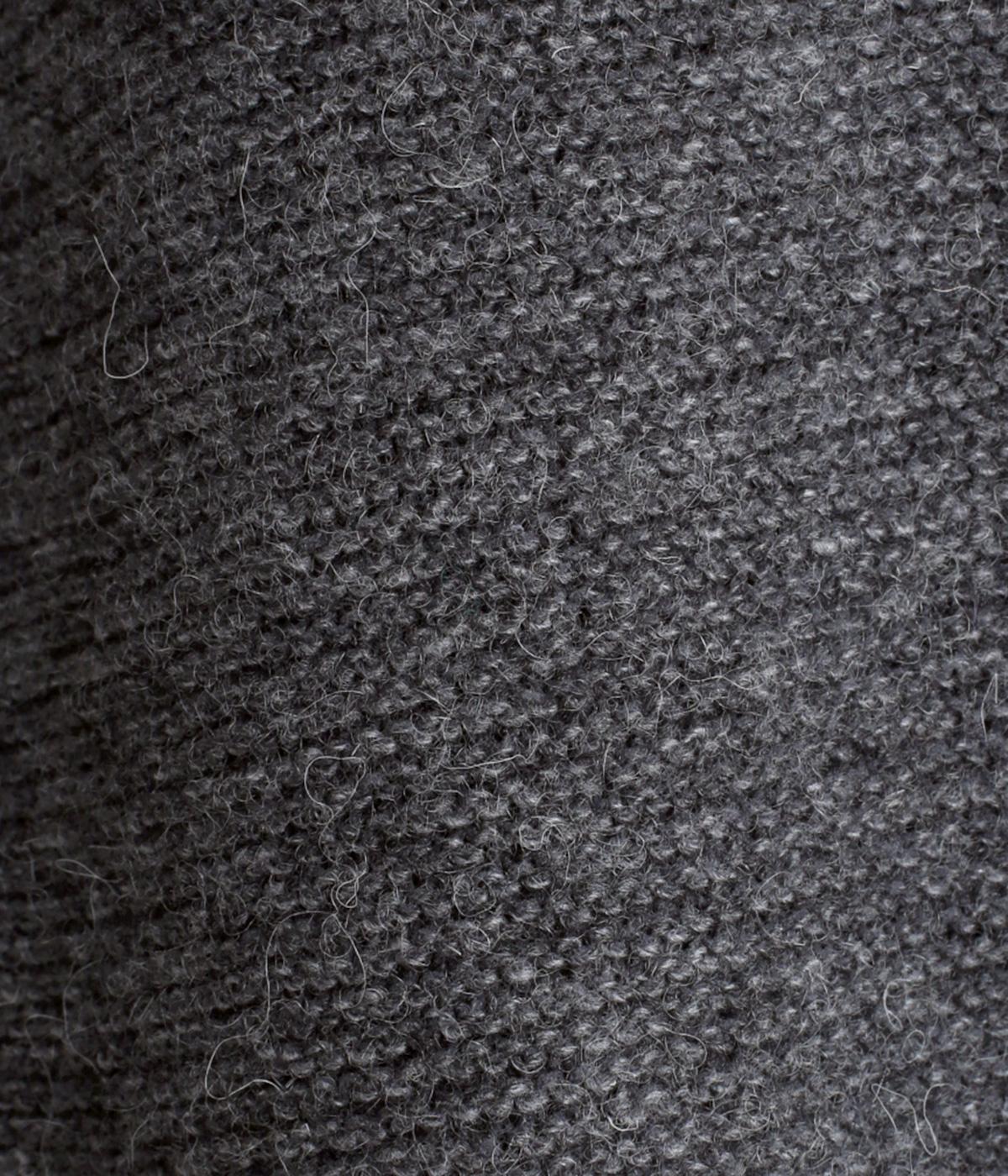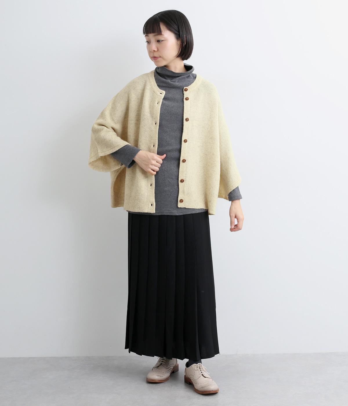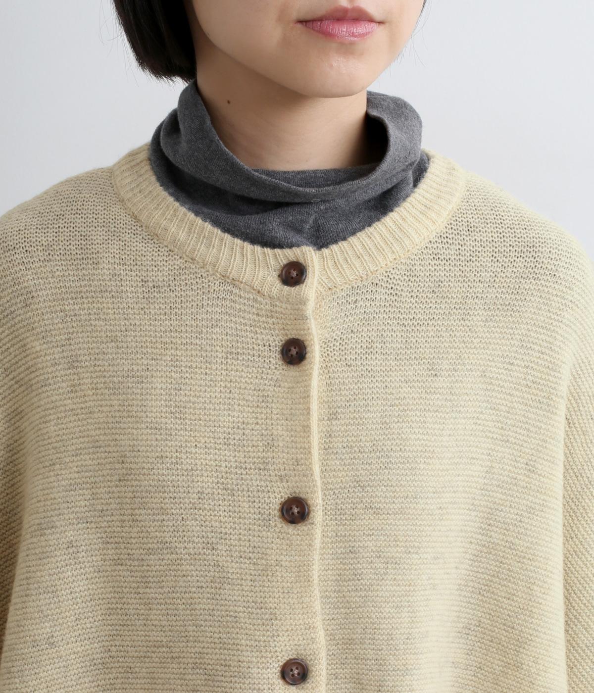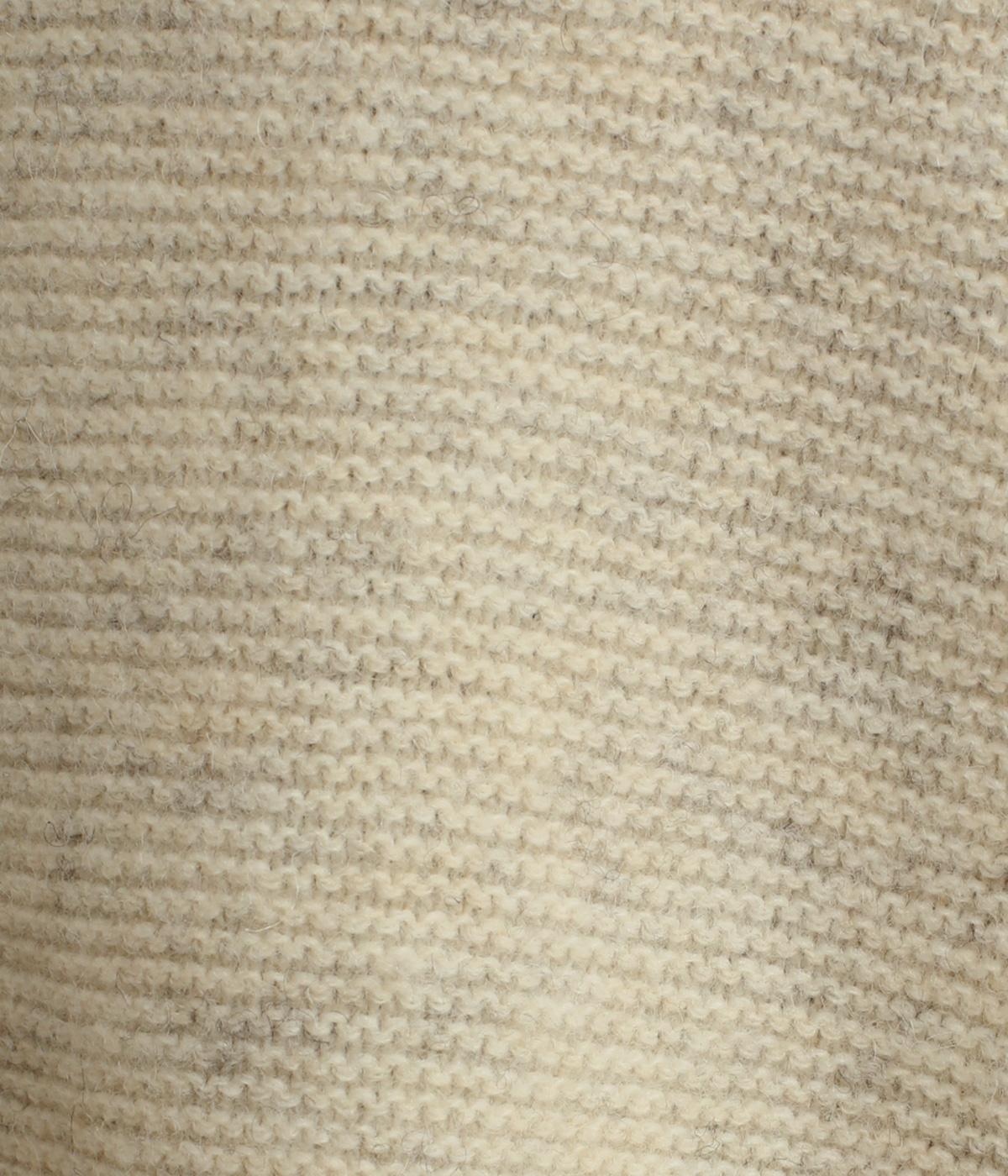 細めの糸でふっくらと編み上げた軽くやわらかなニット生地。ウールをメインにブレンドした糸を使っているので、厚みをおさえながらも保温性が高いのが魅力です。