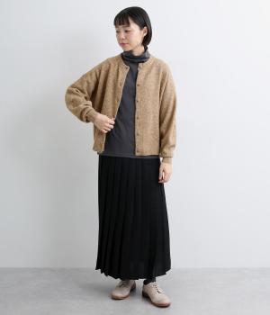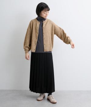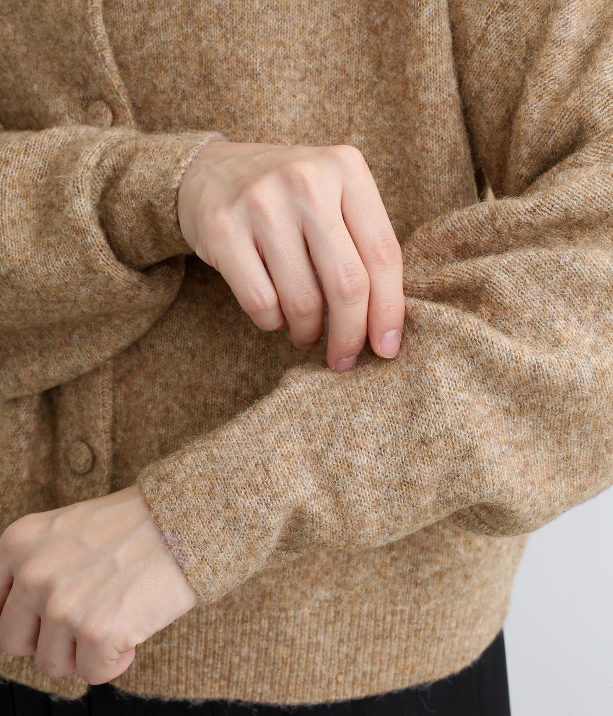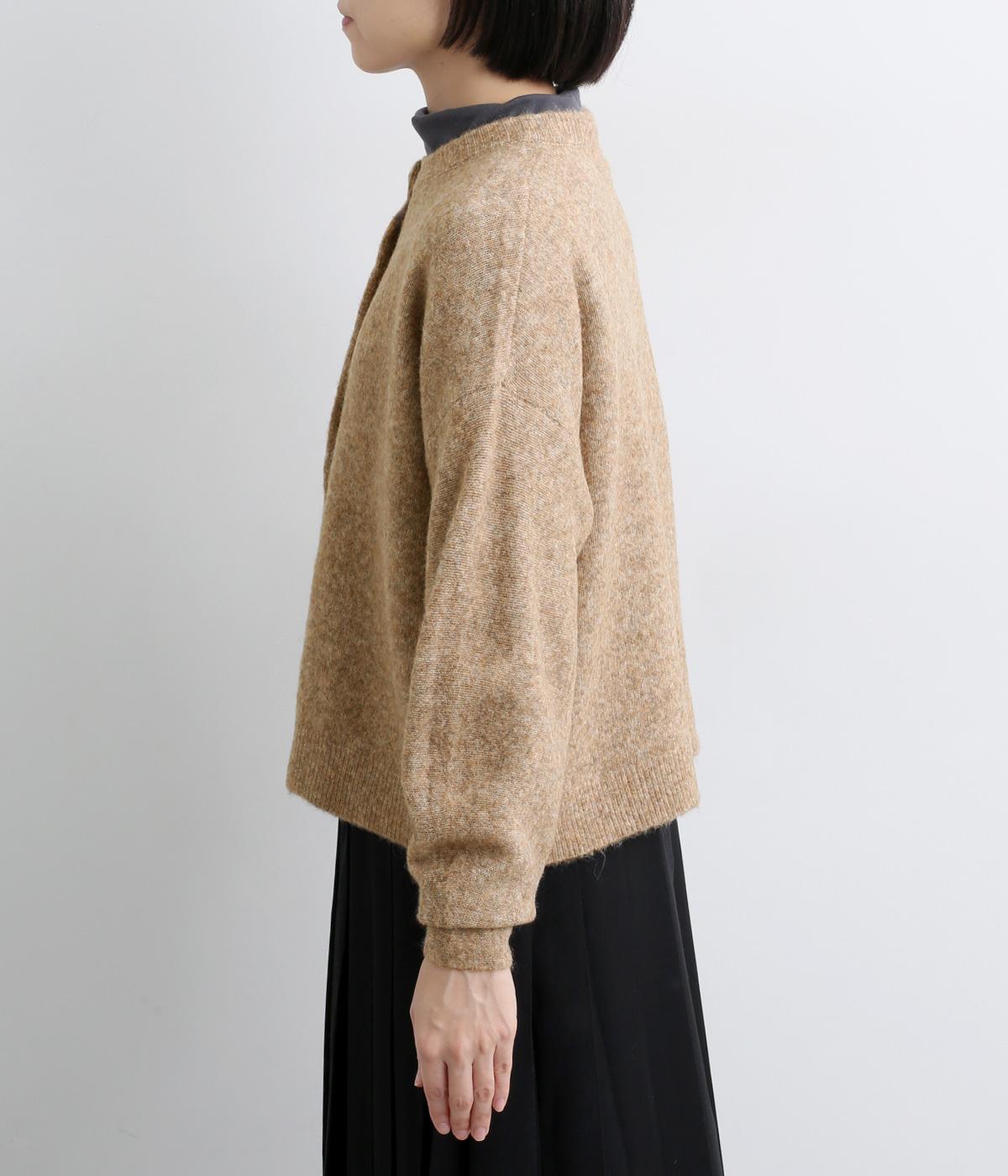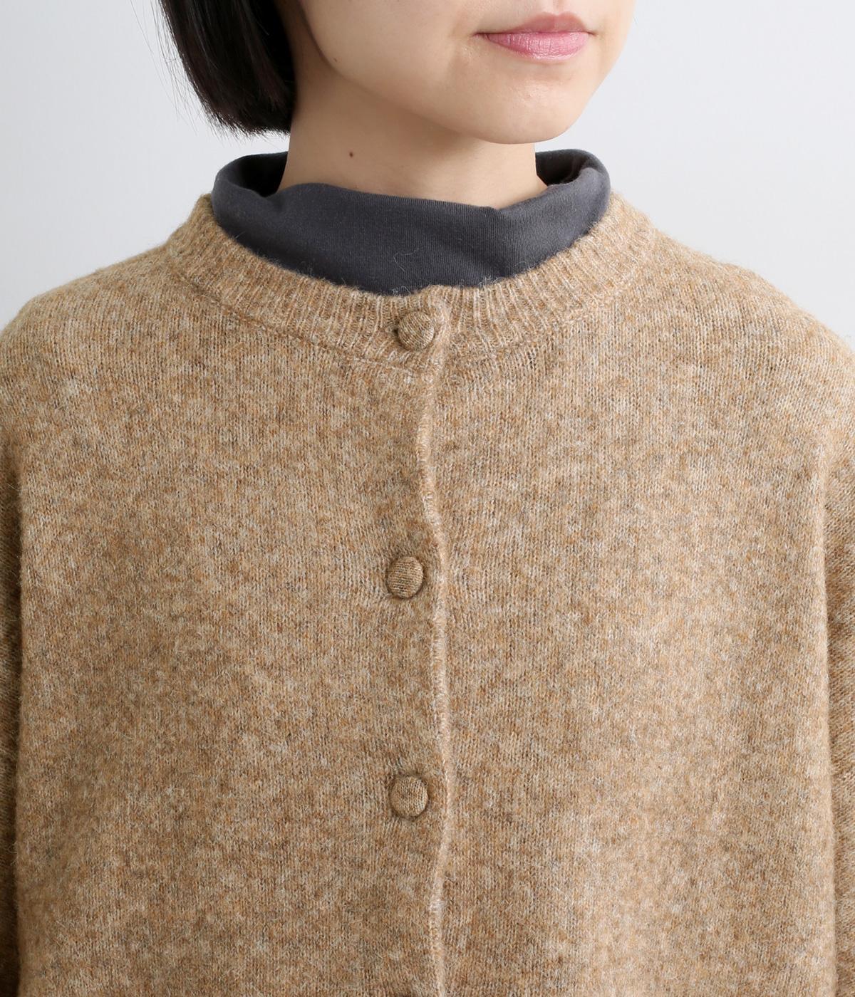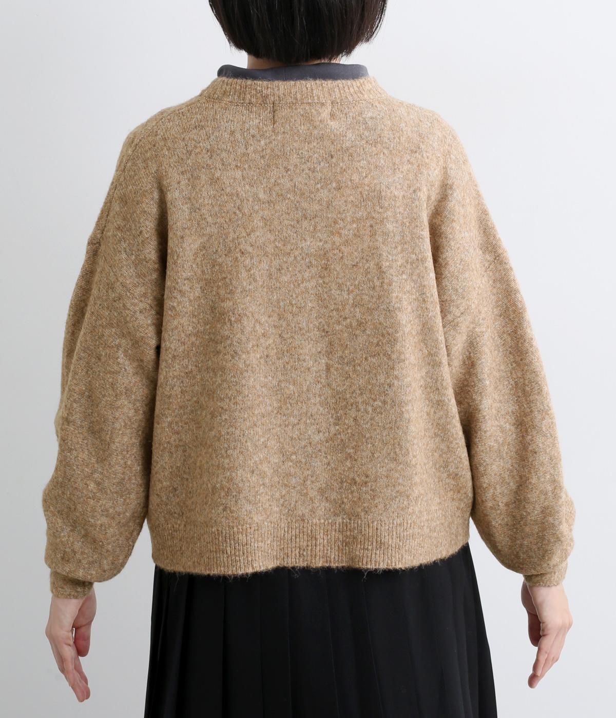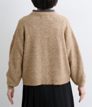 ウールやキャメルをブレンドした、とても軽くやわらかな風合いとあたたかな着用感が魅力のニットです。ふっくらとしながらも厚みをおさえており、アウターの下に着込みやすいのも好ポイント。