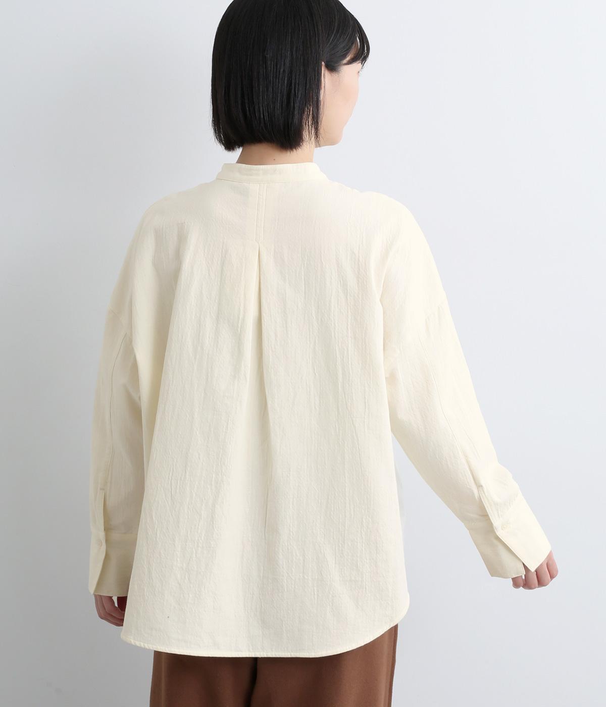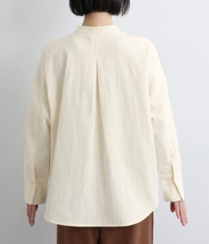 ロングシーズン快適に着られる、通気性のよいさらりとしたコットン生地で仕立てています。表面のナチュラルなシワ感がポイント。適度なハリがシルエットをきれいにキープします。