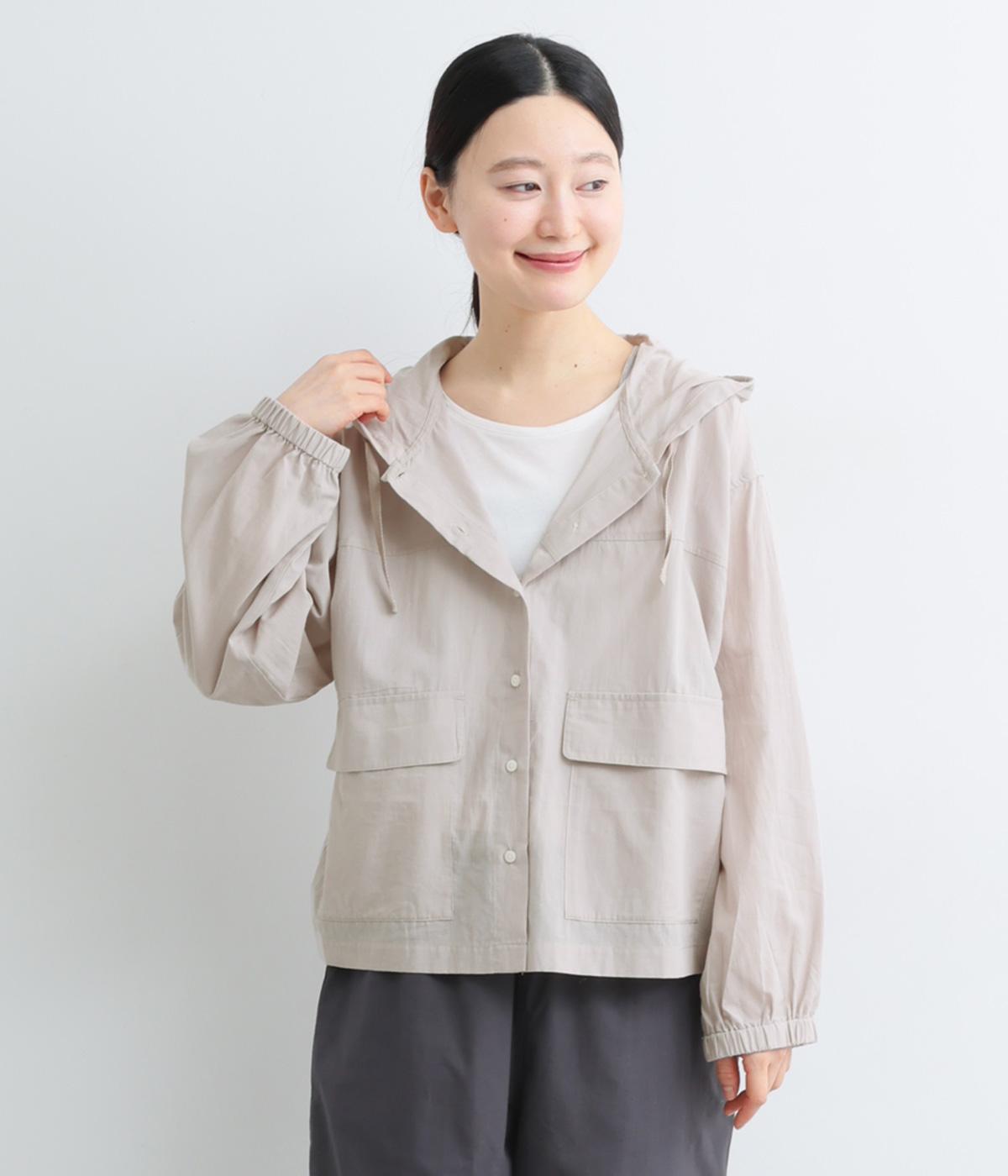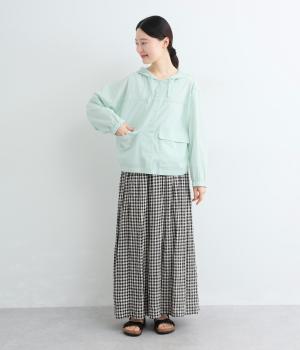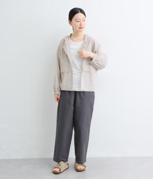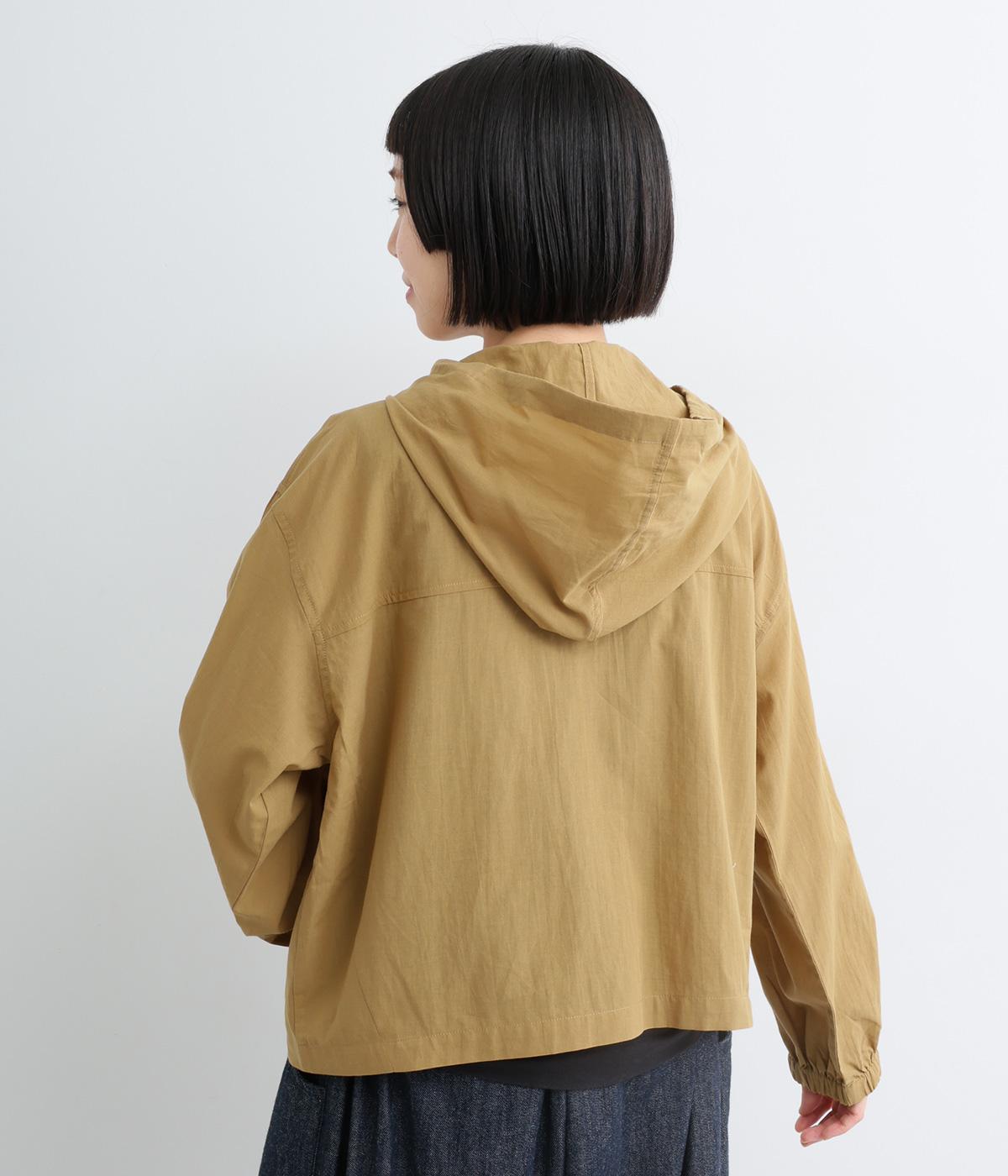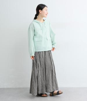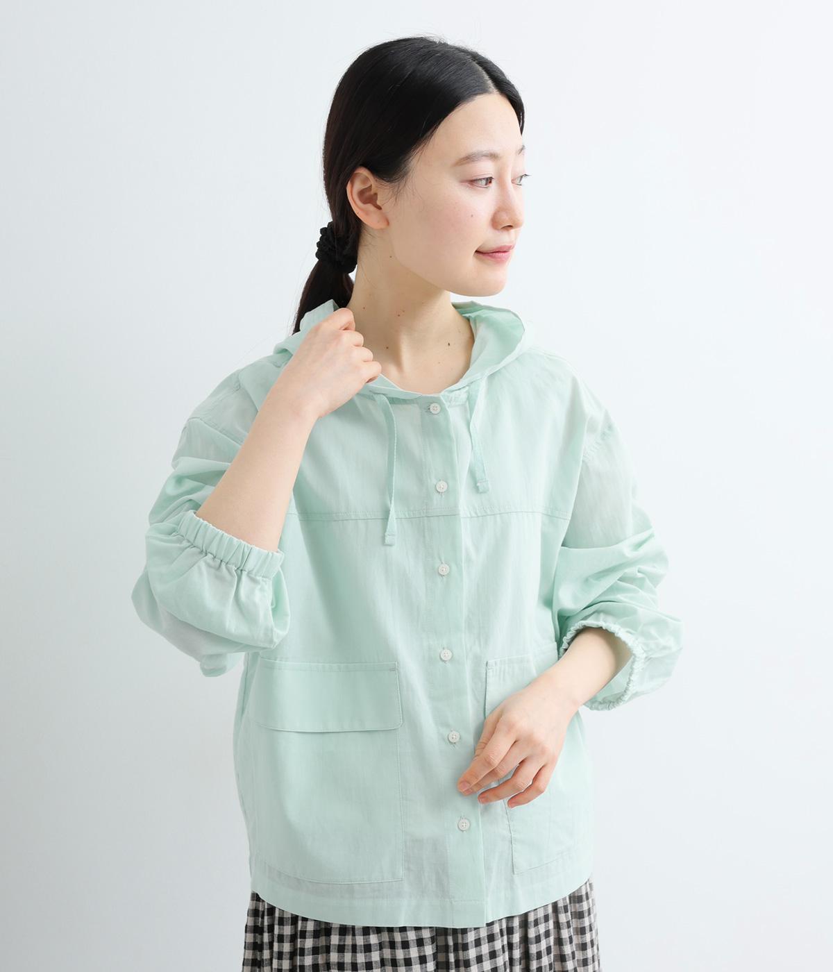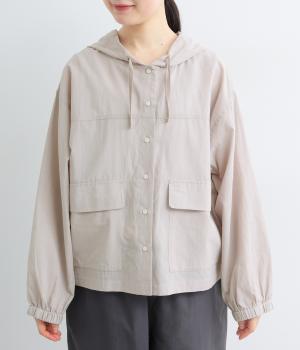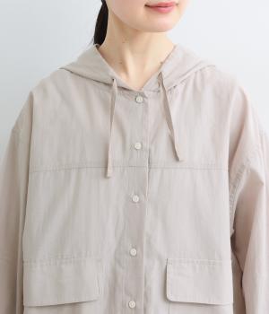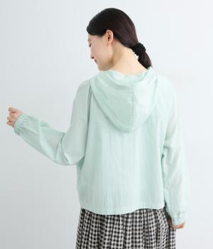 カジュアルなフードデザインを、透け感のある素材で上品に仕立てました。袖口がゴム仕様なので、たくし上げた際もふんわりと美しいフォルムを表現します。フロントの大きなフラップポケットが機能性とともに、スタイリングのアクセントになります。