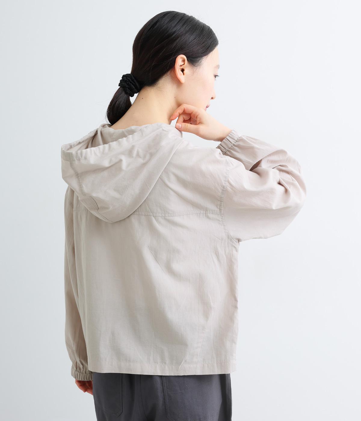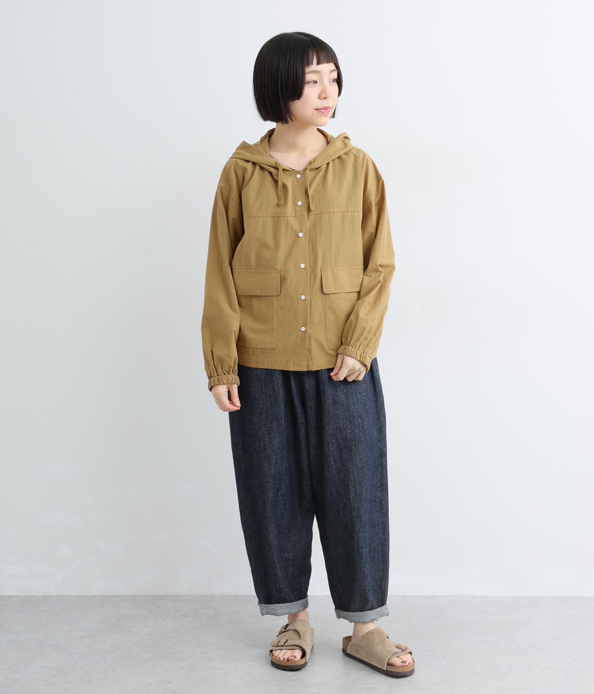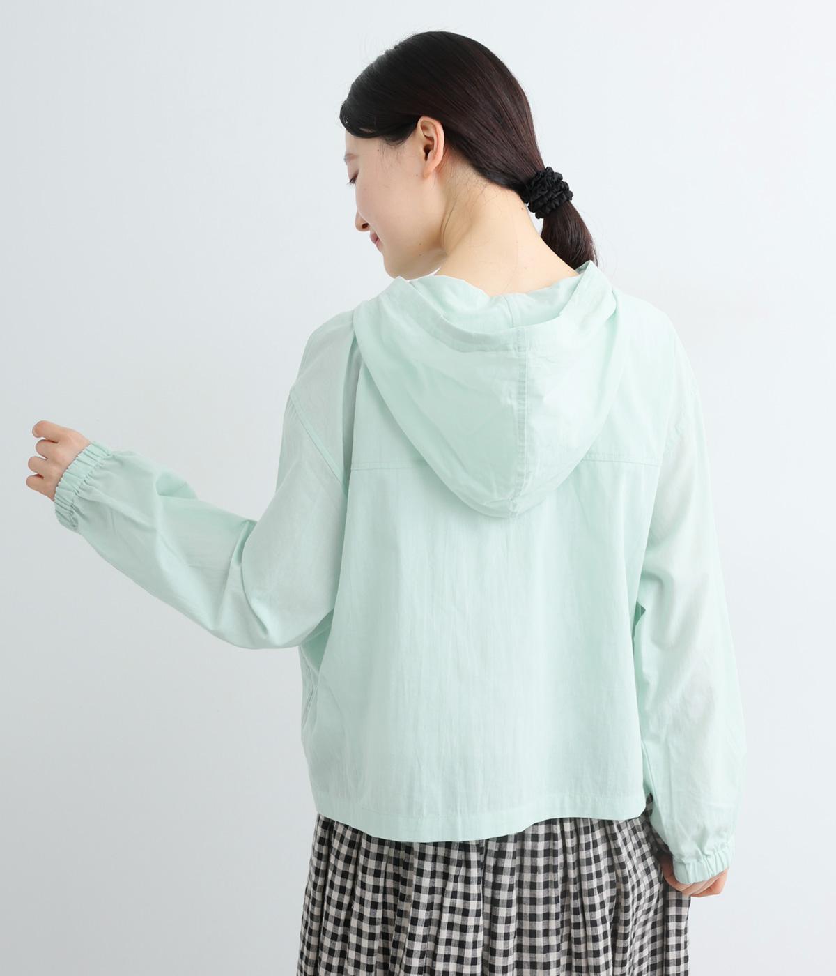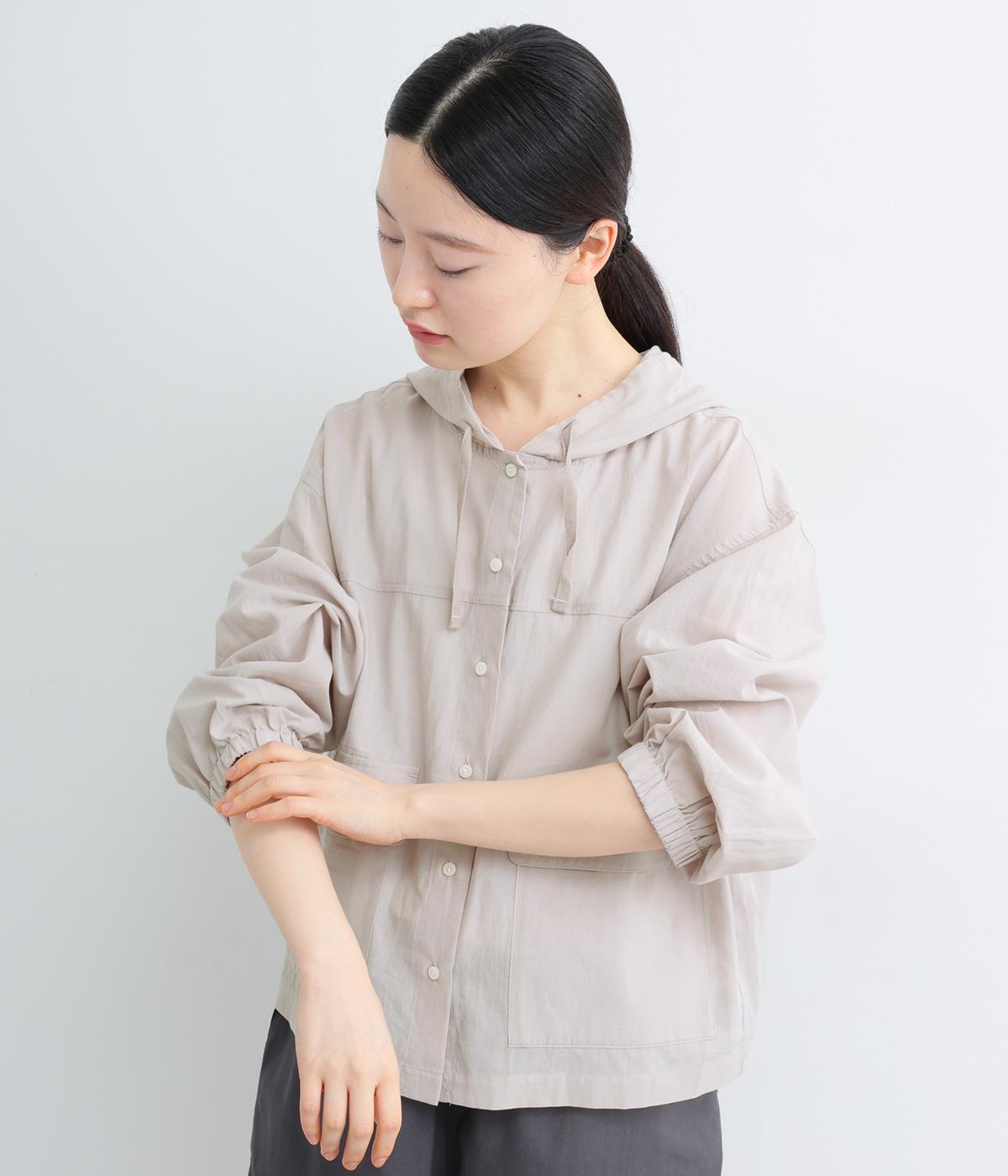 カジュアルなフードデザインを、透け感のある素材で上品に仕立てました。袖口がゴム仕様なので、たくし上げた際もふんわりと美しいフォルムを表現します。フロントの大きなフラップポケットが機能性とともに、スタイリングのアクセントになります。