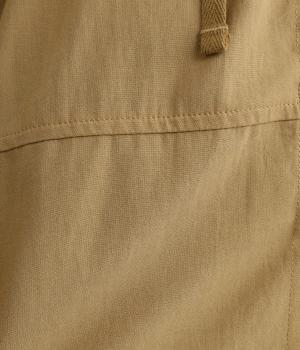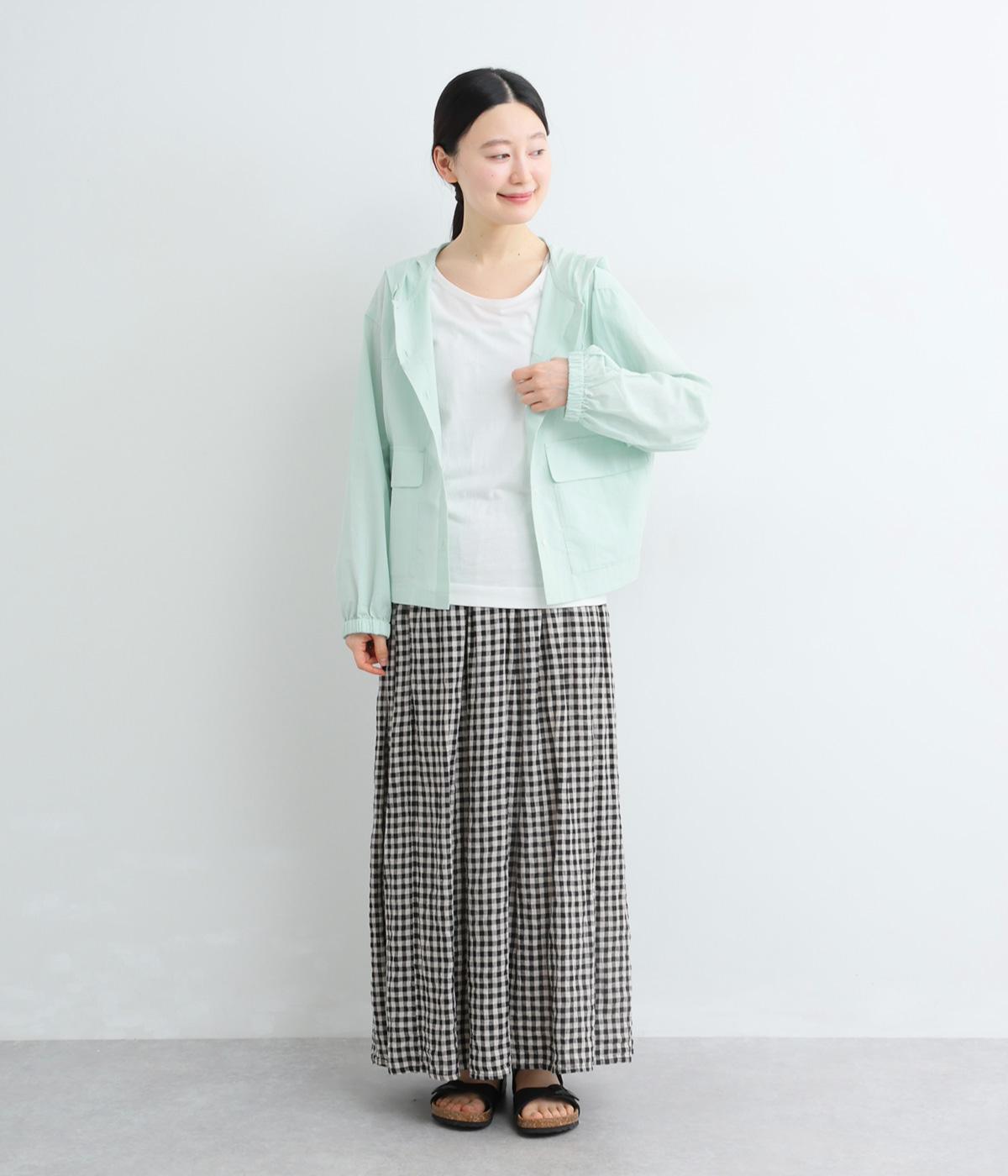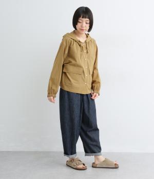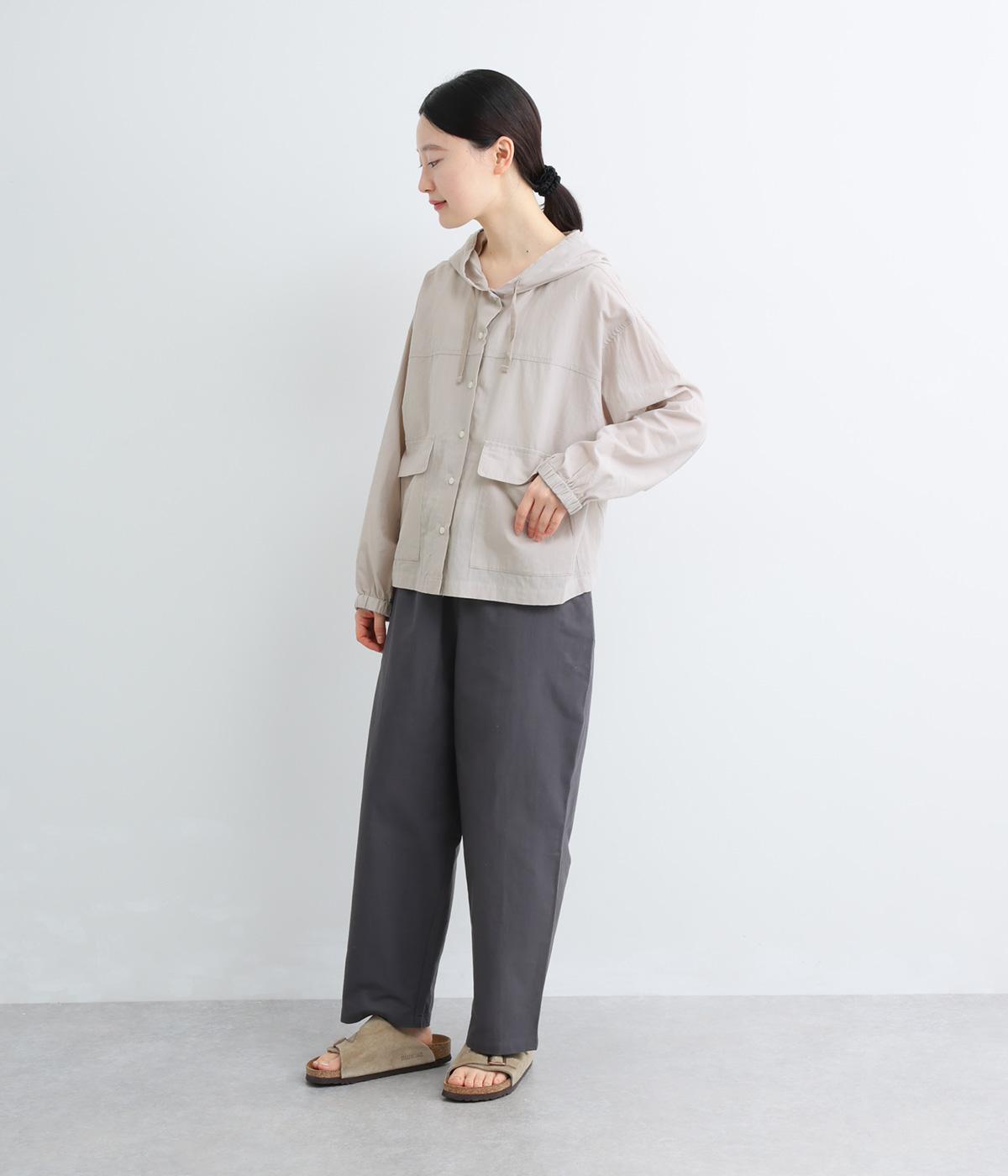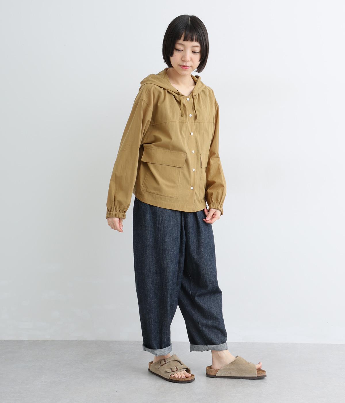 カジュアルなフードデザインを、透け感のある素材で上品に仕立てました。袖口がゴム仕様なので、たくし上げた際もふんわりと美しいフォルムを表現します。フロントの大きなフラップポケットが機能性とともに、スタイリングのアクセントになります。