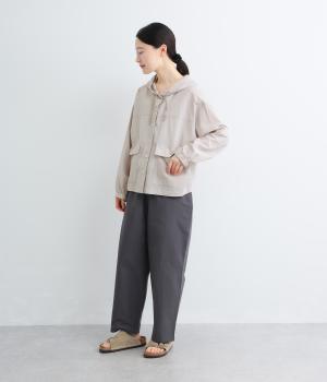 繊細で軽やかな透け感が楽しめる、極薄のコットン素材を使用しました。さらりとしたドライな肌ざわりが心地よく、ロングシーズン重宝する一枚に。