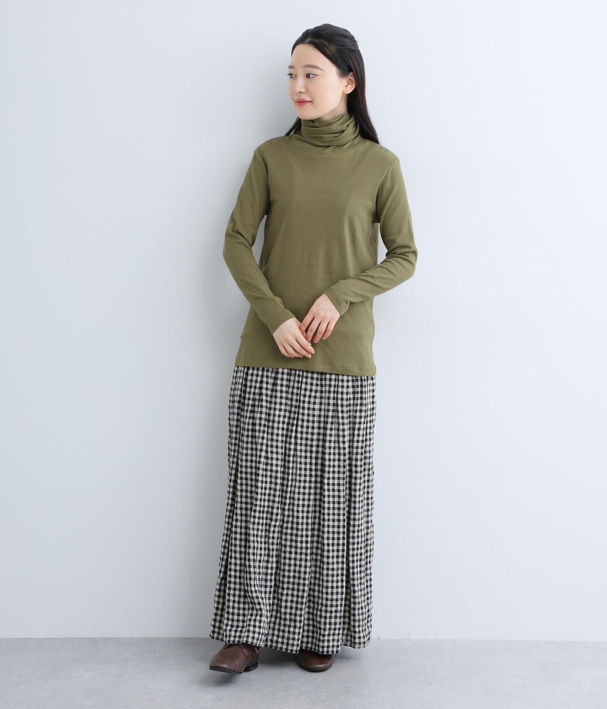 着心地のよさにこだわったシンプルなタートルネックTシャツ。ネック部分は生地を2重にしてねじりを加えボリュームを出しました。さっと着るだけでちょうどいい具合にくしゅっとなるのが◎。一枚でも着やすいよう、身幅はほどよくゆとりを持たせています。