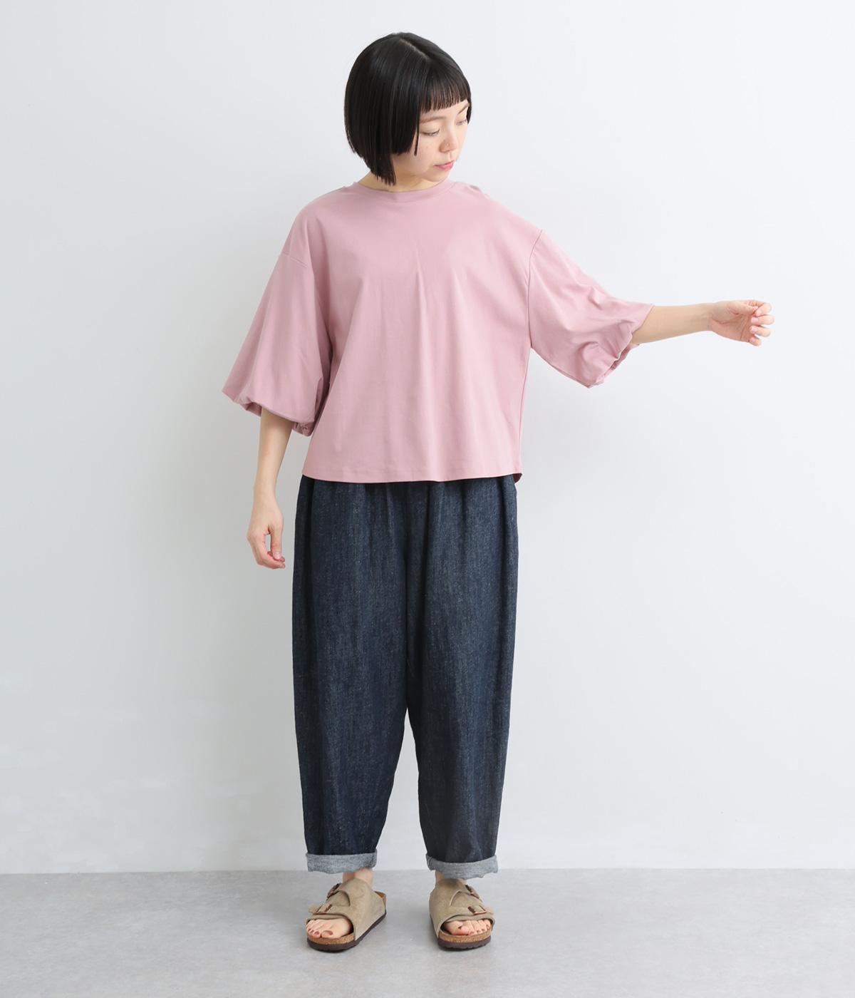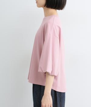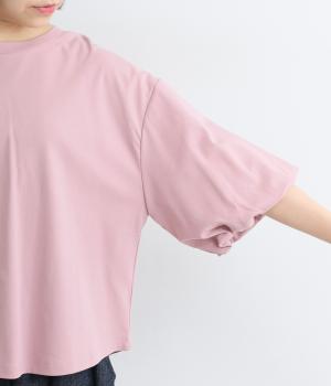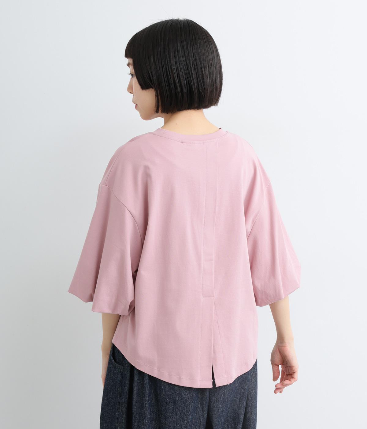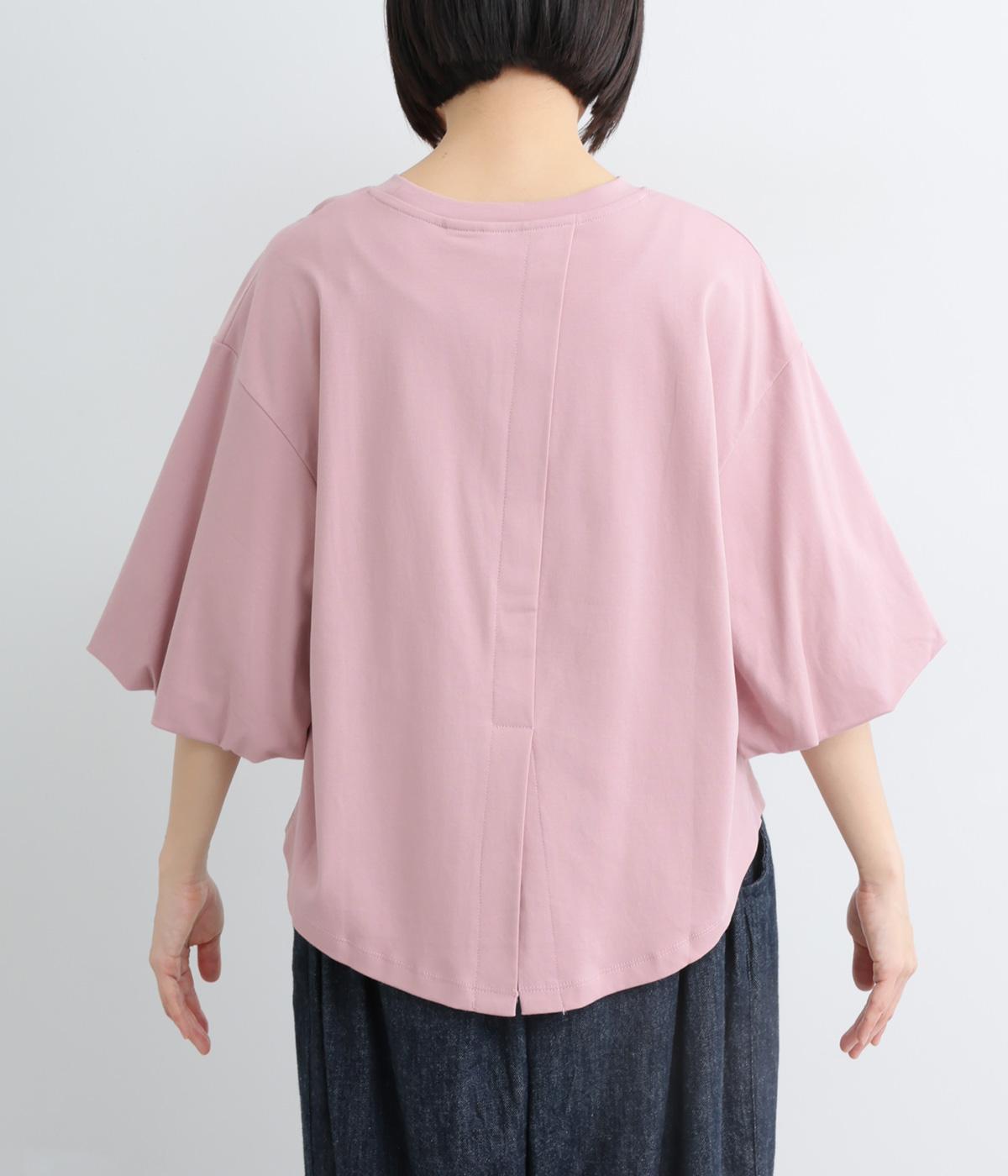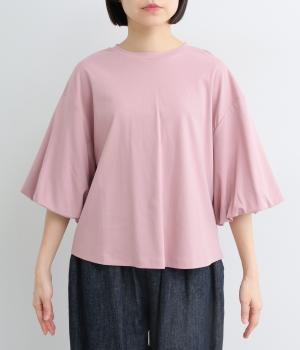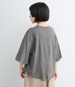 背面に施された深めのタックが、印象的なバックスタイルを演出するTシャツです。ふんわりと膨らむバルーンスリーブは、大人かわいく二の腕を自然にカバー。前後差のある裾ラインでボトム合わせもしやすく、こなれた装いをつくります。
