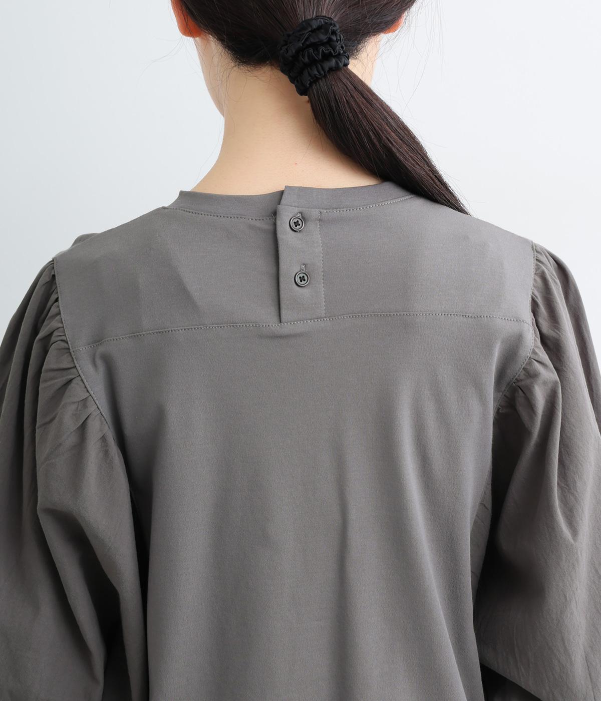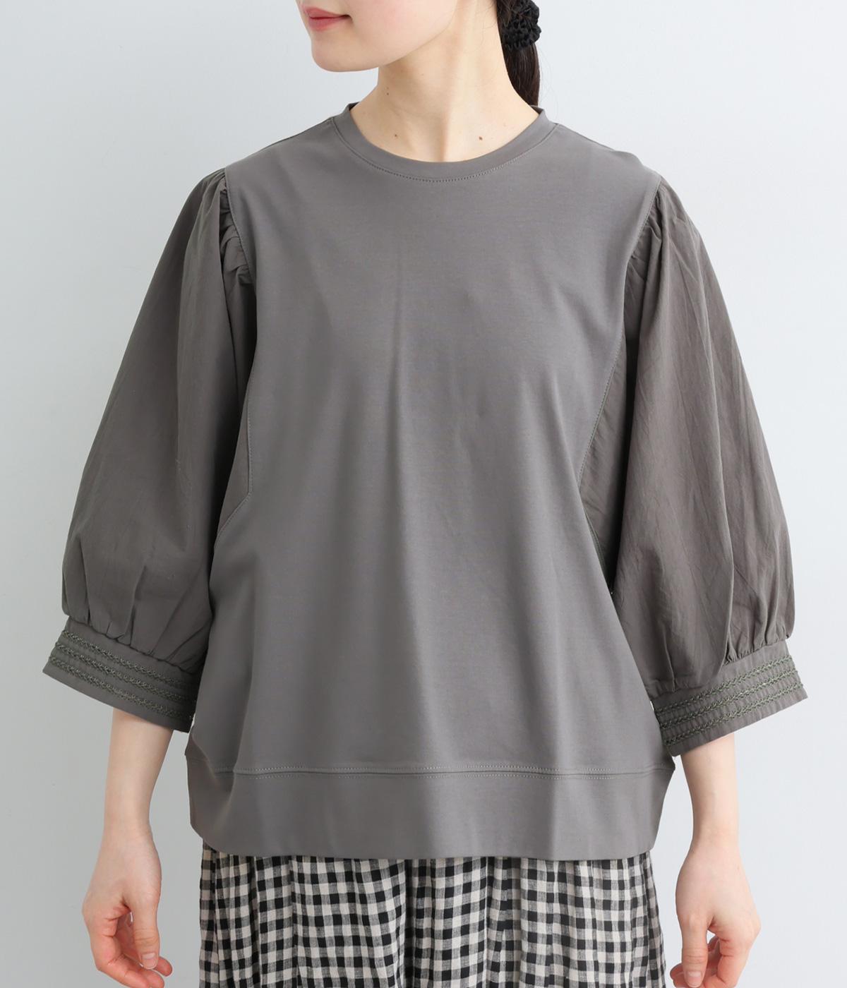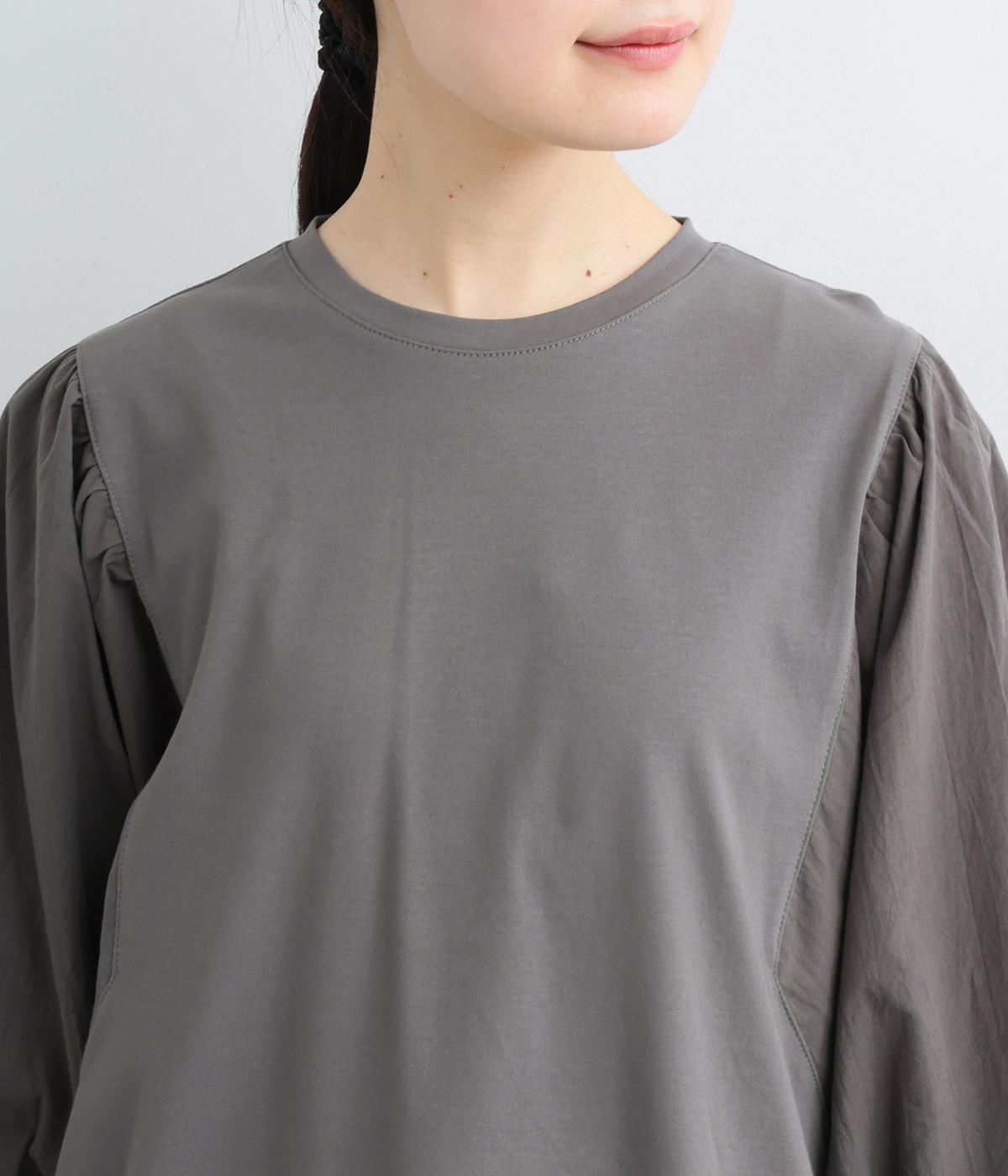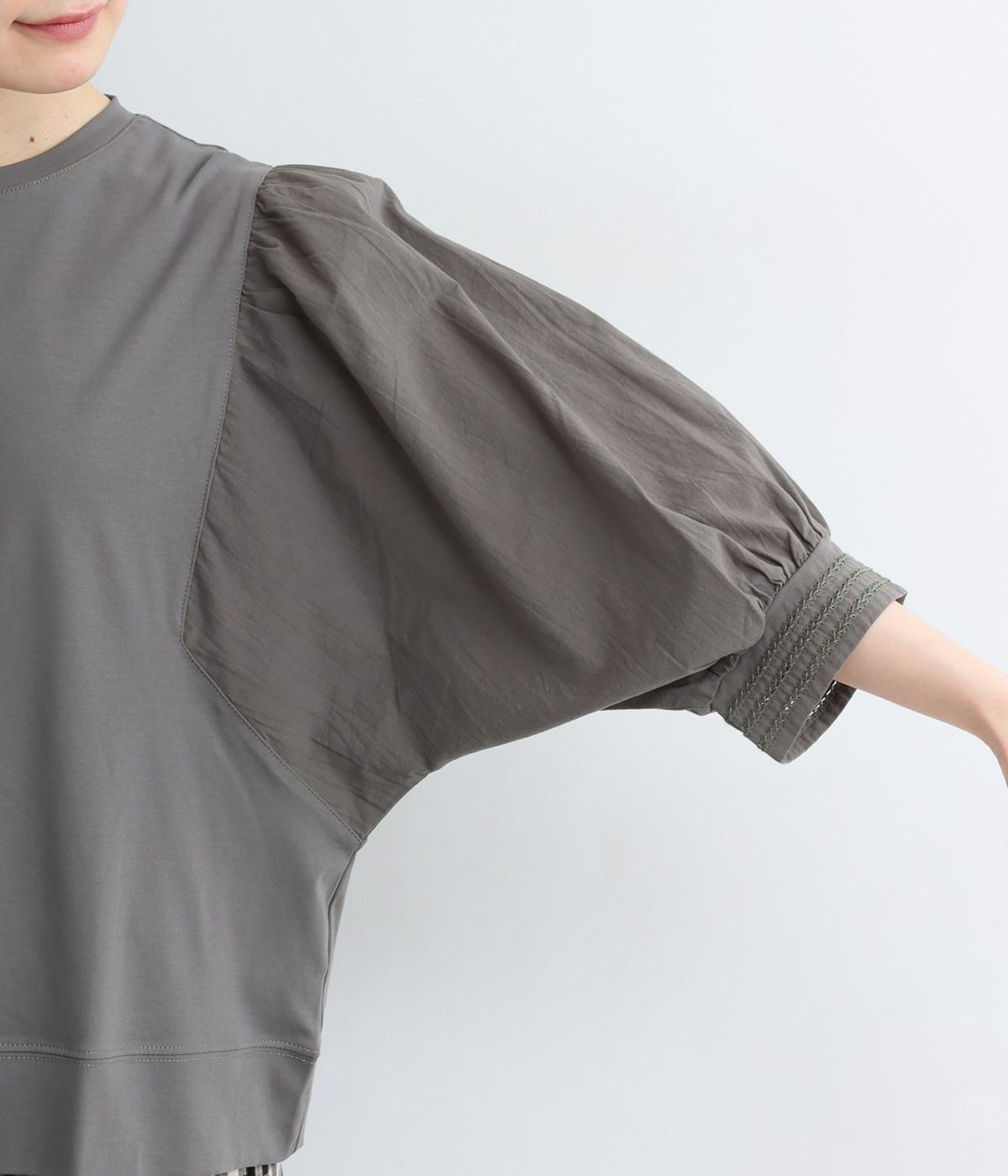 異素材のコントラストが目を惹くプルオーバーです。立体的なドルマンスリーブのボリューム感は、大人のかわいさを引き立てます。ゆとりを持たせたワイドシルエットが着やすく、着膨れしにくいのもポイントに。