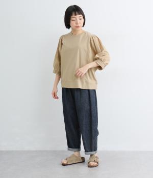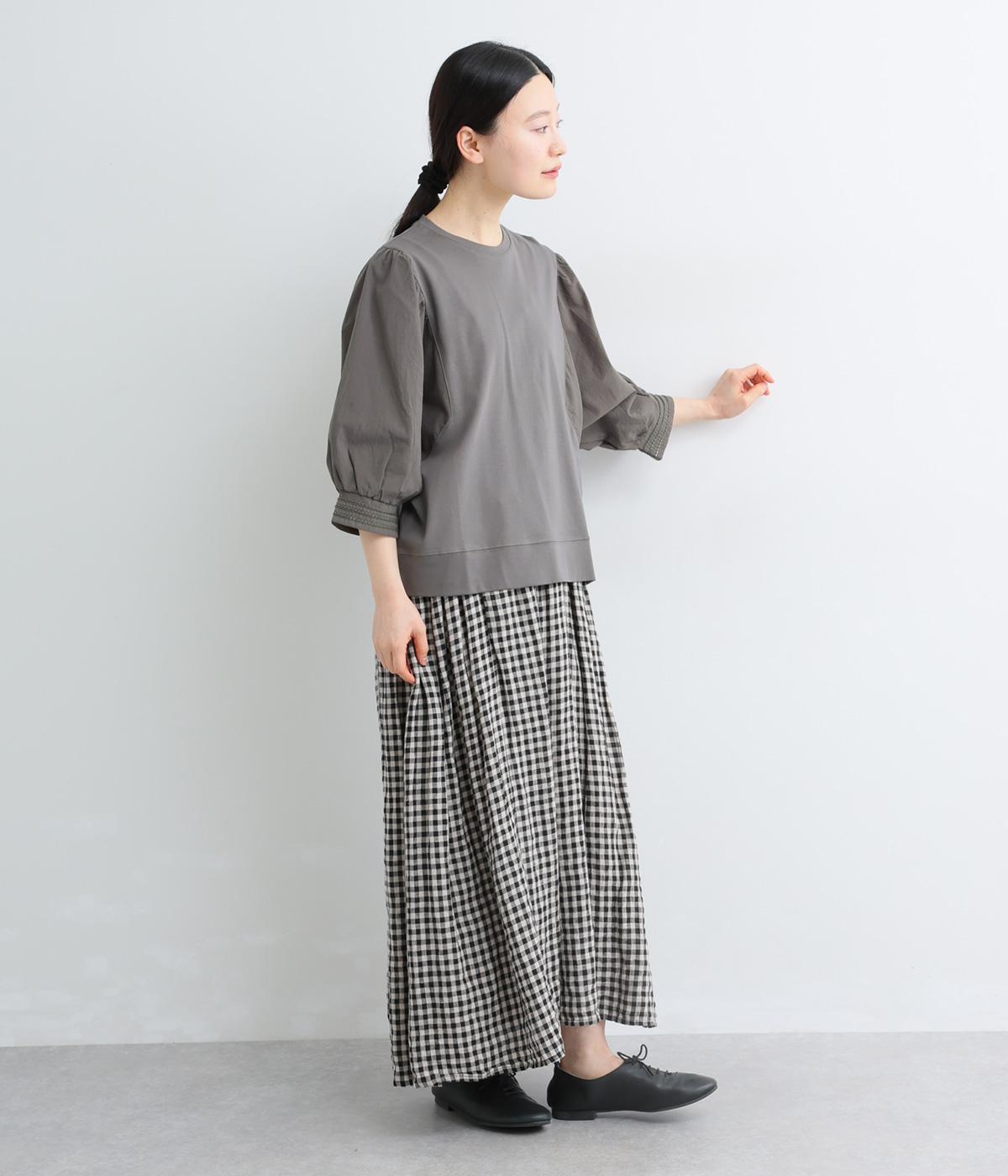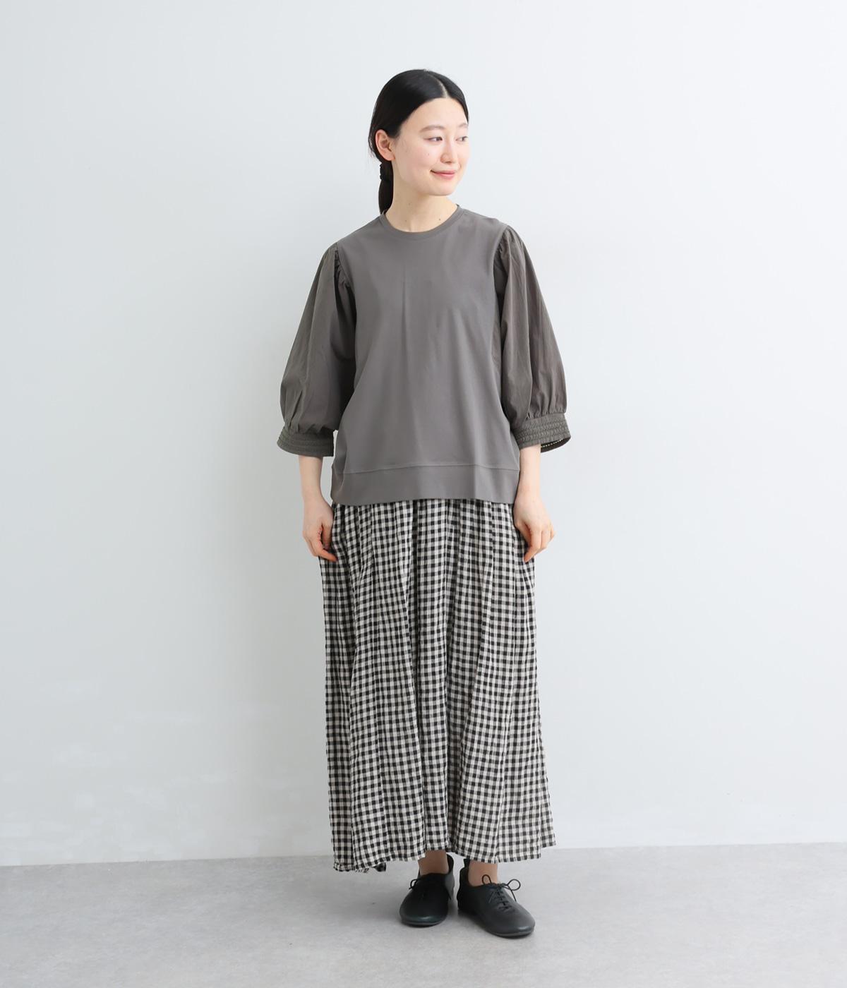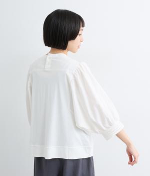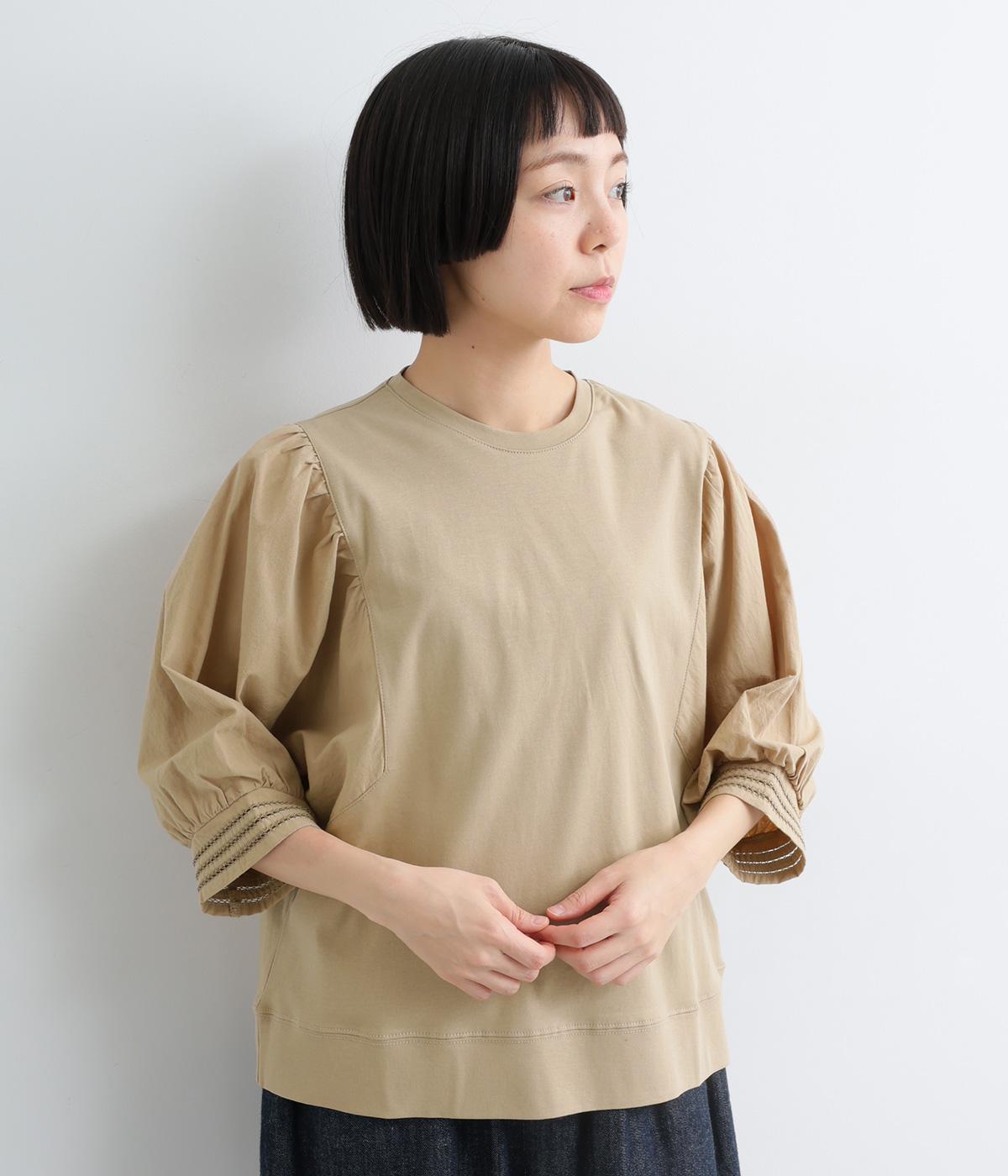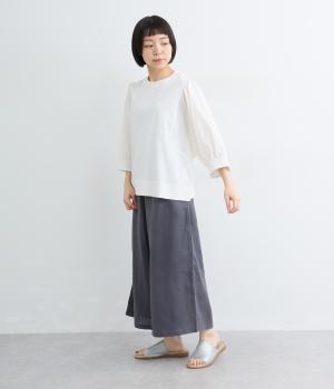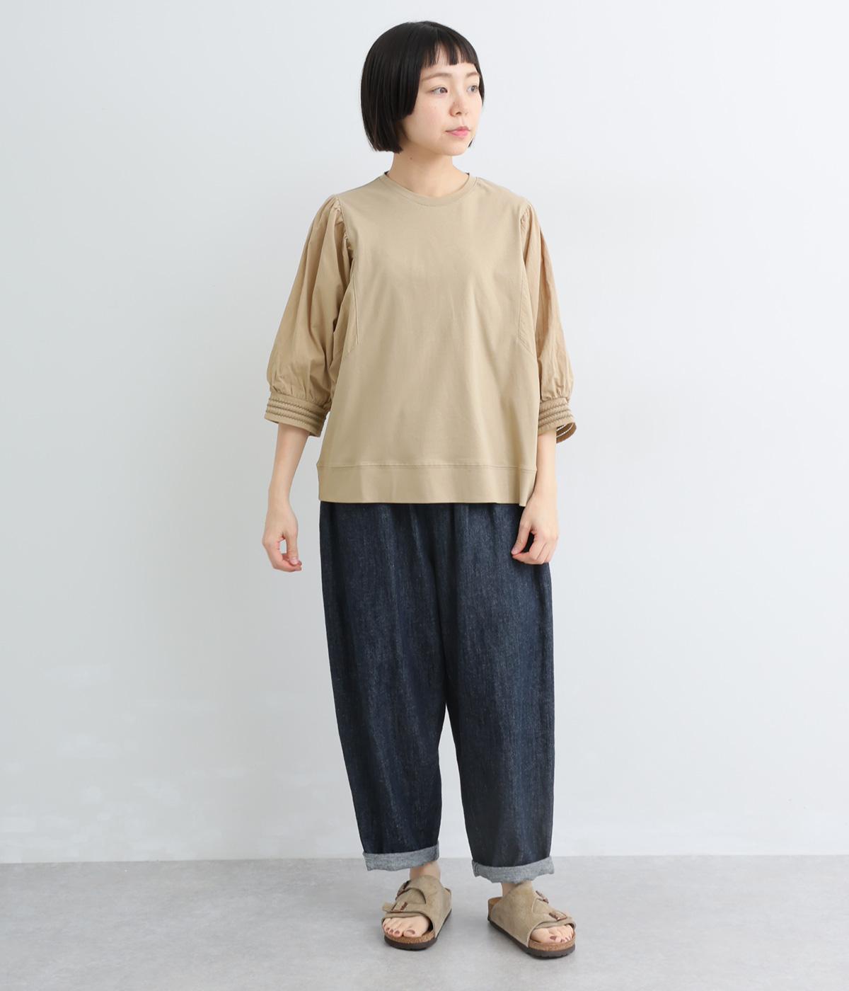 異素材のコントラストが目を惹くプルオーバーです。立体的なドルマンスリーブのボリューム感は、大人のかわいさを引き立てます。ゆとりを持たせたワイドシルエットが着やすく、着膨れしにくいのもポイントに。