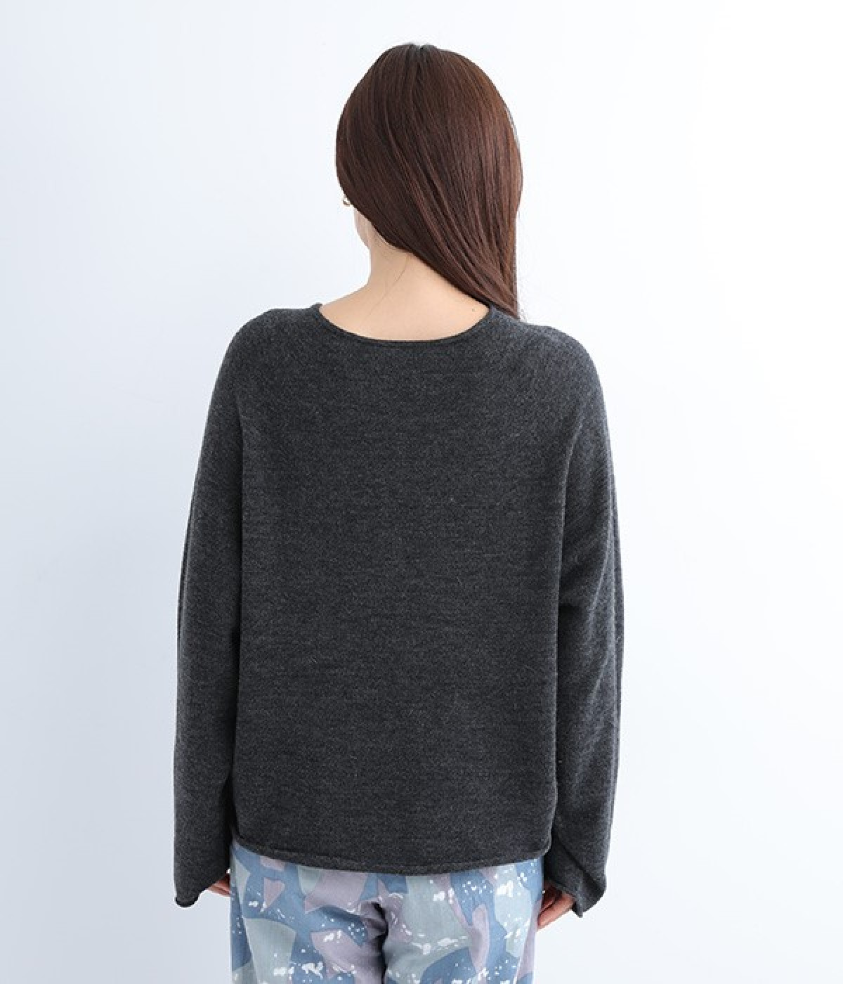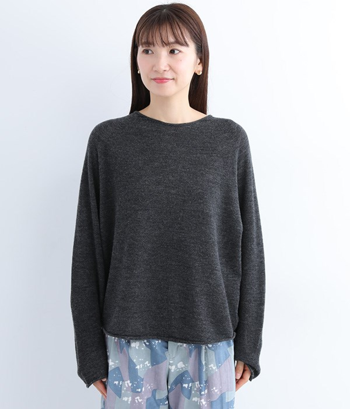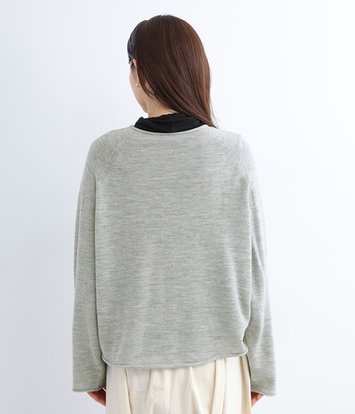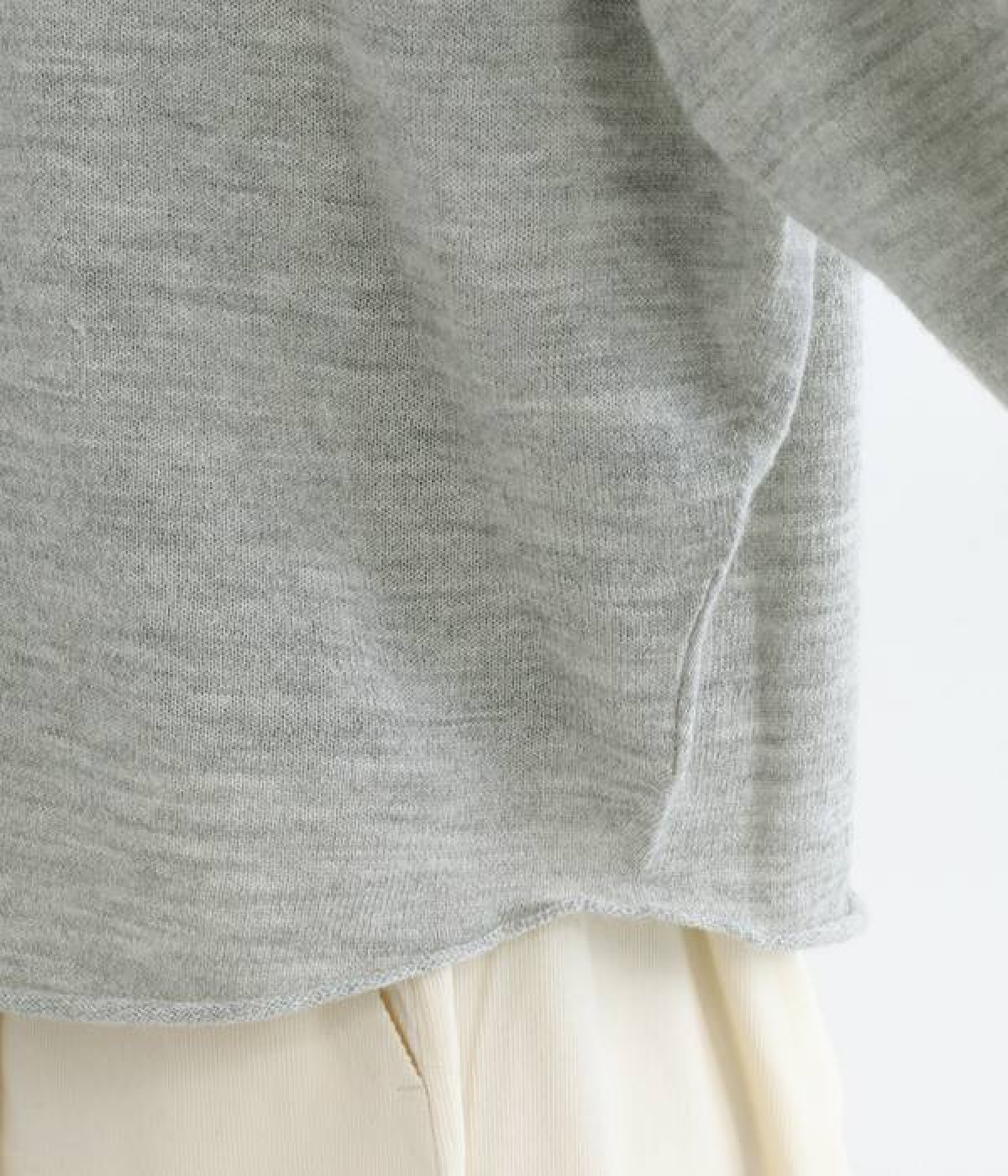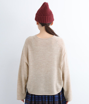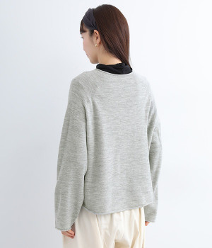 やわらかく繊細なタッチの国産ウールをぜいたくに使用し、丁寧に編み立てたプルオーバー。脇下にたっぷりと余裕を持たせることで、インナー生地のもたつきをおさえてくれます。裾先や袖口はくるんとカールさせてちょっと着慣れた風のアレンジをプラス。着丈は短めにしているため、ワイドなボトムとの合わせでも好バランスで着こなせます。