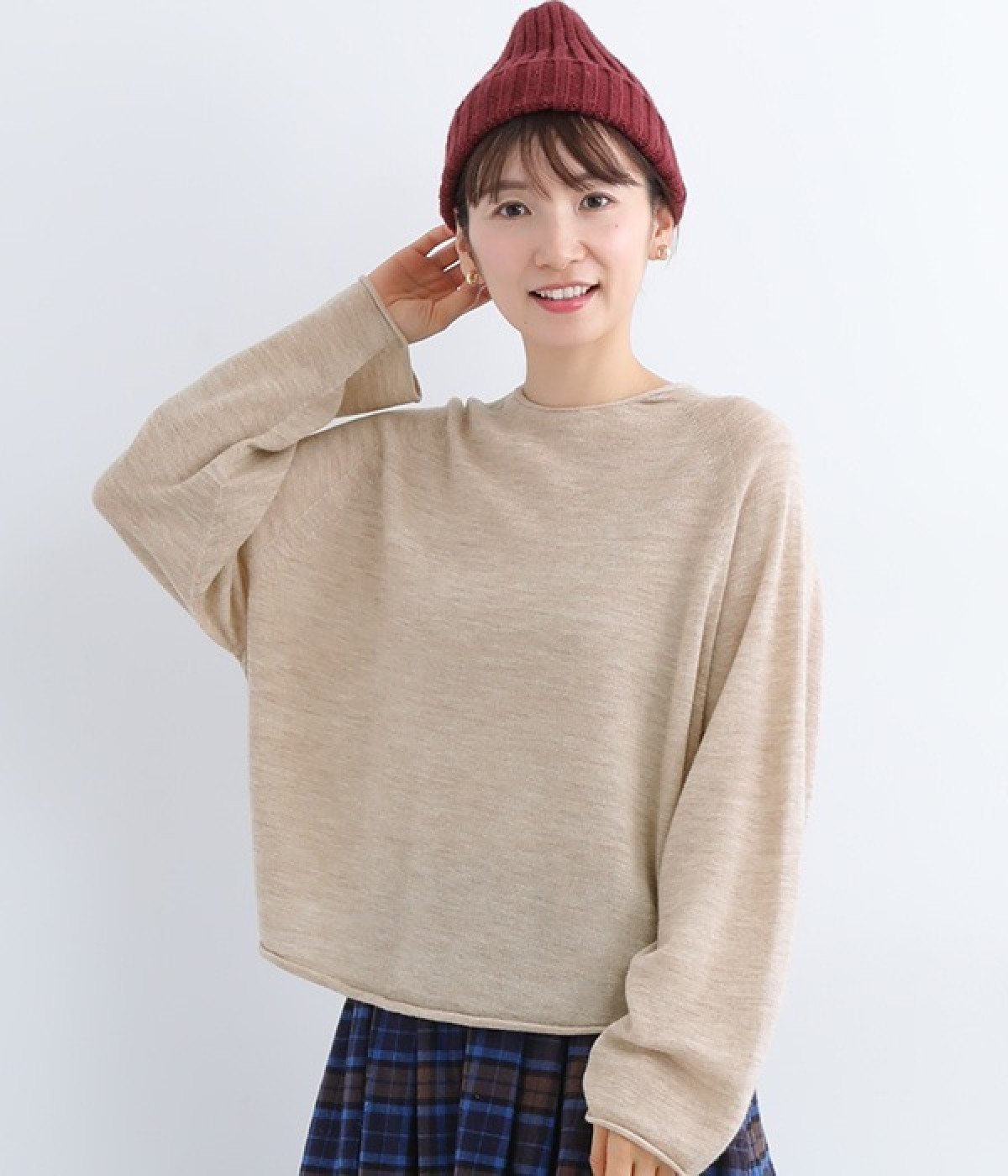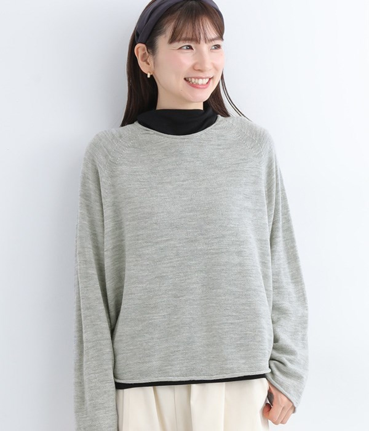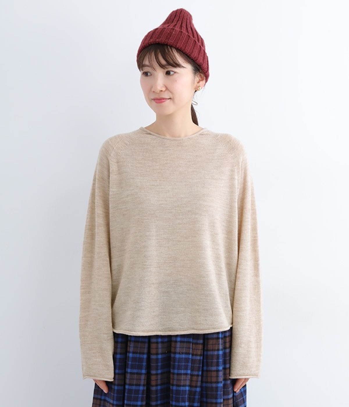やわらかく繊細なタッチの国産ウールをぜいたくに使用し、丁寧に編み立てたプルオーバー。脇下にたっぷりと余裕を持たせることで、インナー生地のもたつきをおさえてくれます。裾先や袖口はくるんとカールさせてちょっと着慣れた風のアレンジをプラス。着丈は短めにしているため、ワイドなボトムとの合わせでも好バランスで着こなせます。