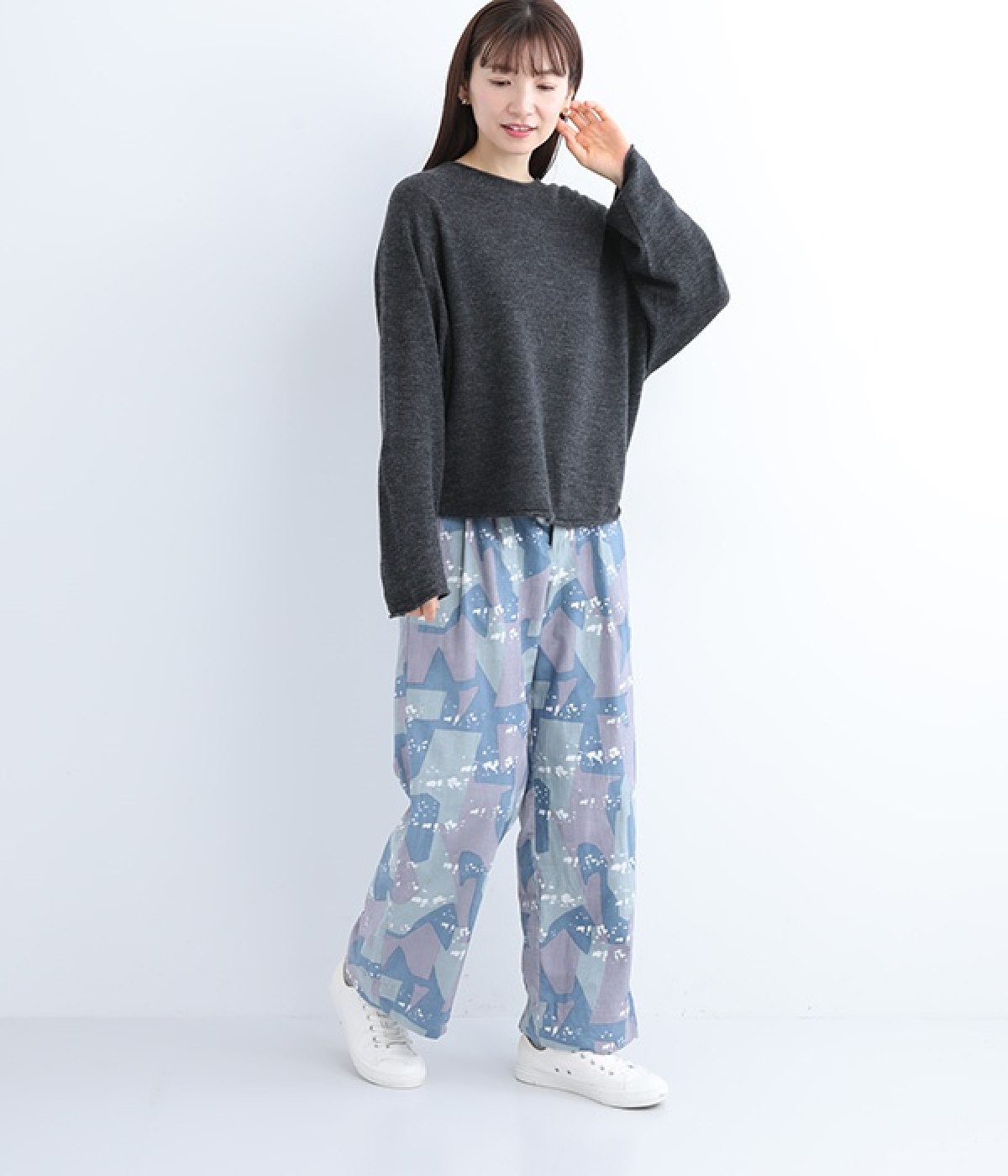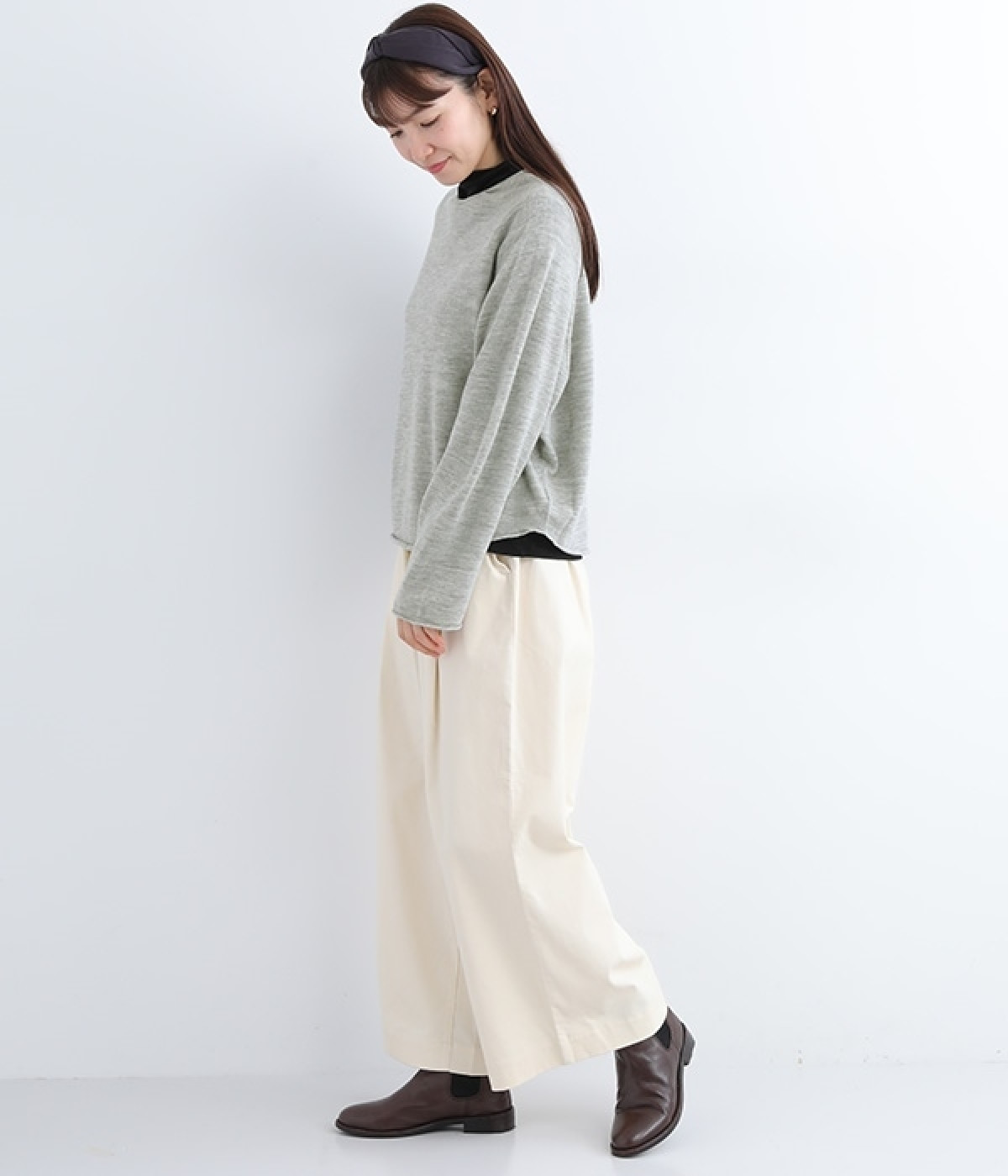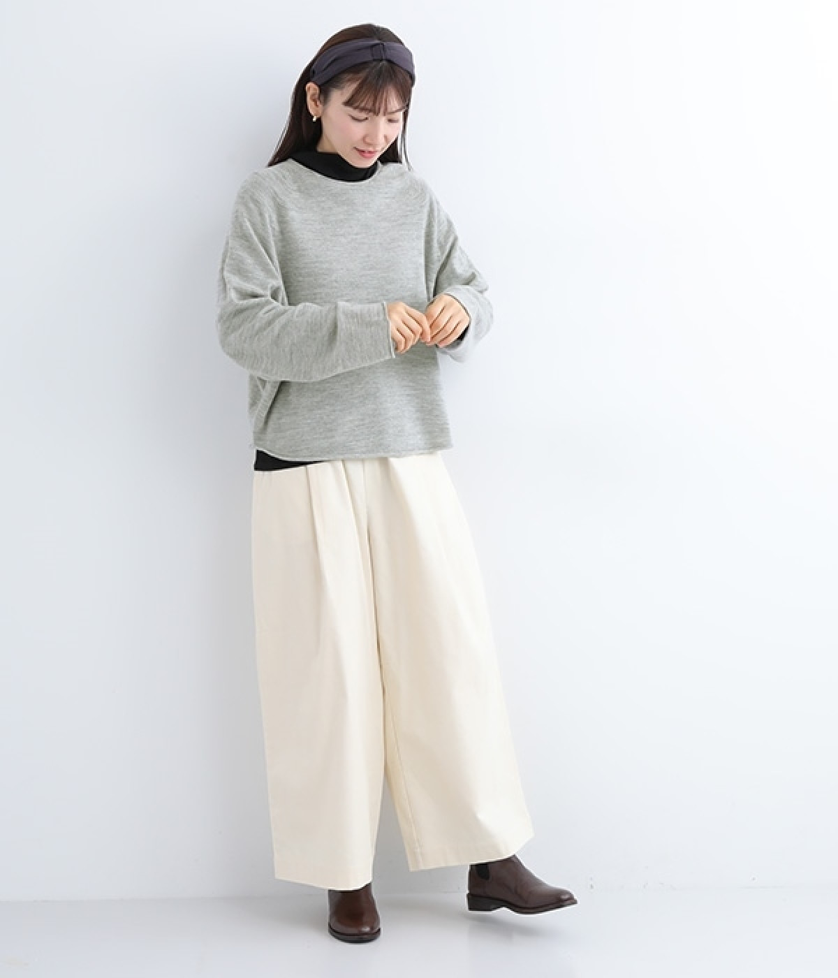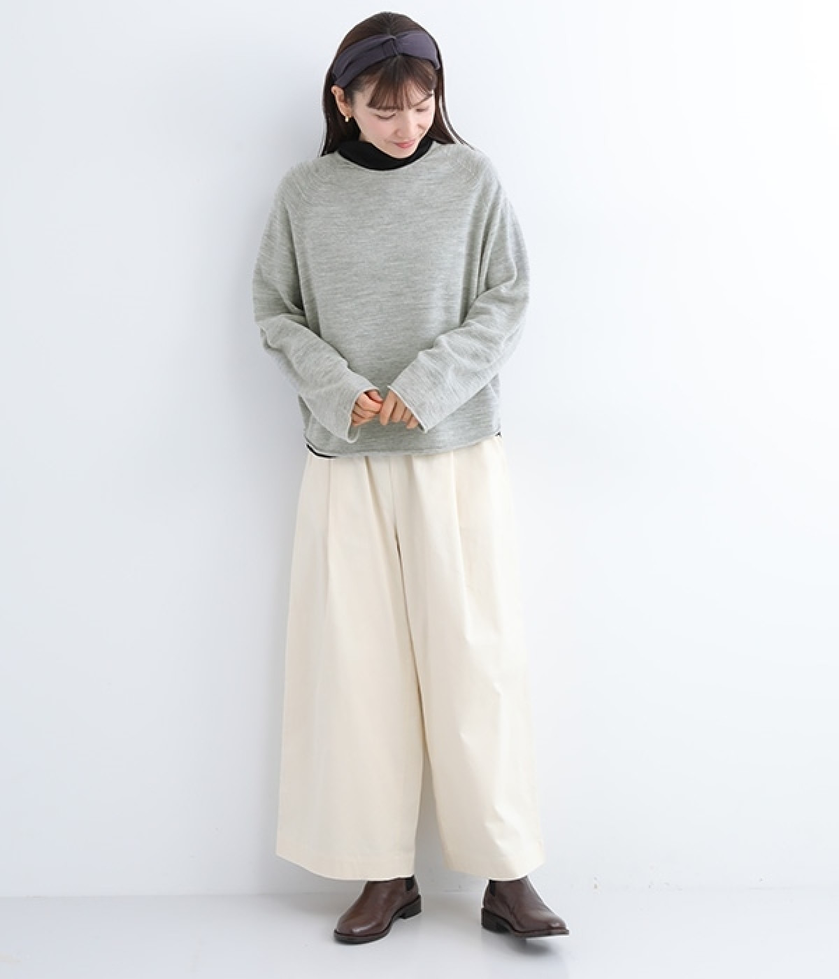 やわらかく繊細なタッチの国産ウールをぜいたくに使用し、丁寧に編み立てたプルオーバー。脇下にたっぷりと余裕を持たせることで、インナー生地のもたつきをおさえてくれます。裾先や袖口はくるんとカールさせてちょっと着慣れた風のアレンジをプラス。着丈は短めにしているため、ワイドなボトムとの合わせでも好バランスで着こなせます。