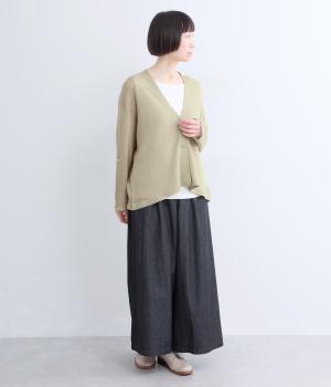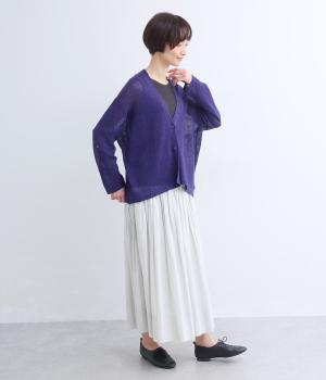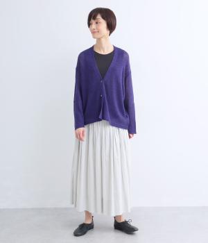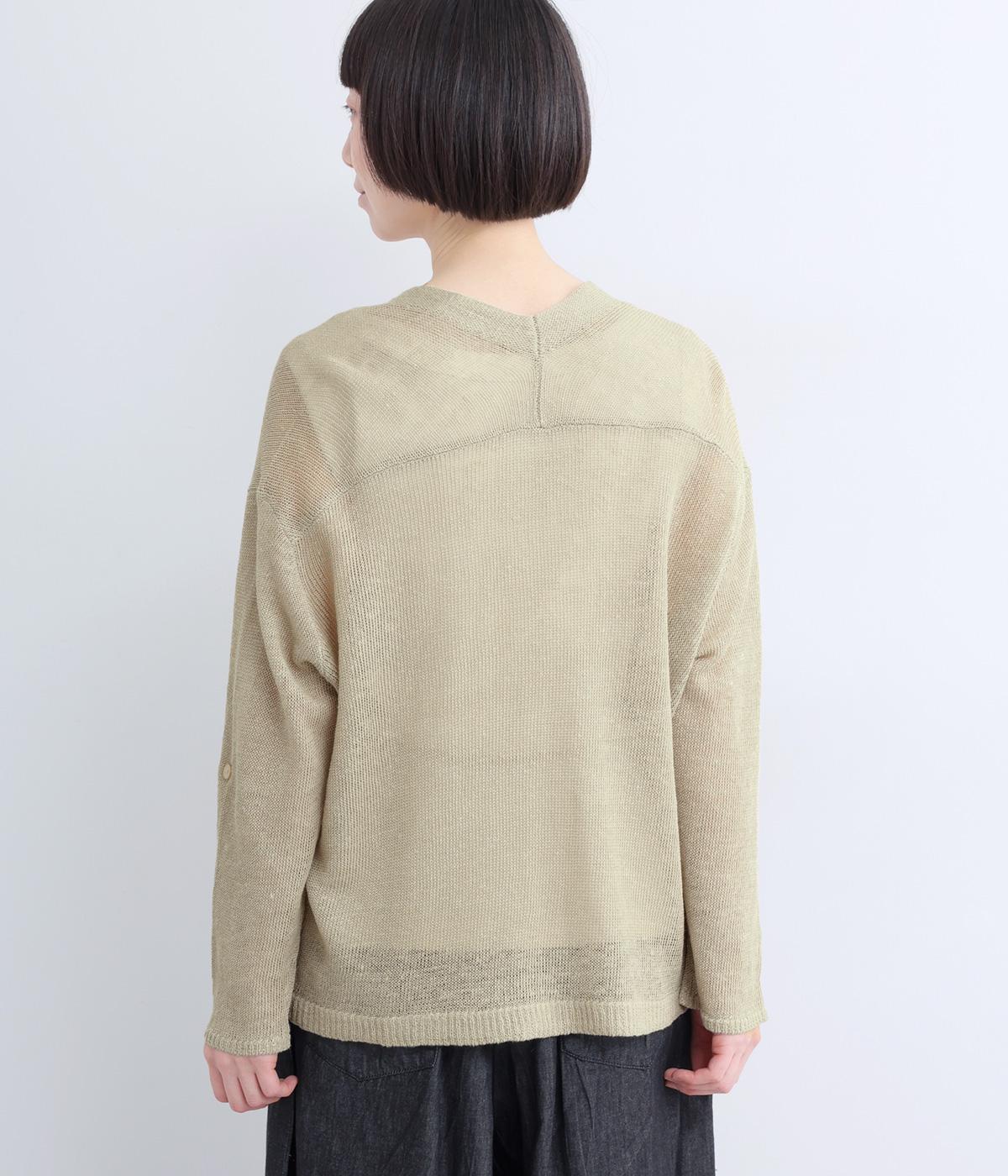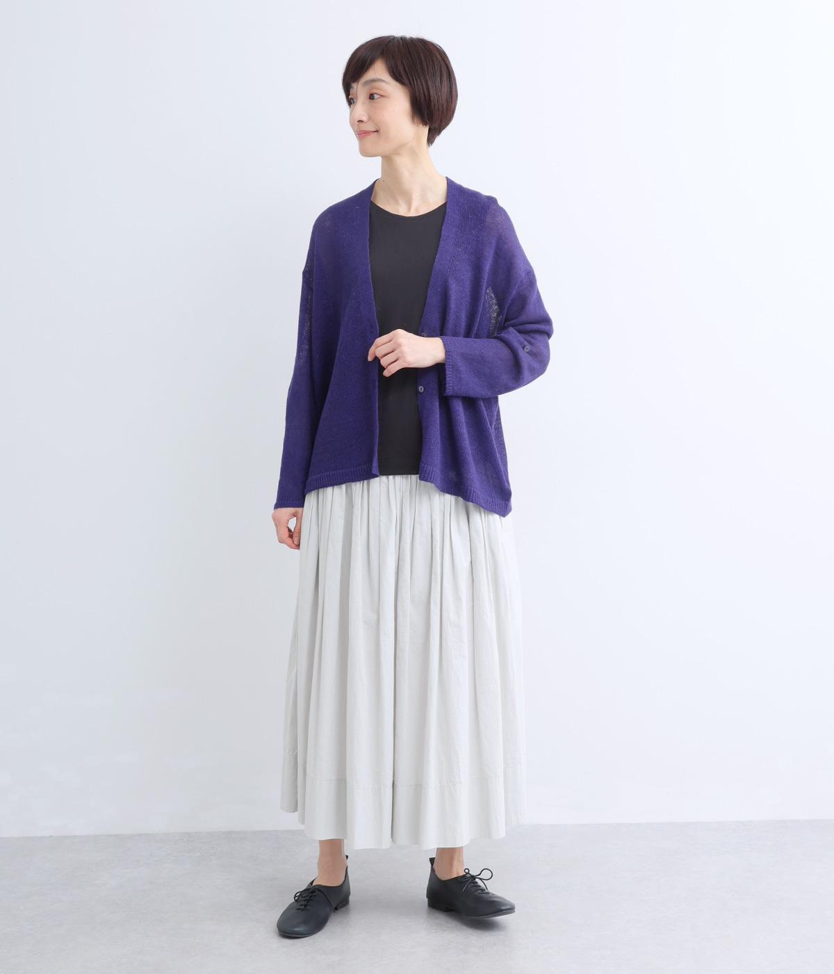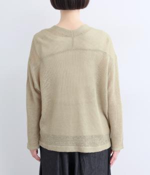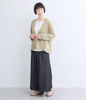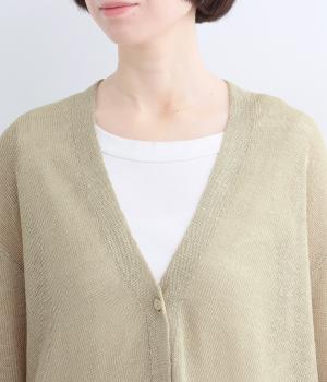 フレンチリネンならではのシャリ感が、さらりと心地よいニット生地です。甘く編み立てることで、やわらかく体になじむ軽やかな仕上がりに。ほどよい透け感と、ところどころに見えるネップが、素材の風合いを引き立て、涼やかな印象を添えます。