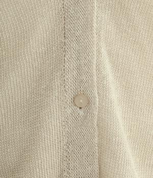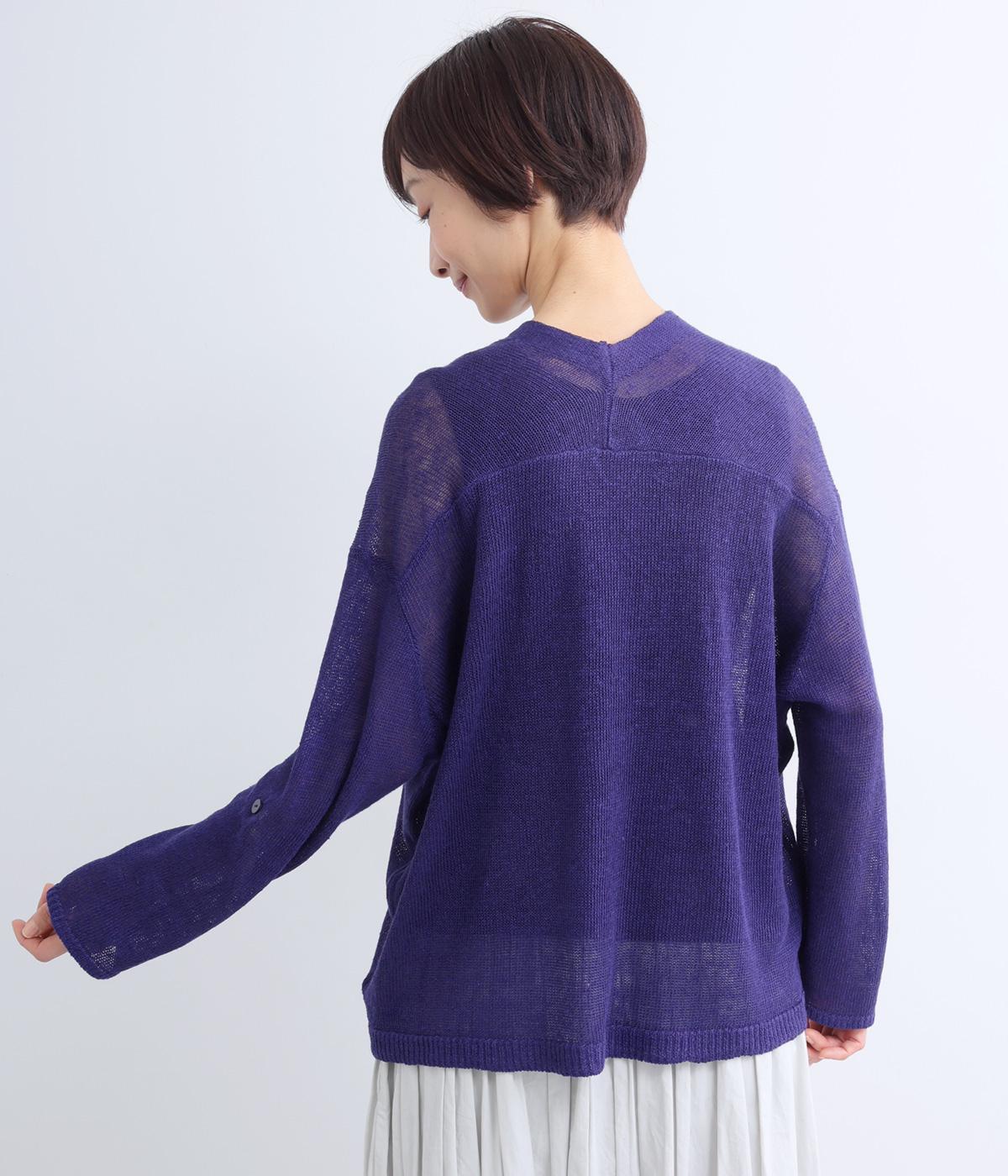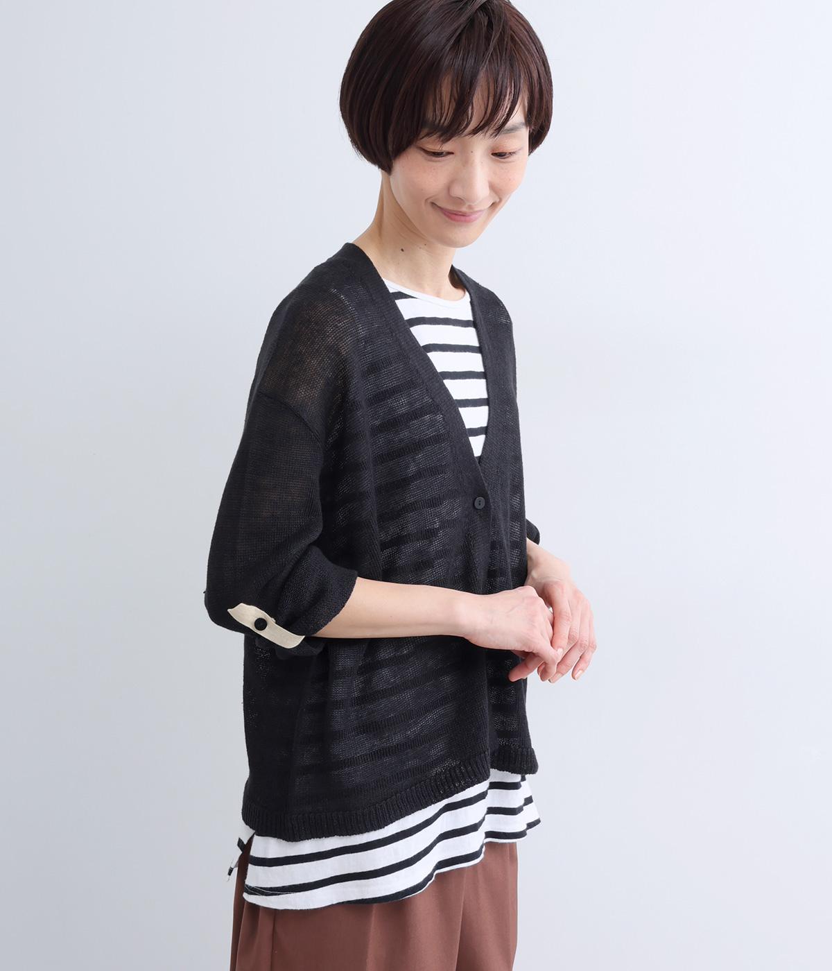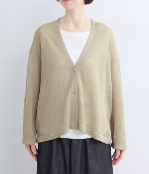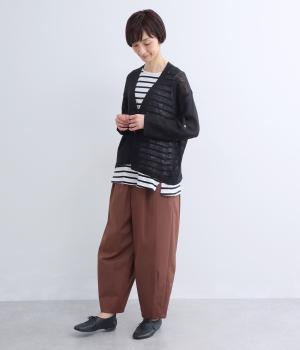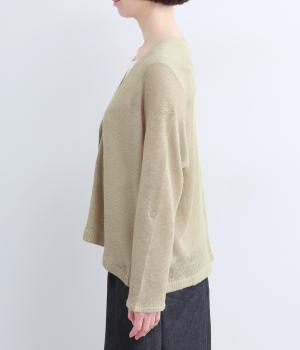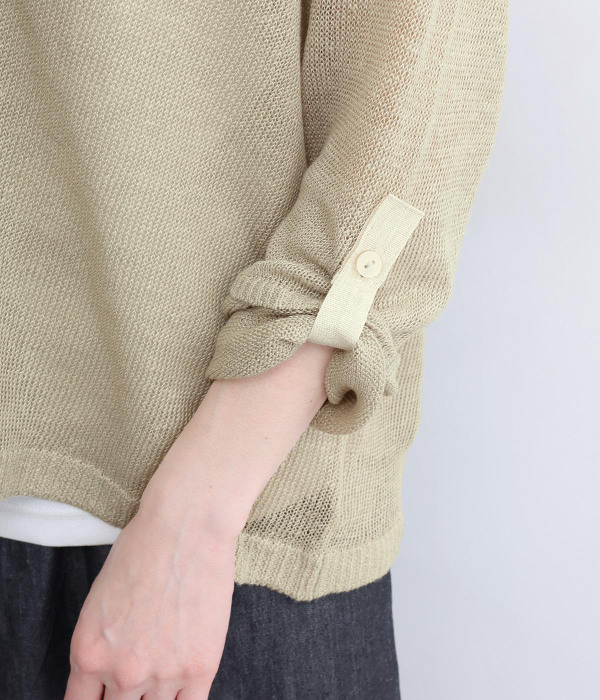 フレンチリネンならではのシャリ感が、さらりと心地よいニット生地です。甘く編み立てることで、やわらかく体になじむ軽やかな仕上がりに。ほどよい透け感と、ところどころに見えるネップが、素材の風合いを引き立て、涼やかな印象を添えます。
