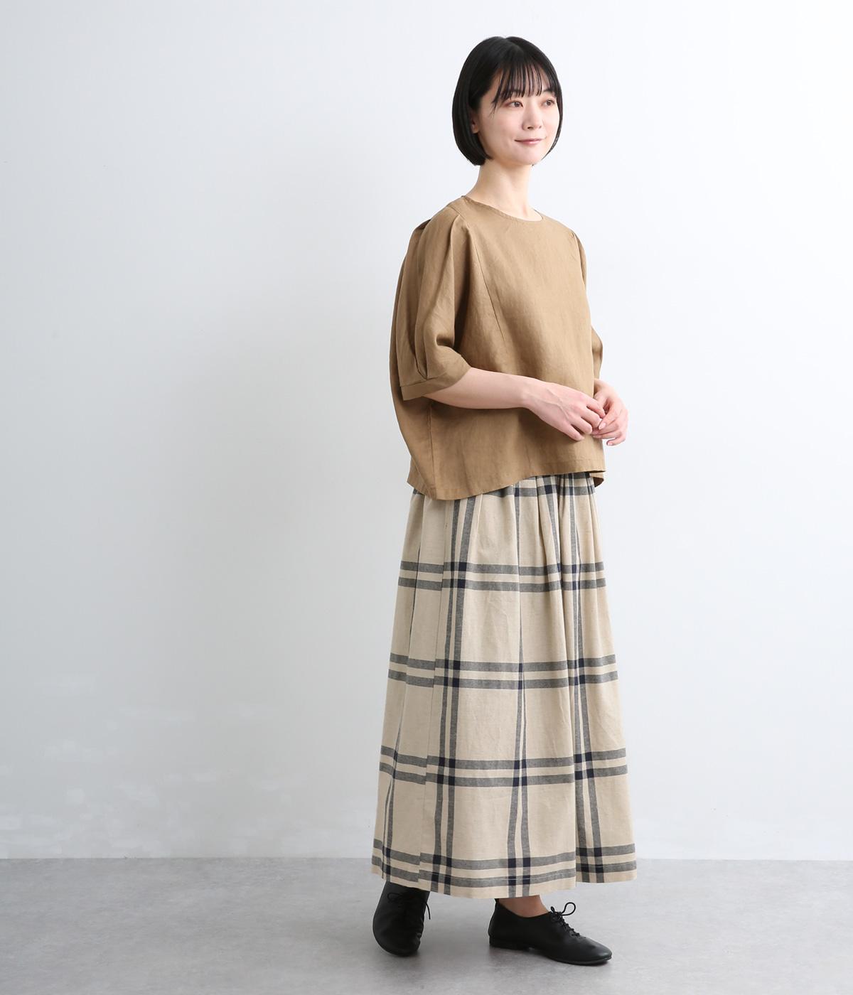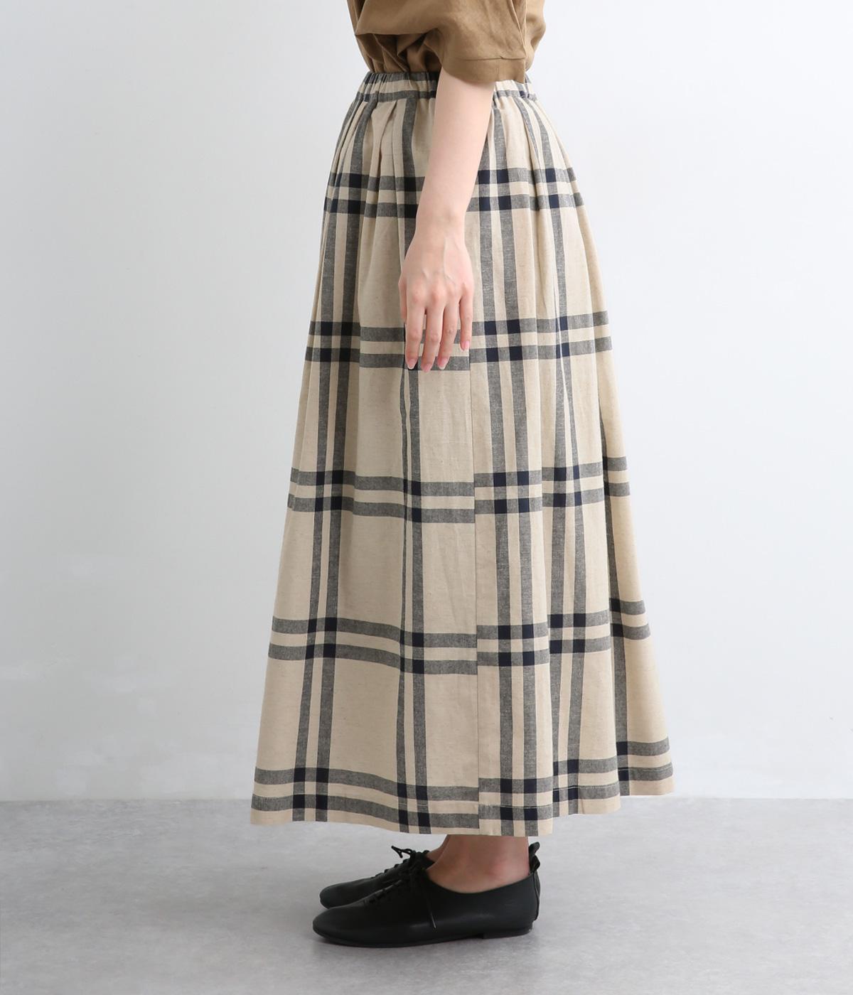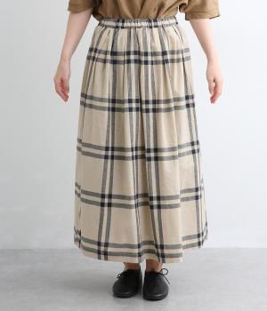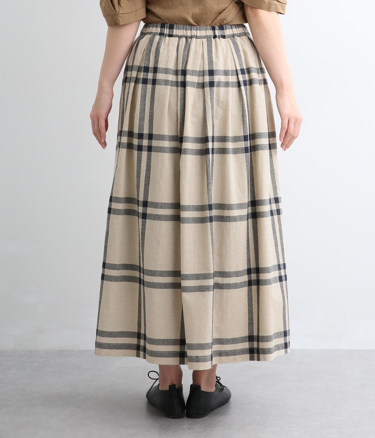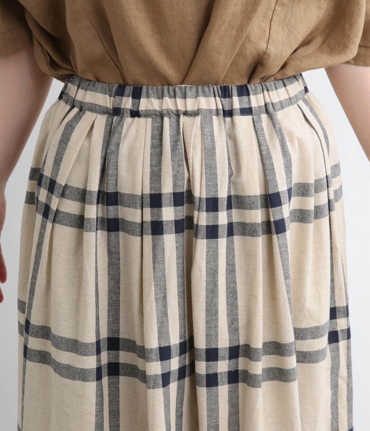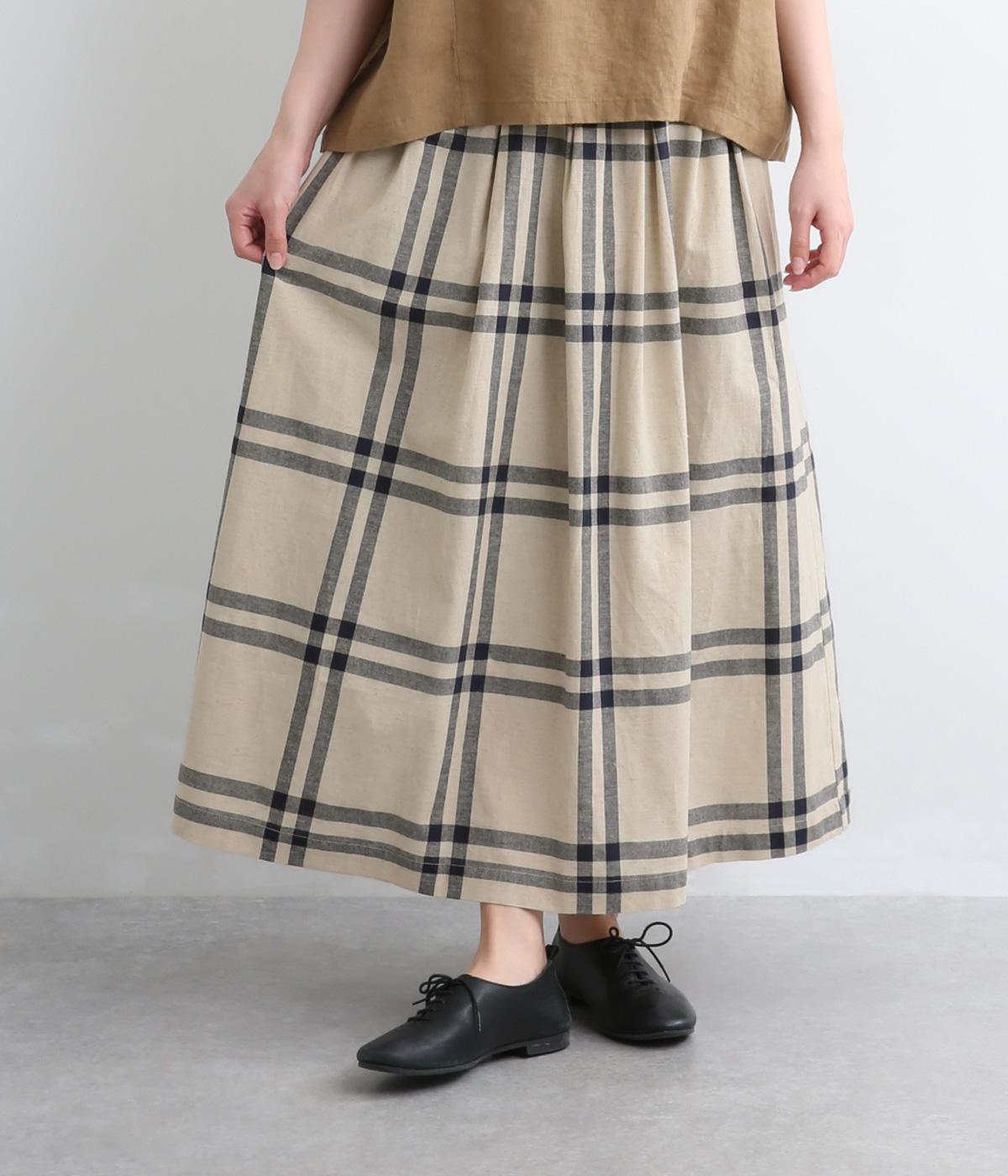 ナチュラルな配色のチェック柄が、装いにやさしいアクセントを添えるスカートです。タックによって生まれるふんわりとしたフレアラインが、動くたびに軽やかな表情を演出します。ほどよいボリューム感で体のラインを拾いにくいのも◎。シンプルなコーディネートにも映える一枚です。