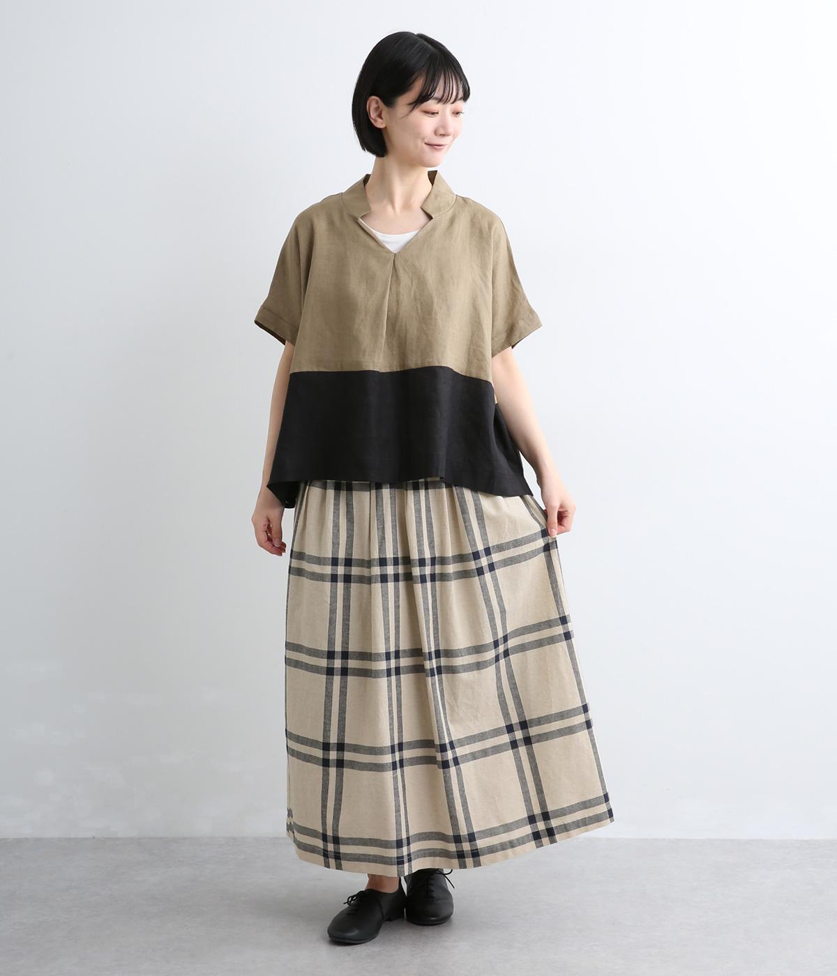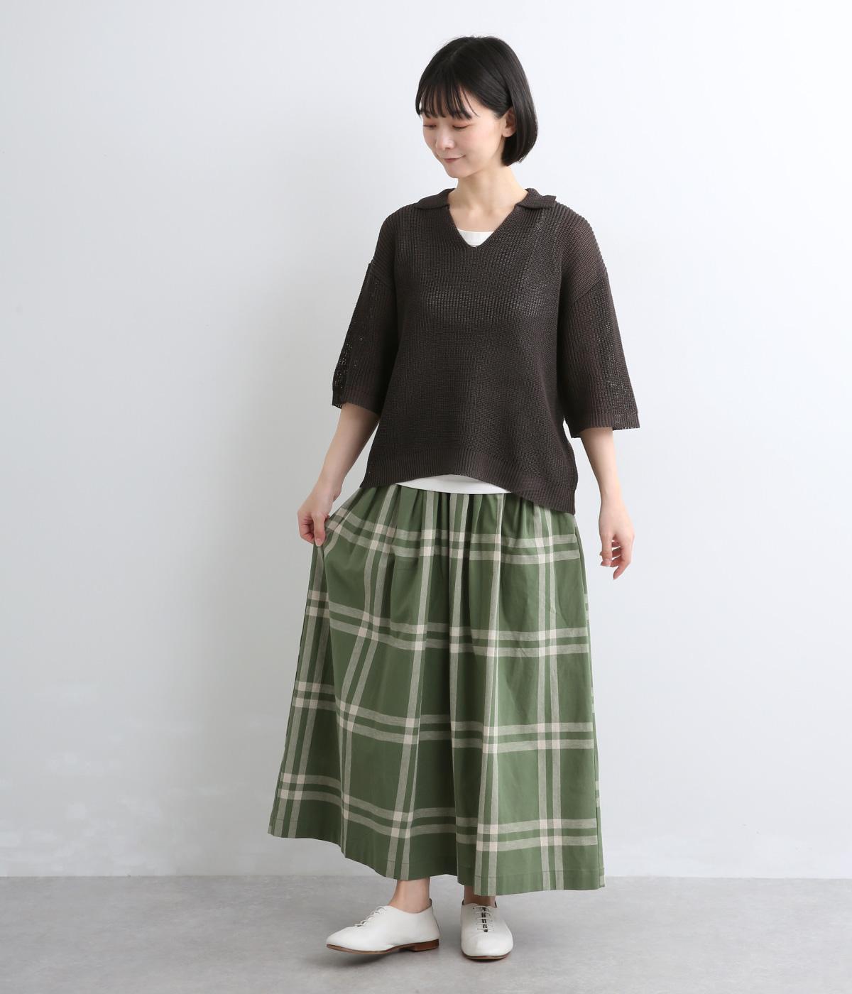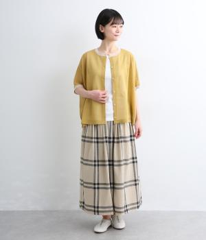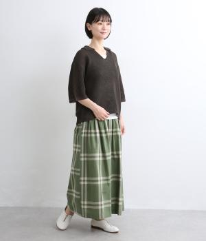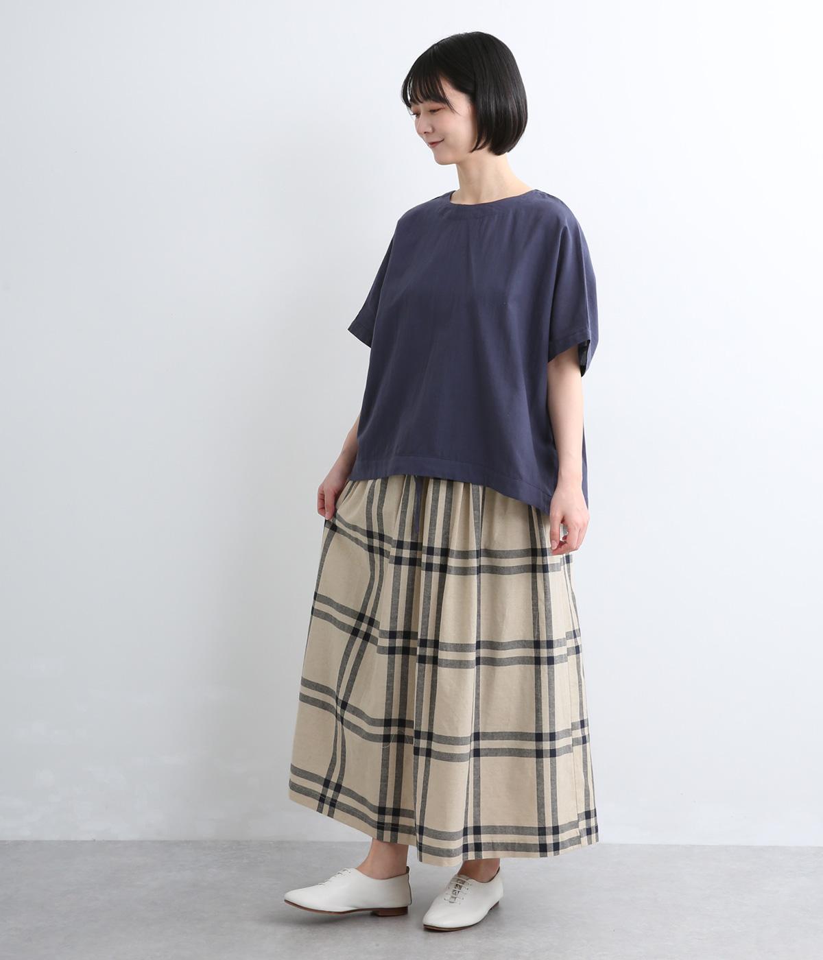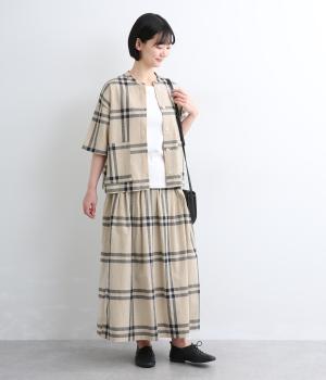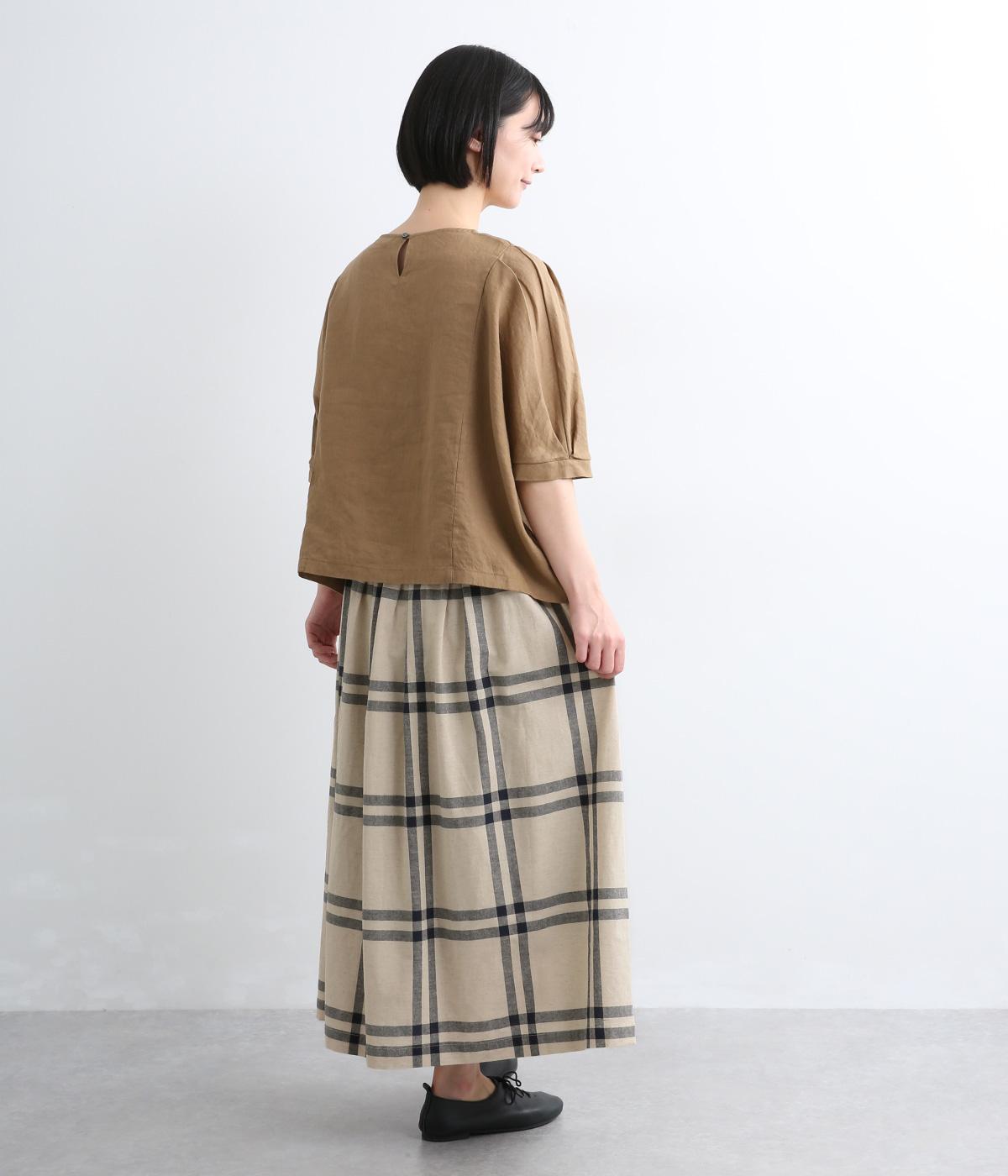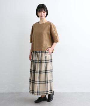 ナチュラルな配色のチェック柄が、装いにやさしいアクセントを添えるスカートです。タックによって生まれるふんわりとしたフレアラインが、動くたびに軽やかな表情を演出します。ほどよいボリューム感で体のラインを拾いにくいのも◎。シンプルなコーディネートにも映える一枚です。