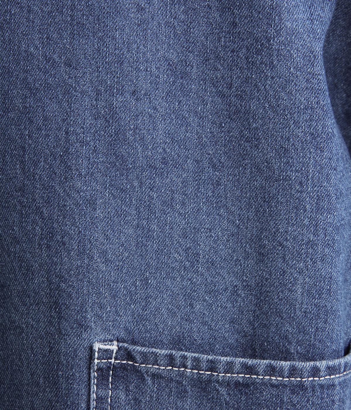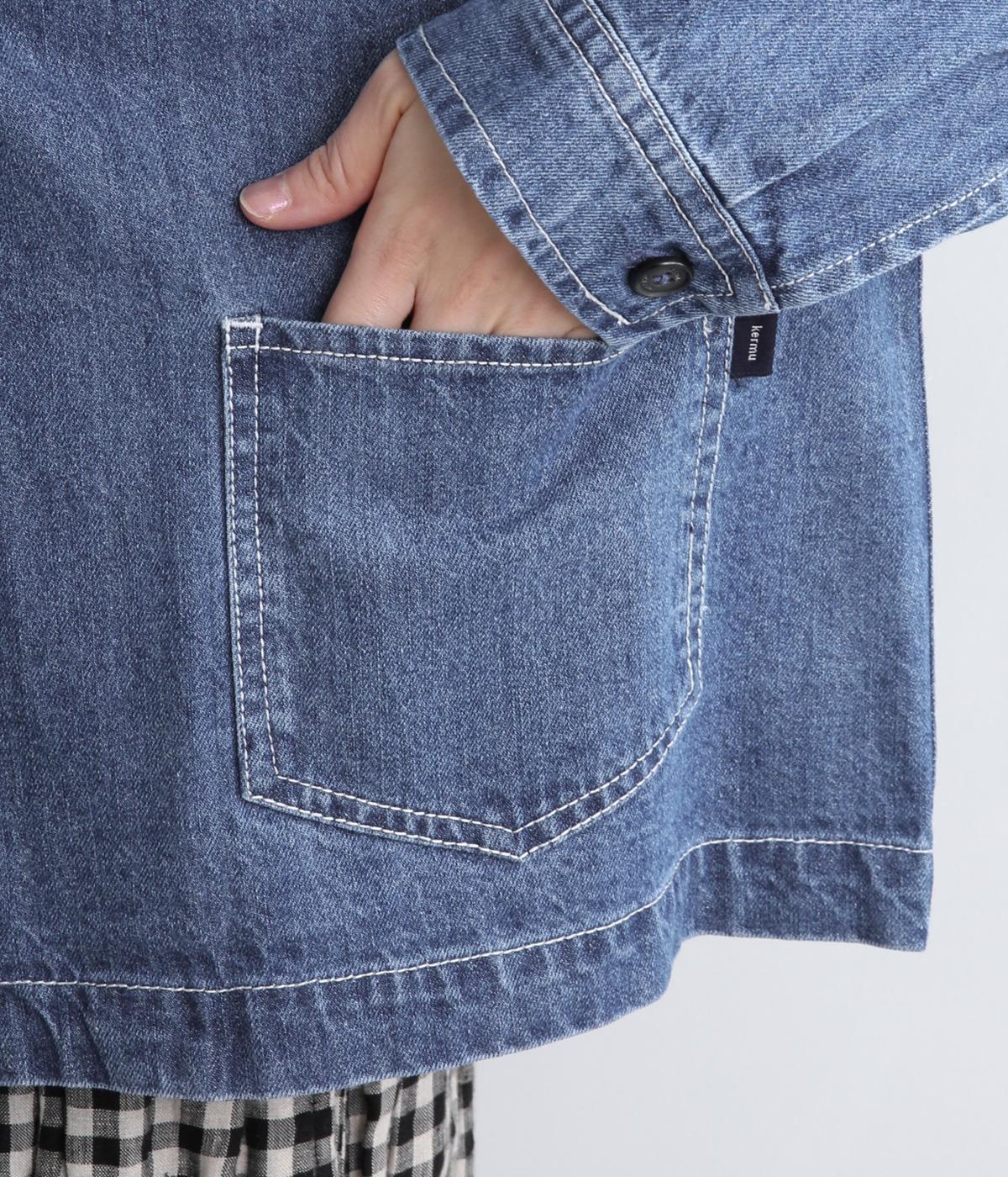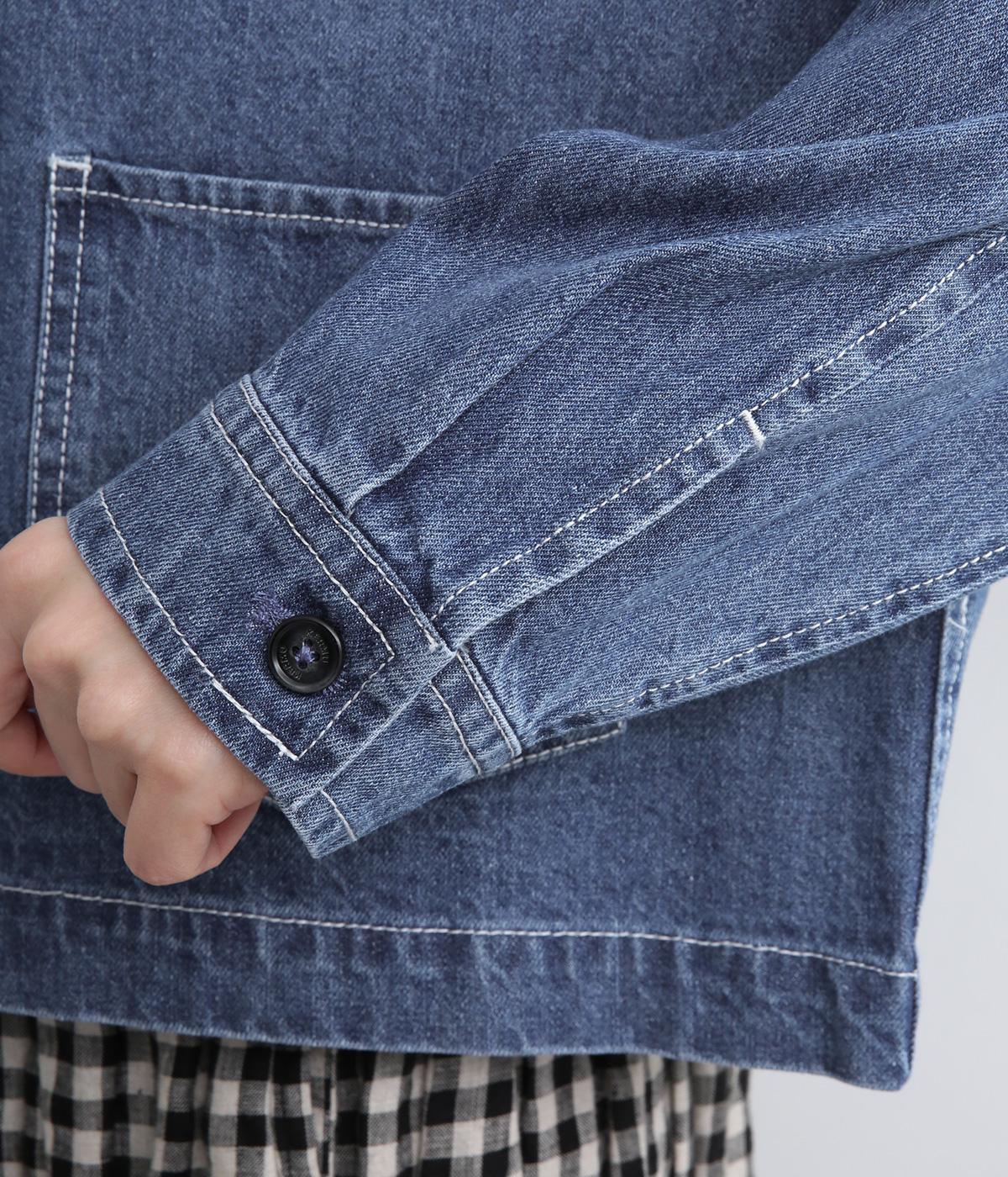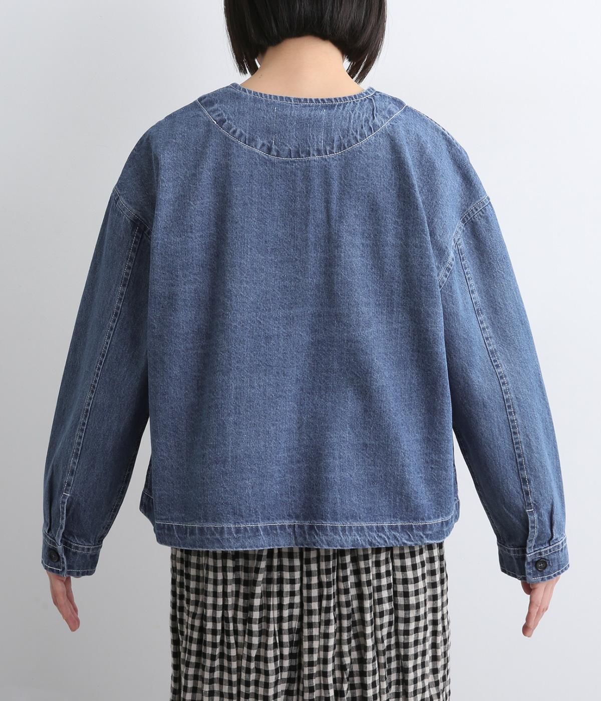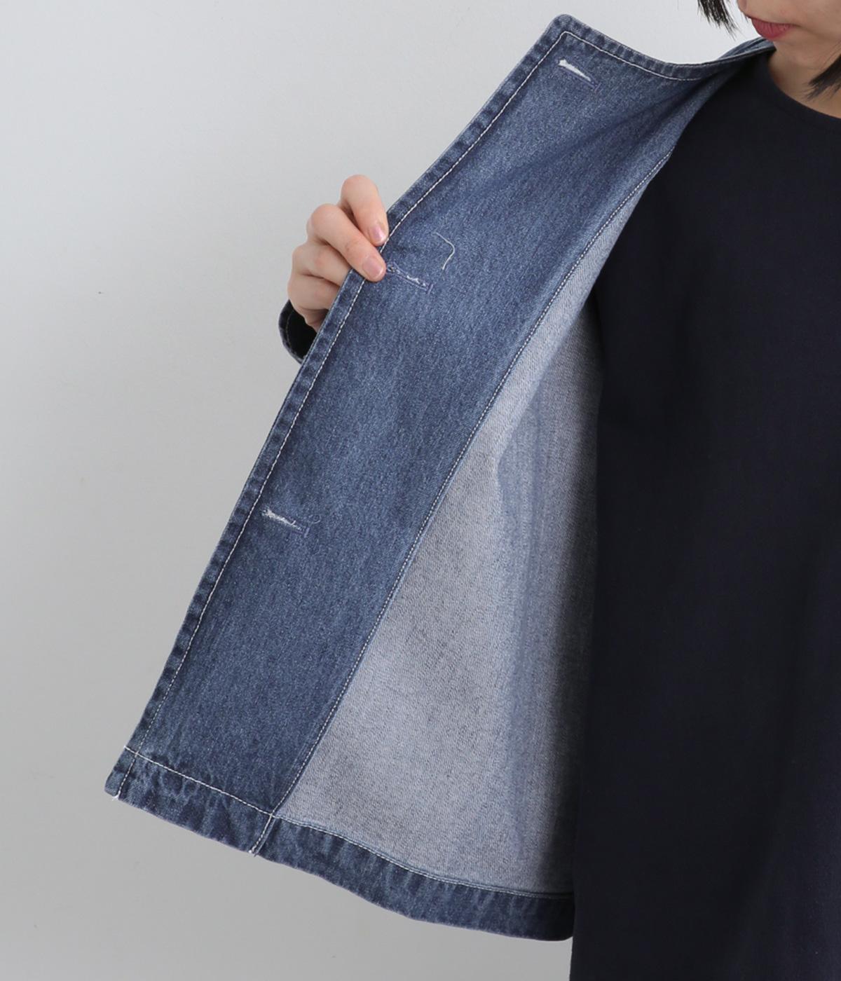 デニムのしっかりとしたタフさを残しながらも着用初期から羽織りやすいようやわらかに仕上げました。着まわしやすい中厚手生地で、ブルーとインディゴは経年変化もたのしみのひとつ。