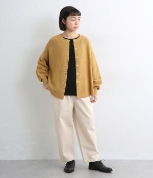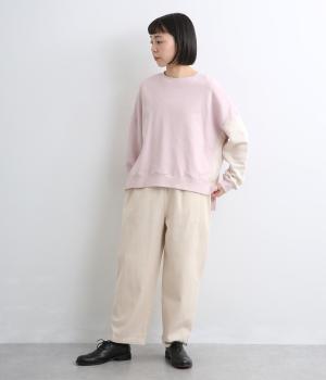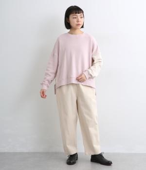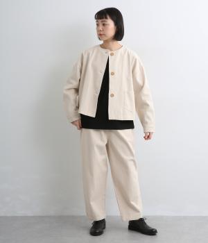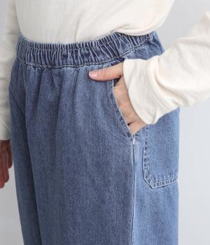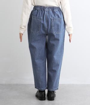 腰まわりはふっくらと心地よいゆとりを持たせ、裾に向かってすっきり仕上げたテーパードパンツ。大きめのヒップポケットをポイントにしたシンプルなデザインで着まわし力も抜群。ウエストは総ゴム&調整紐入りのイージー仕様。