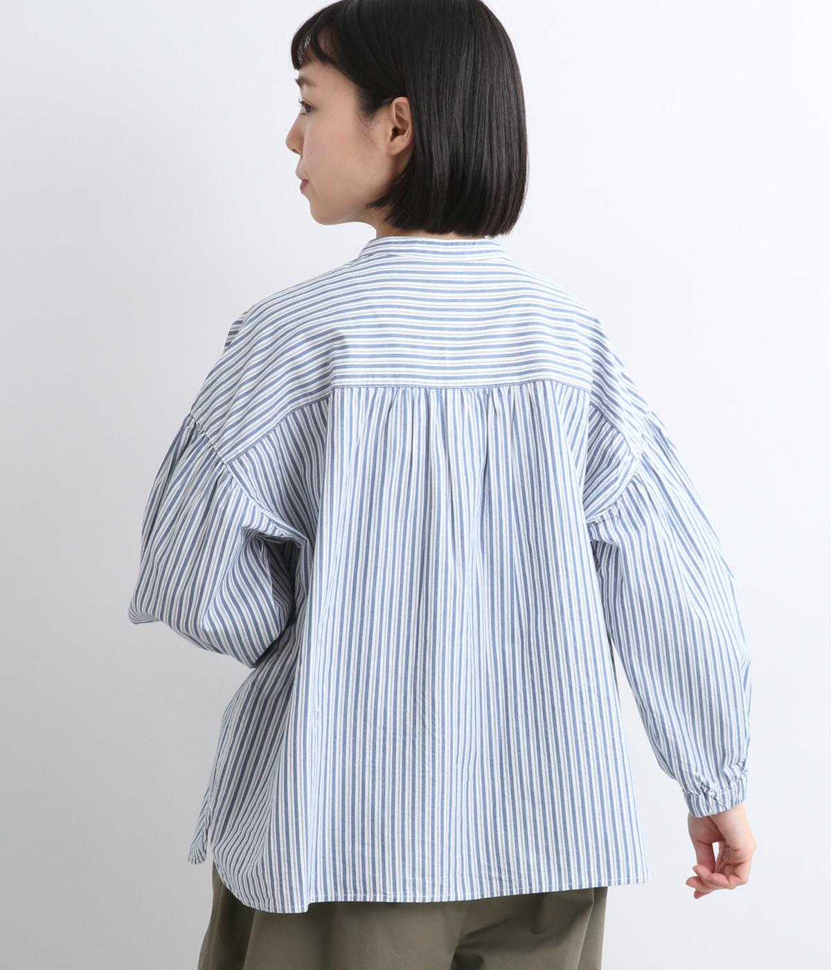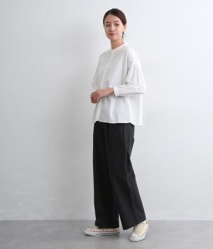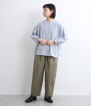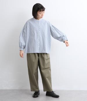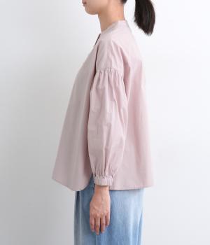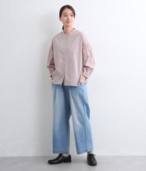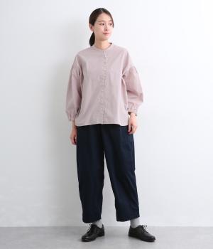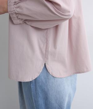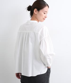 ギャザーを寄せたボリューム袖は、袖口ゴム入りでたくし上げのアレンジも◎。手法を変えたボタン配置もポイントで、さり気なくこだわりが詰まっています。ヘムラインはゆるやかにラウンドさせてボトム合わせもイージーに。