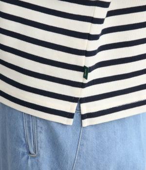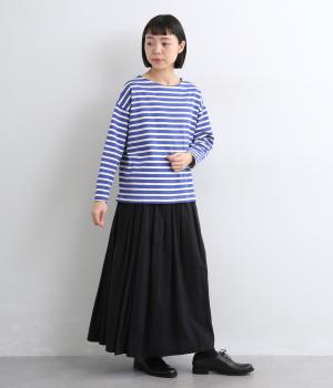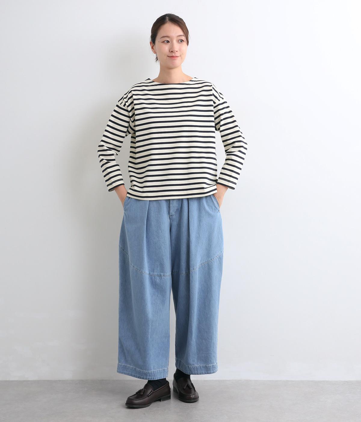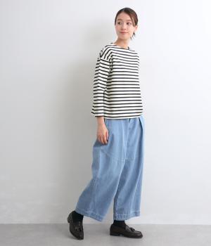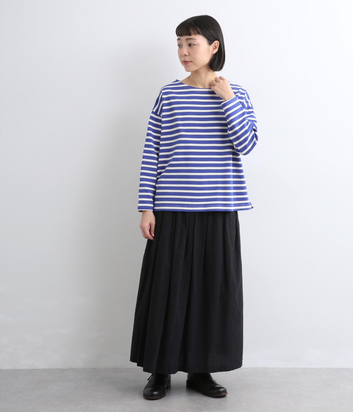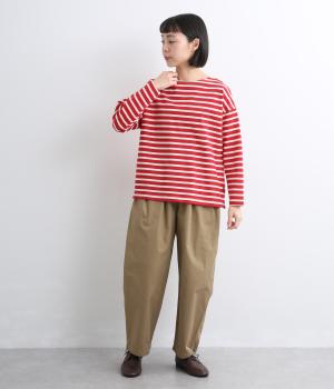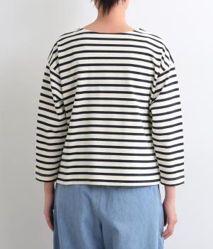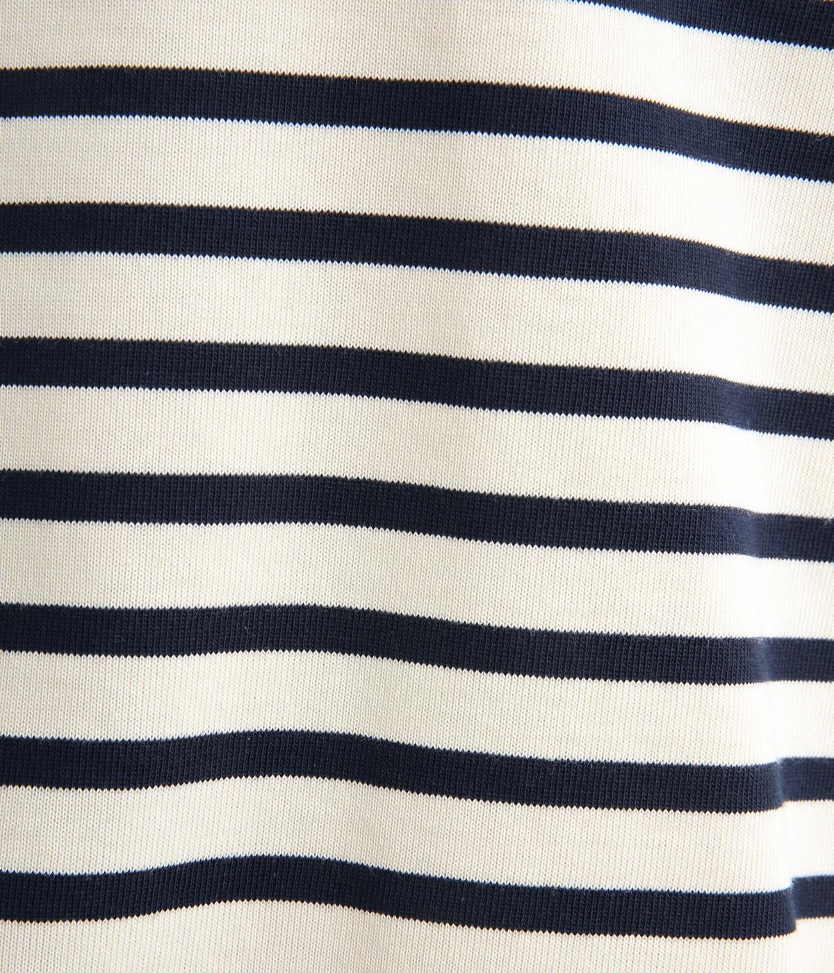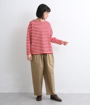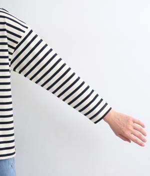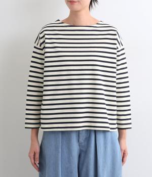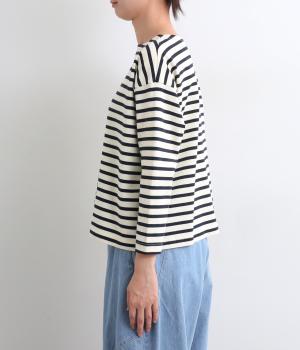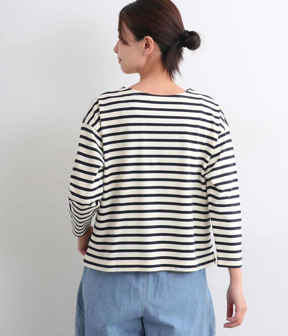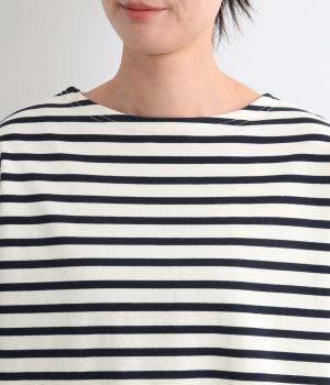 大人のカジュアルスタイルに欠かせないボーダー柄カットソー。肩のラインをやわらかく見せるドロップショルダーにゆとりのある身幅がこなれ感を与え、襟ぐりや袖口のすっきりとした抜け感も好ポイントです。
