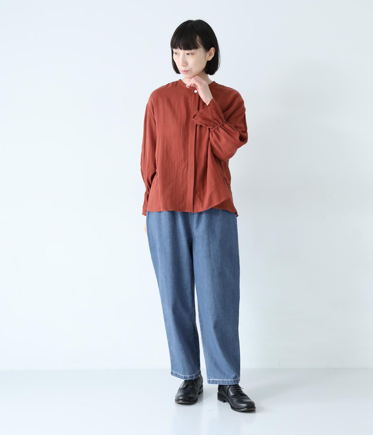 軽めの質感が特徴のコットン9ozデニム。季節を問わずにデイリーに着まわせるのが魅力です。ラフな印象になりすぎない適度なハリ感と、ここちよい着用感を叶えるやわらかさを兼ね備えています。
