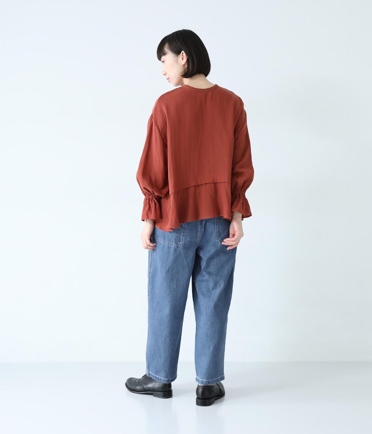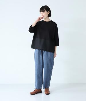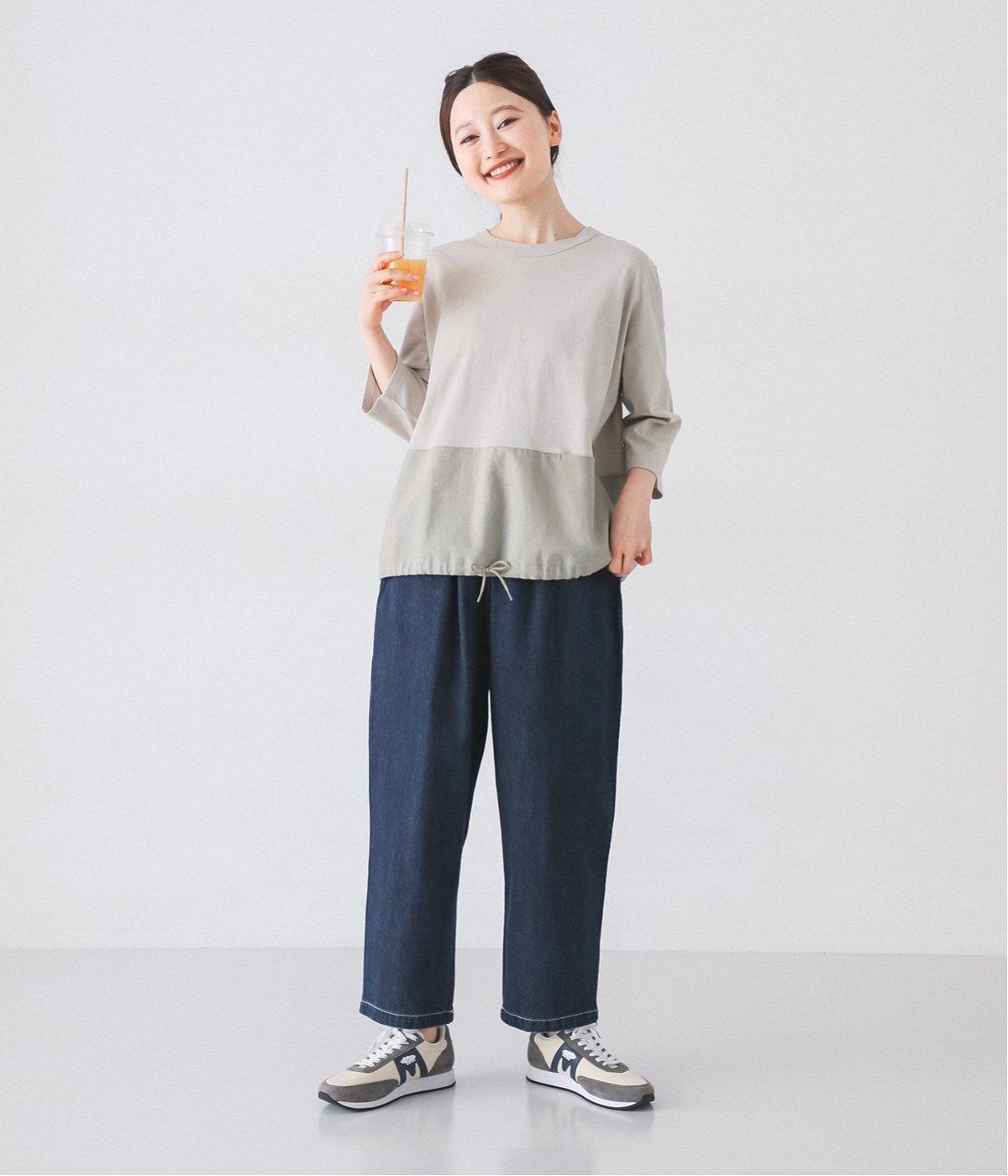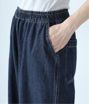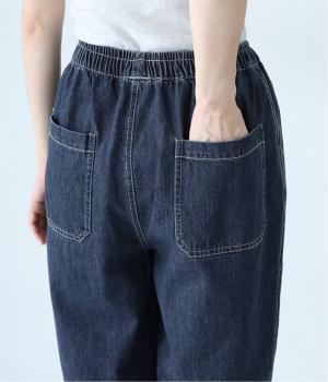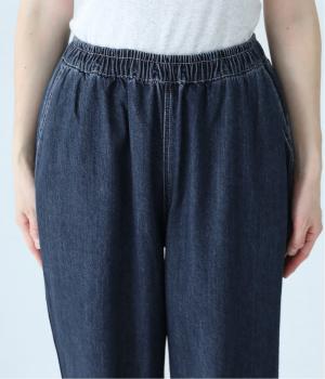 腰から太ももにかけてゆとりを持たせた、リラックスしたはき心地のコクーンパンツ。裾はきゅっと細くしてすっきりと仕上げています。ステッチをきかせたヒップポケットがカジュアルなアクセントに。ウエストは総ゴム仕様で、フィット感を高める内紐つきです。