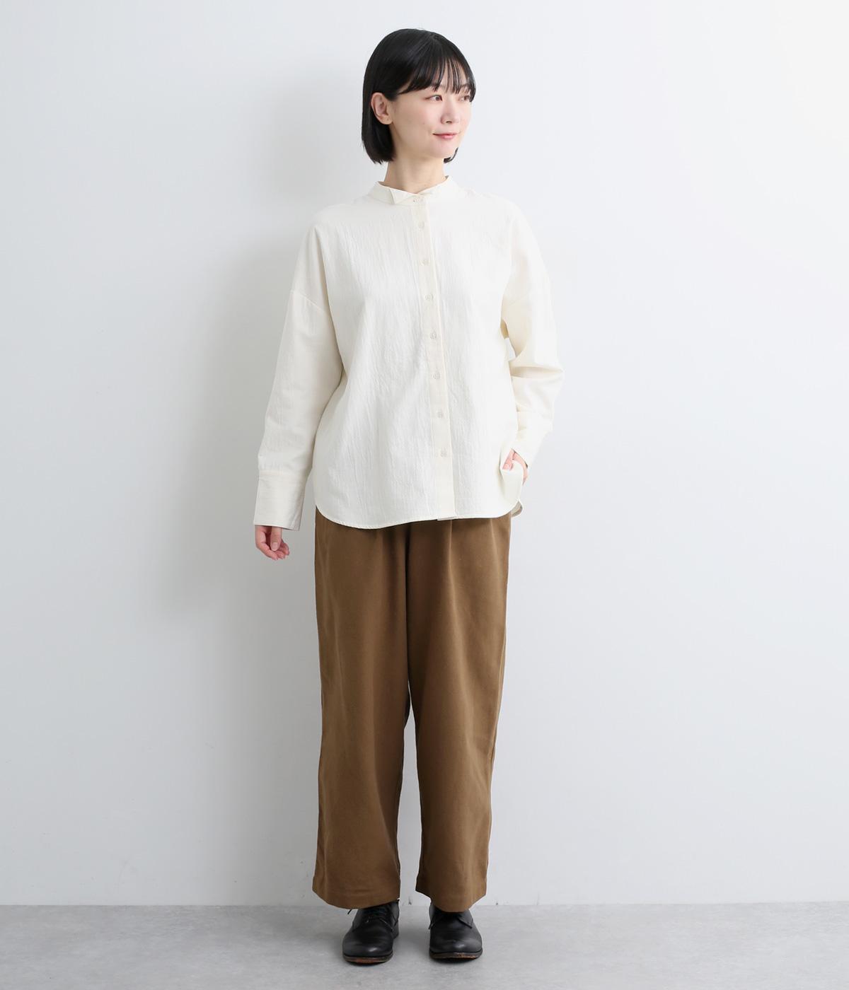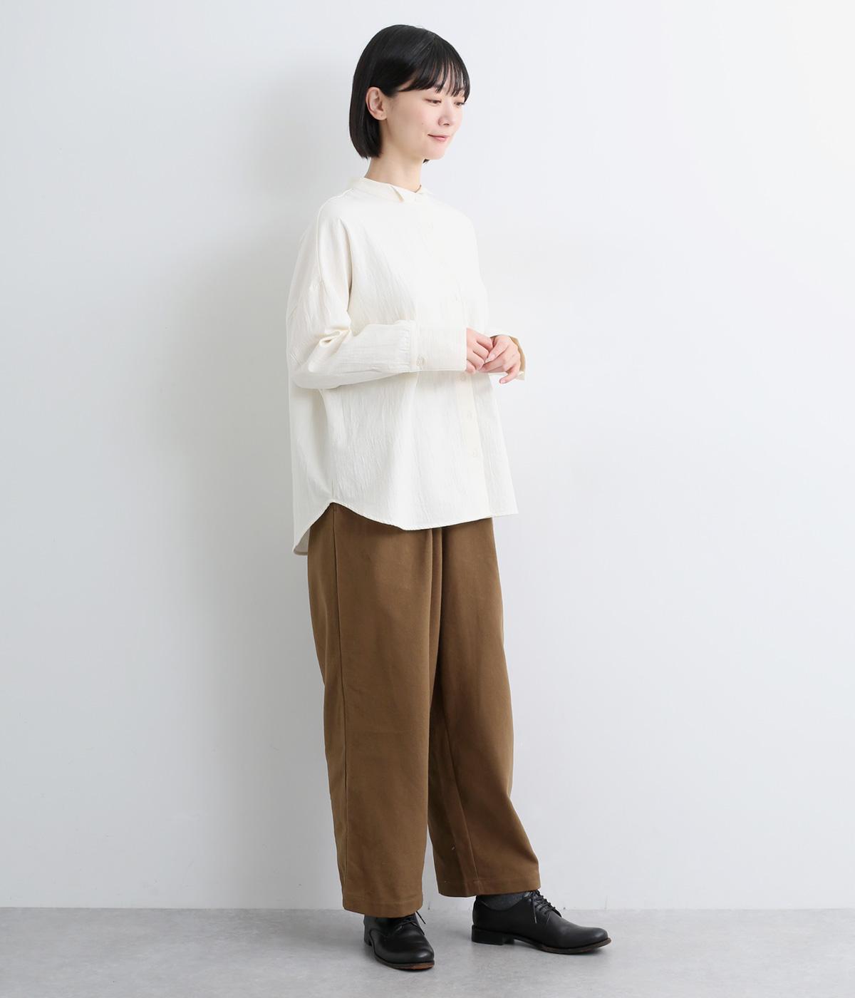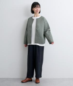 ふっくらとした起毛感とハリの少ないやわらかな風合いで、あたたかくストレスフリーな着用感を叶えるコットン生地。見た目にも上品さと季節感を添えてくれます。