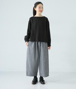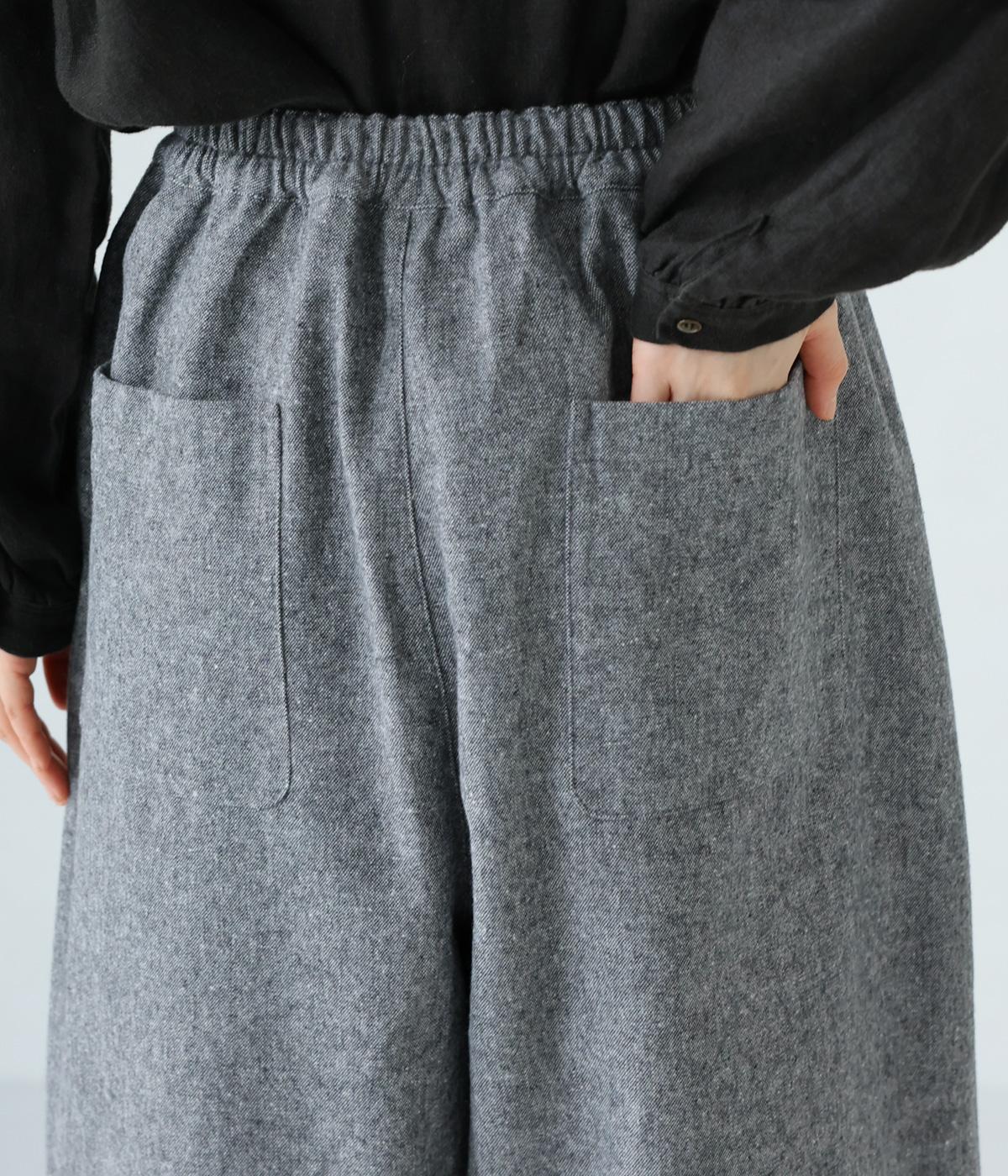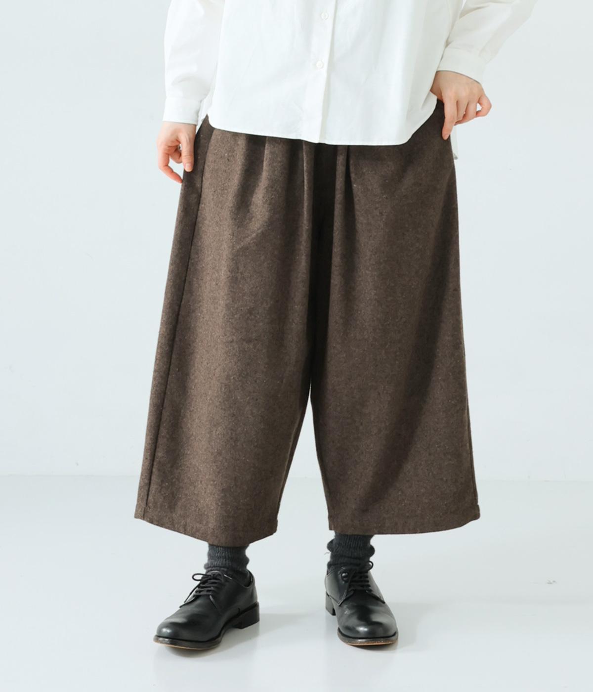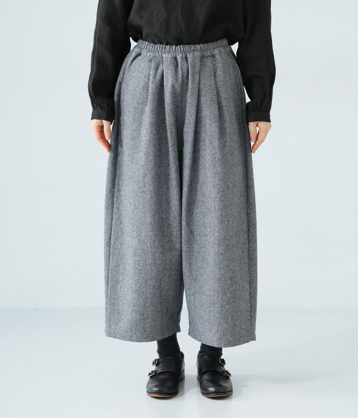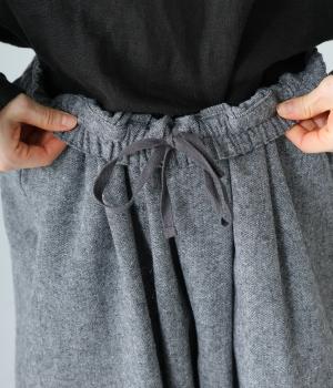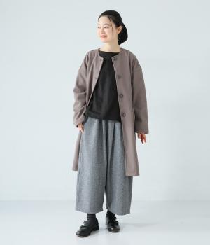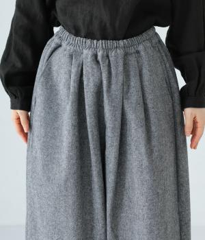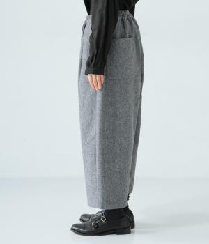 寒い時期に頼れるツイード生地を使用。表裏に起毛感があり、特に裏面のふっくらとしたやわらかな起毛が空気を含みあたたかくはいていただけます。上品さとナチュラルさを持ちあわせたルックスにも注目です。