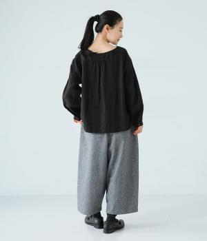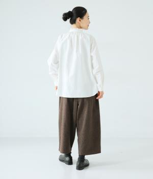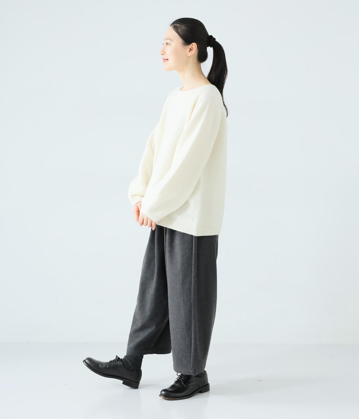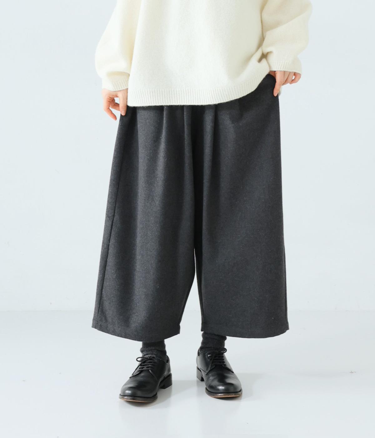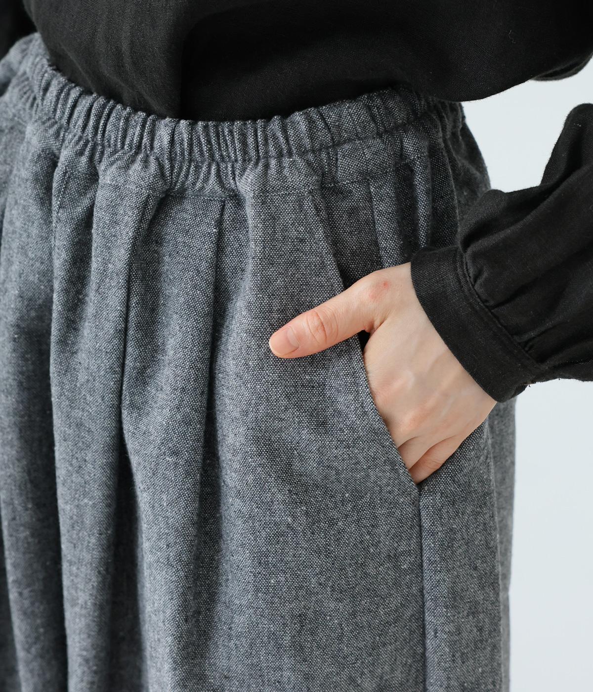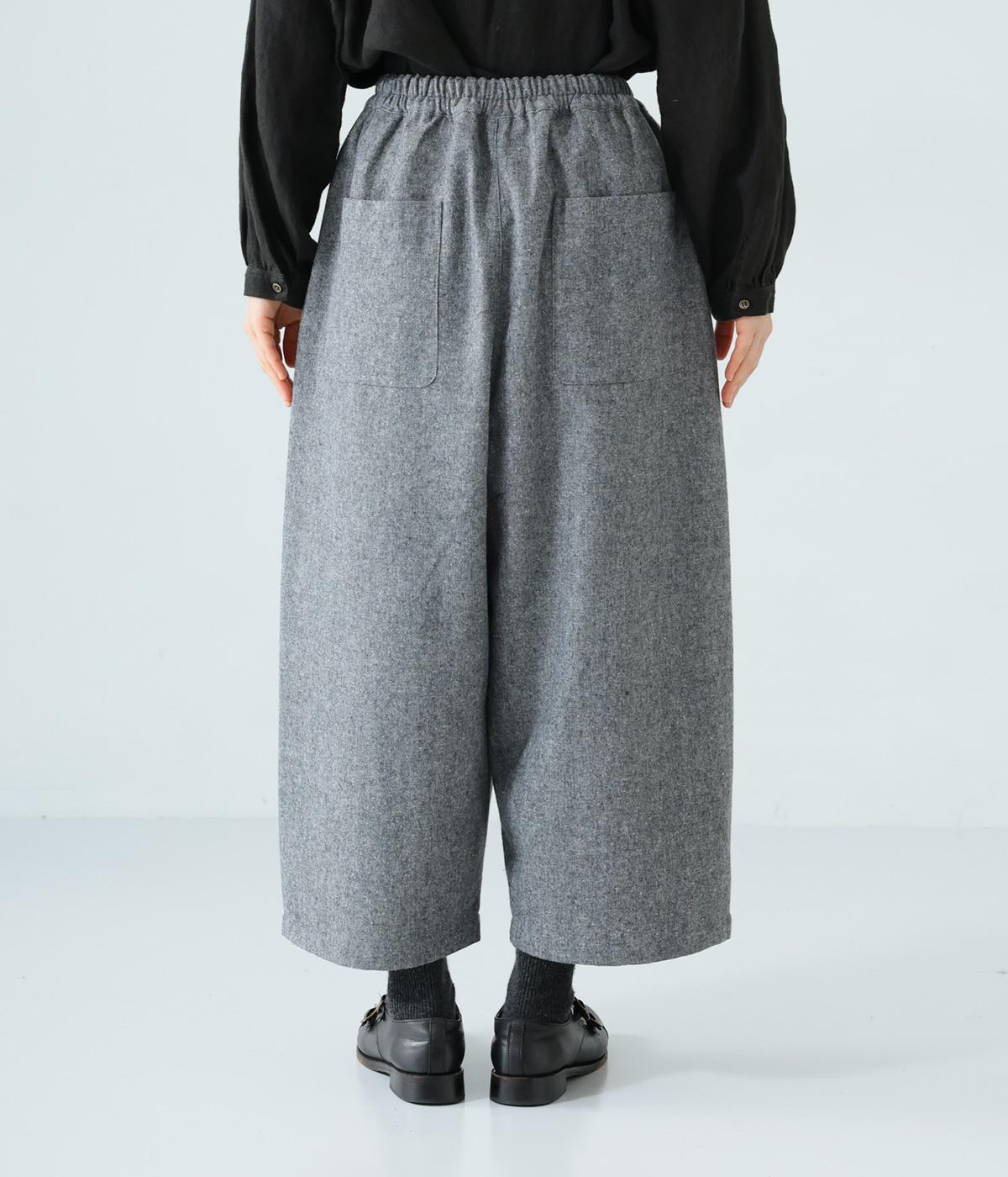 寒い時期に頼れるツイード生地を使用。表裏に起毛感があり、特に裏面のふっくらとしたやわらかな起毛が空気を含みあたたかくはいていただけます。上品さとナチュラルさを持ちあわせたルックスにも注目です。