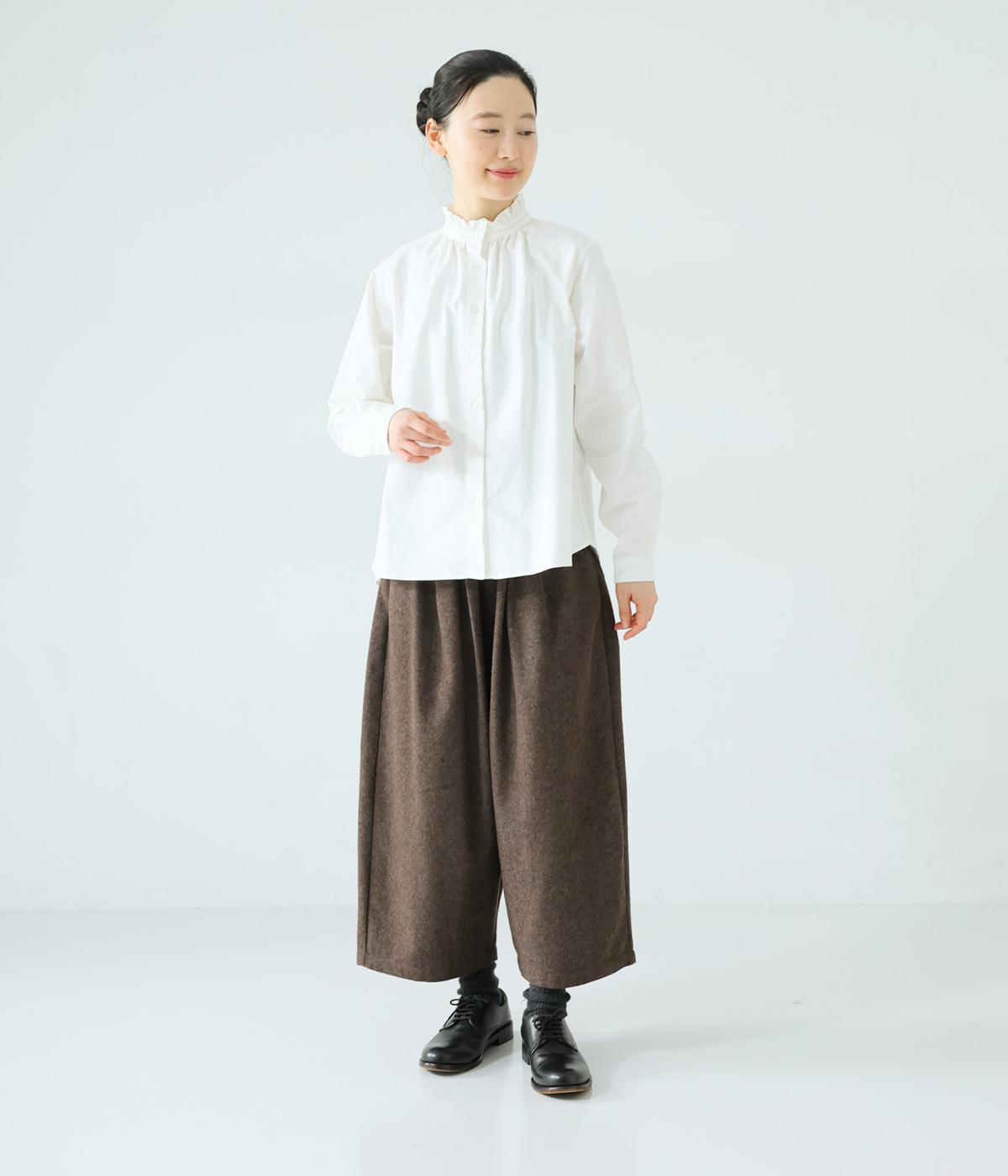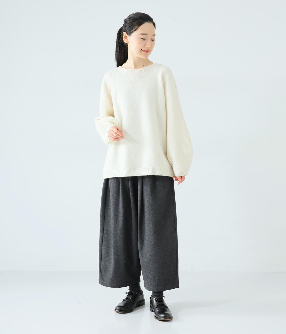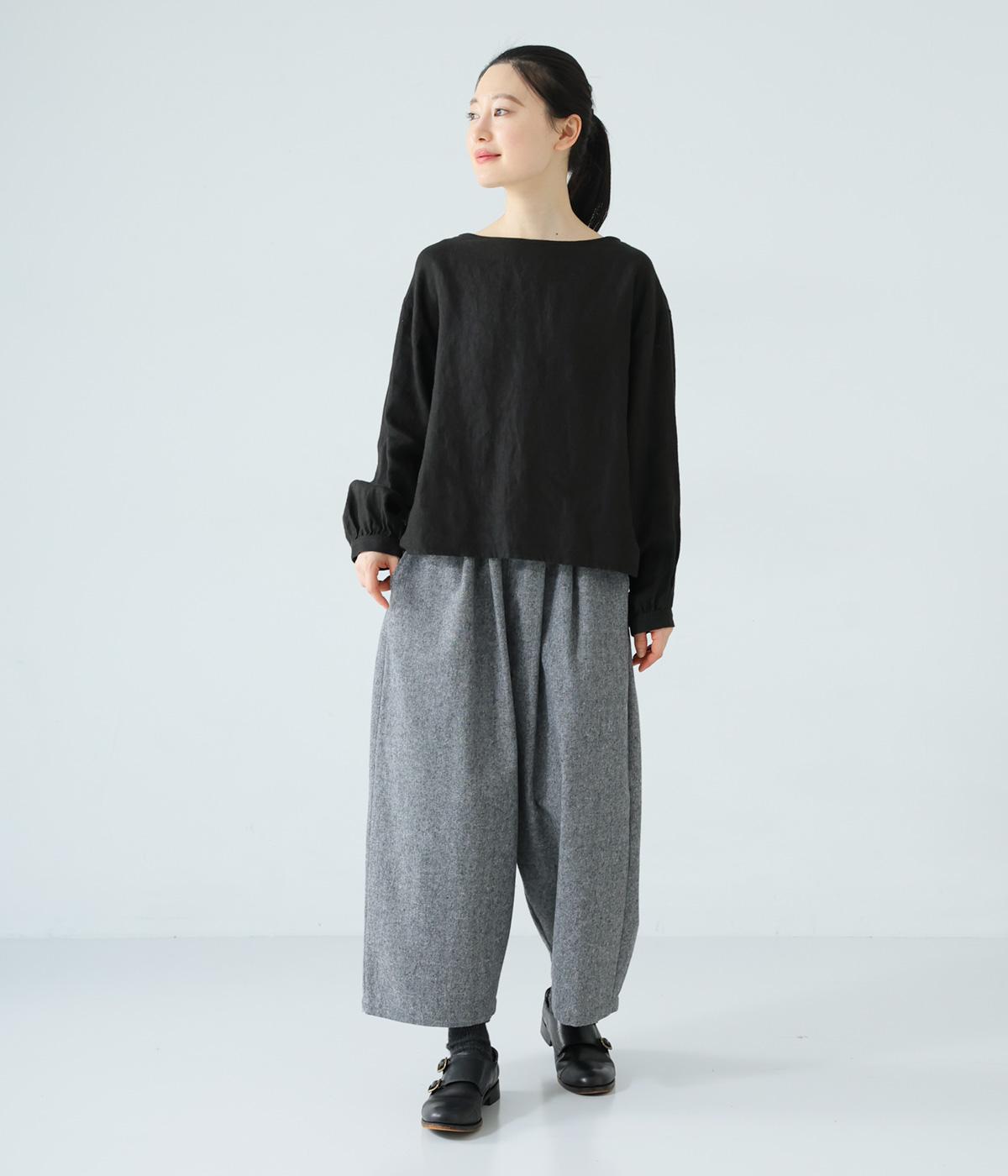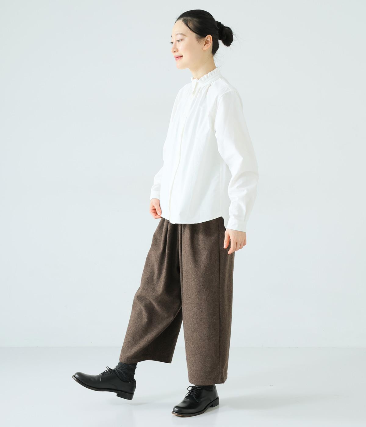 寒い時期に頼れるツイード生地を使用。表裏に起毛感があり、特に裏面のふっくらとしたやわらかな起毛が空気を含みあたたかくはいていただけます。上品さとナチュラルさを持ちあわせたルックスにも注目です。